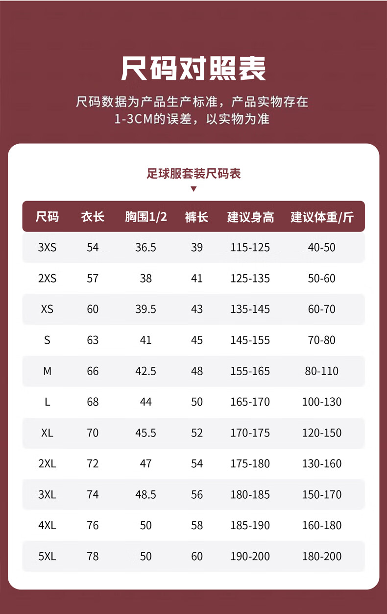 Size (cm) 42 44 46 48 50