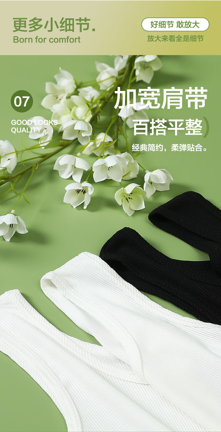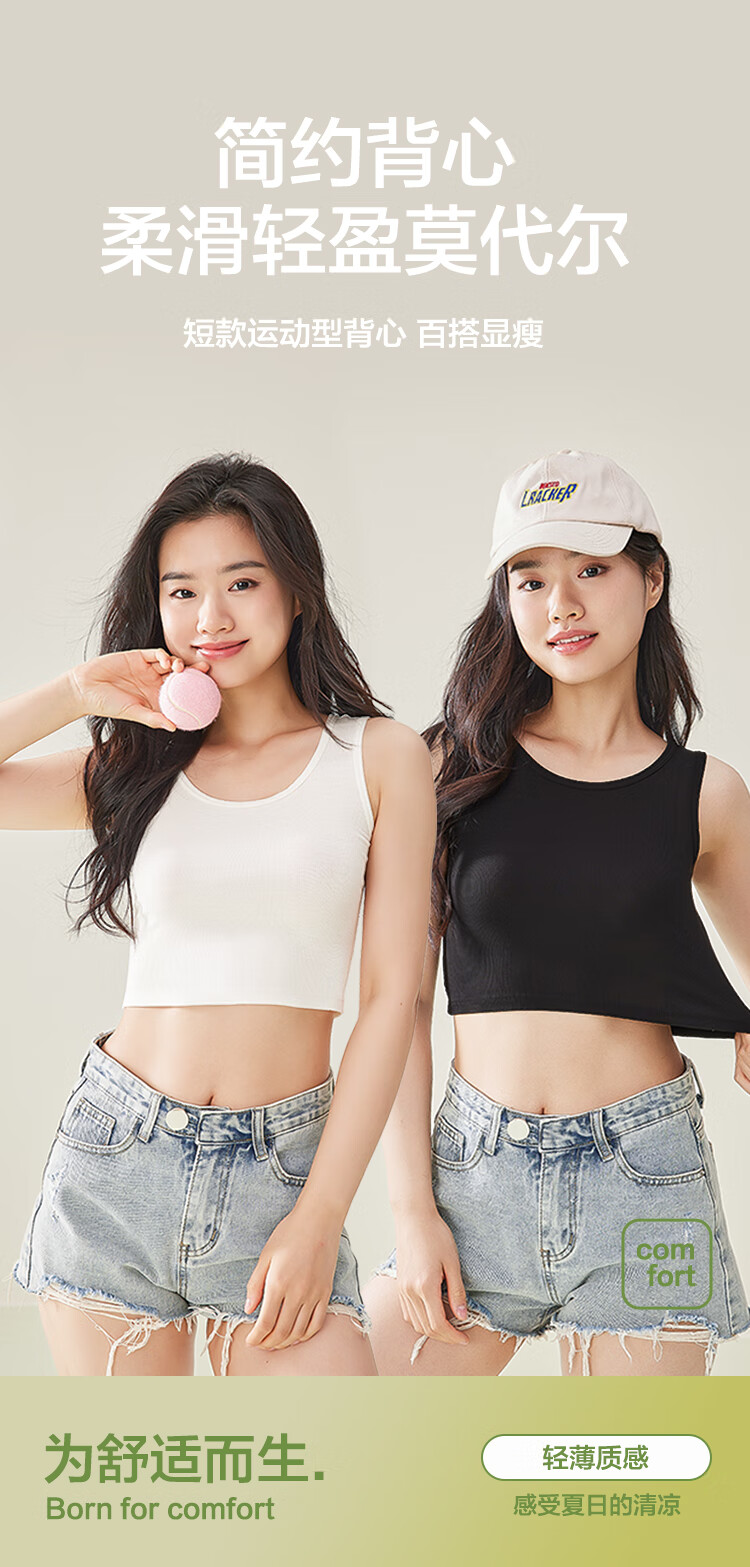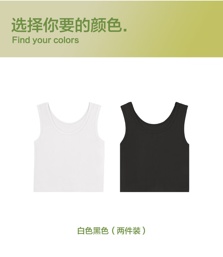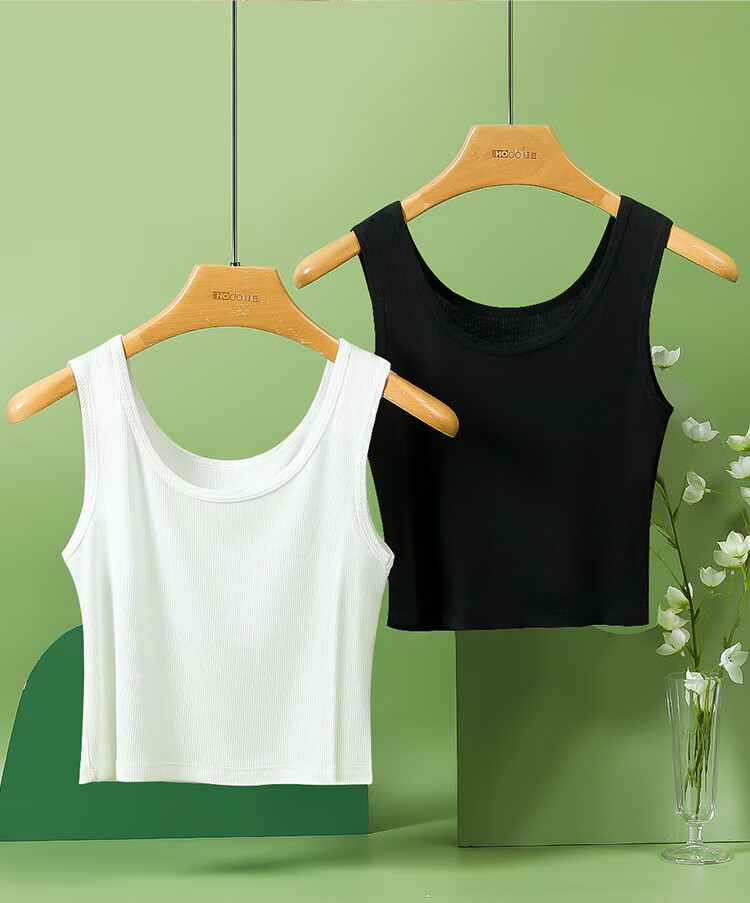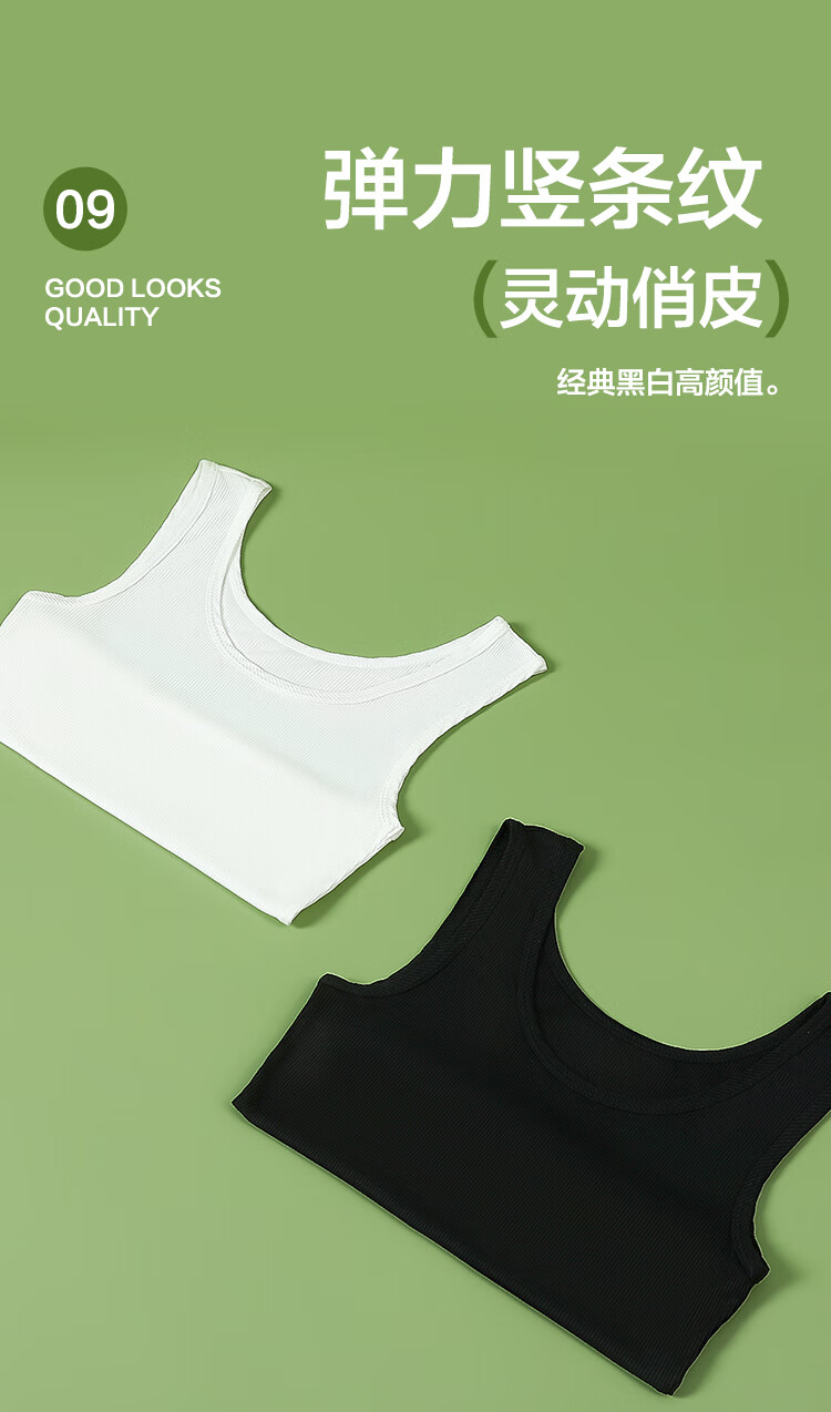 红豆背心女夏露脐美背莫代尔打底衫女竖条纹内搭2件装E0-38白+黑165