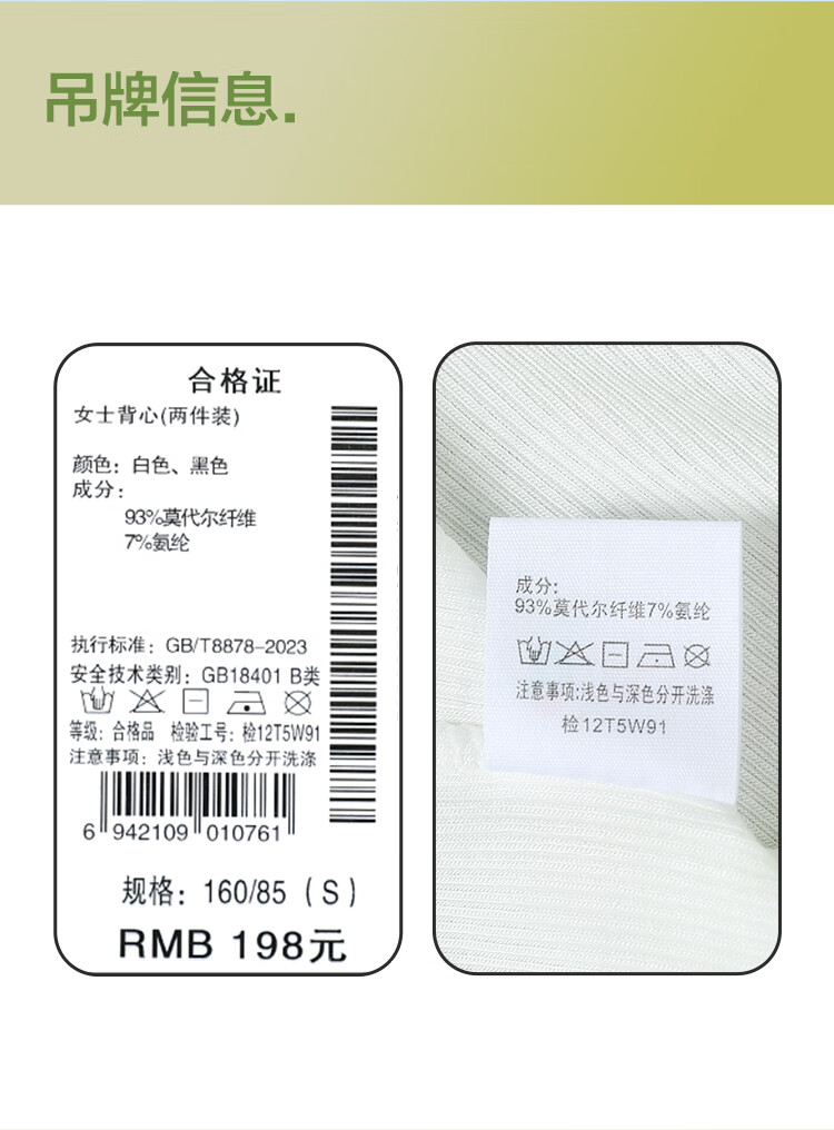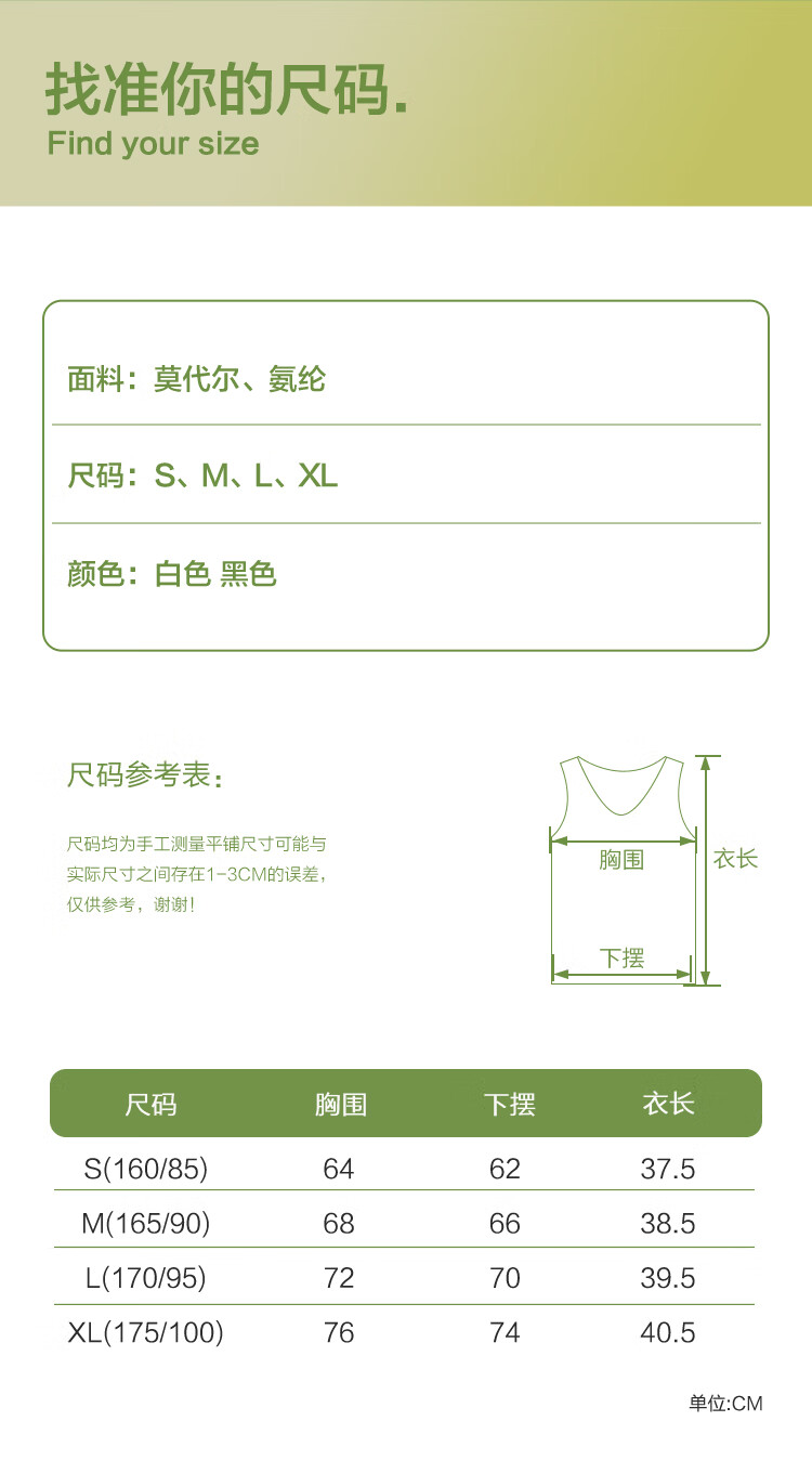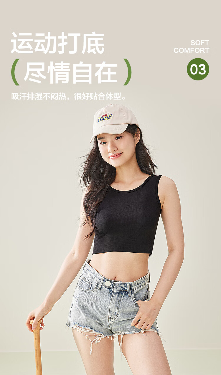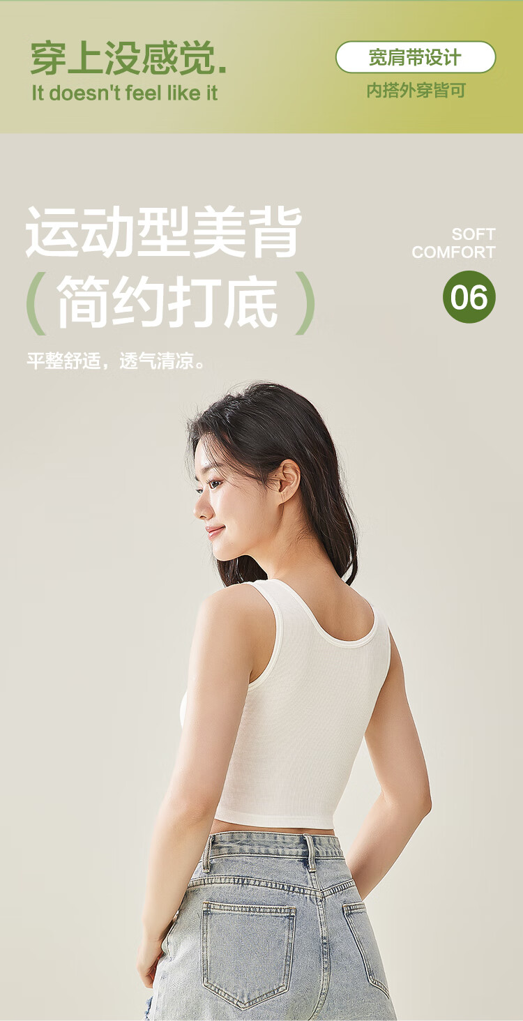 红豆背心女夏露脐美背莫代尔打底衫女竖条纹内搭2件装E0-38白+黑165