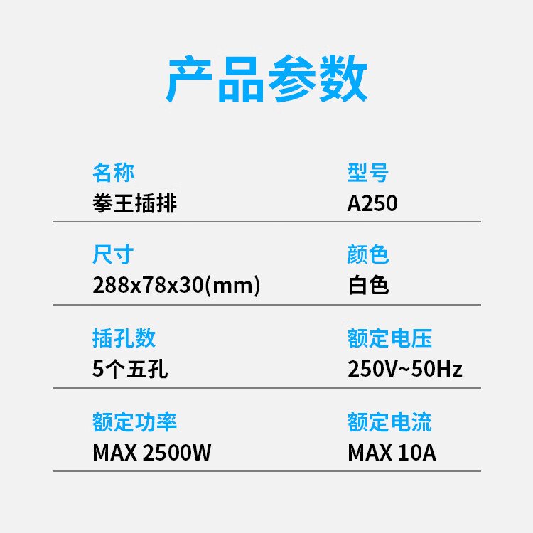拳王(QUANWANG)新国标插座/插线板/插排/QW-A250 5位分控无线插排(需自配电源线和插头)一件包邮