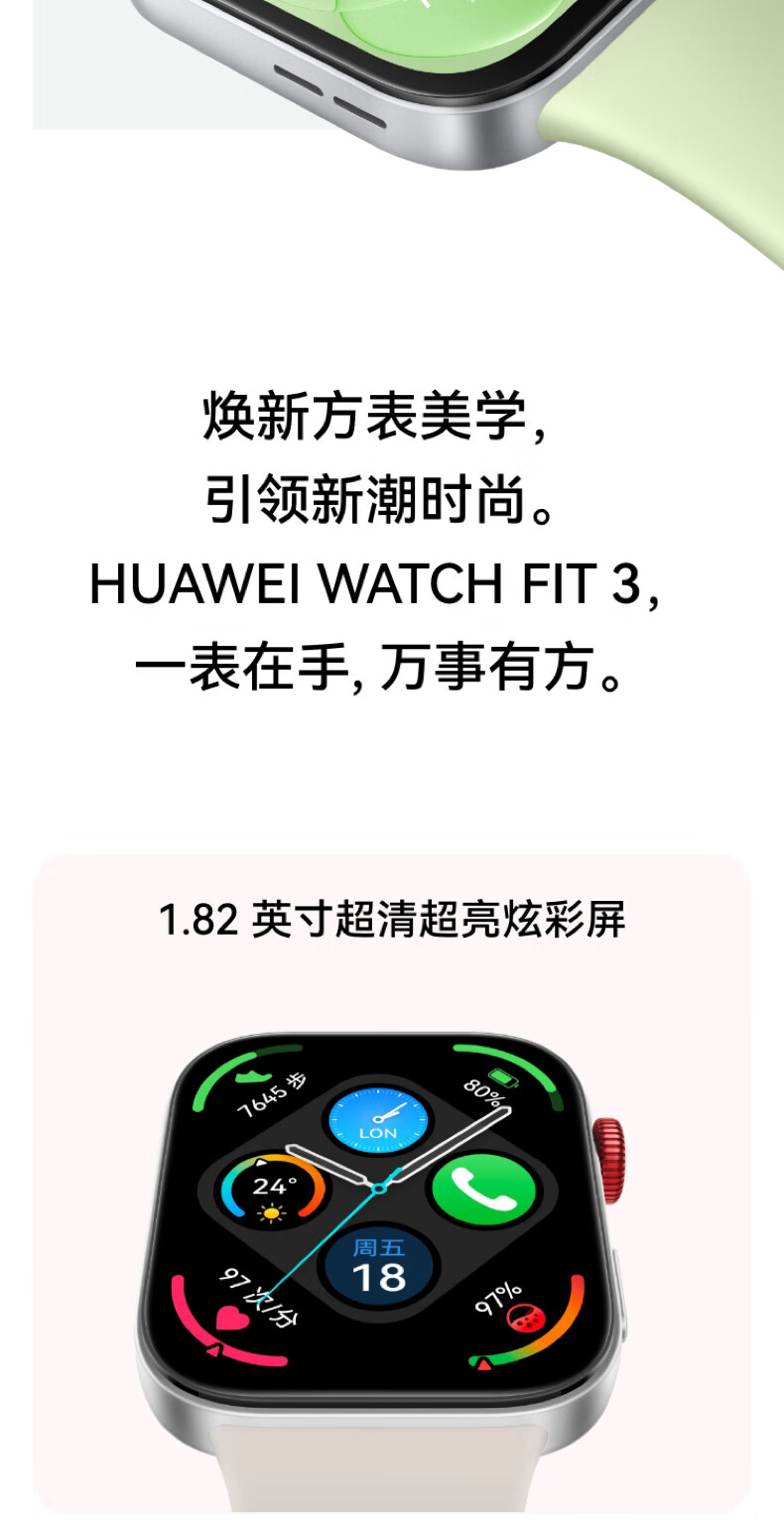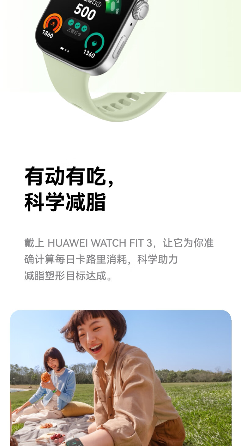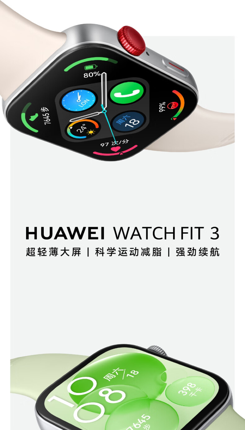 华为WATCH FIT 3 华为智能手表 幻夜黑 轻薄大屏运动减脂 男女情侣手表