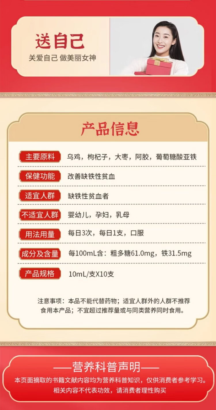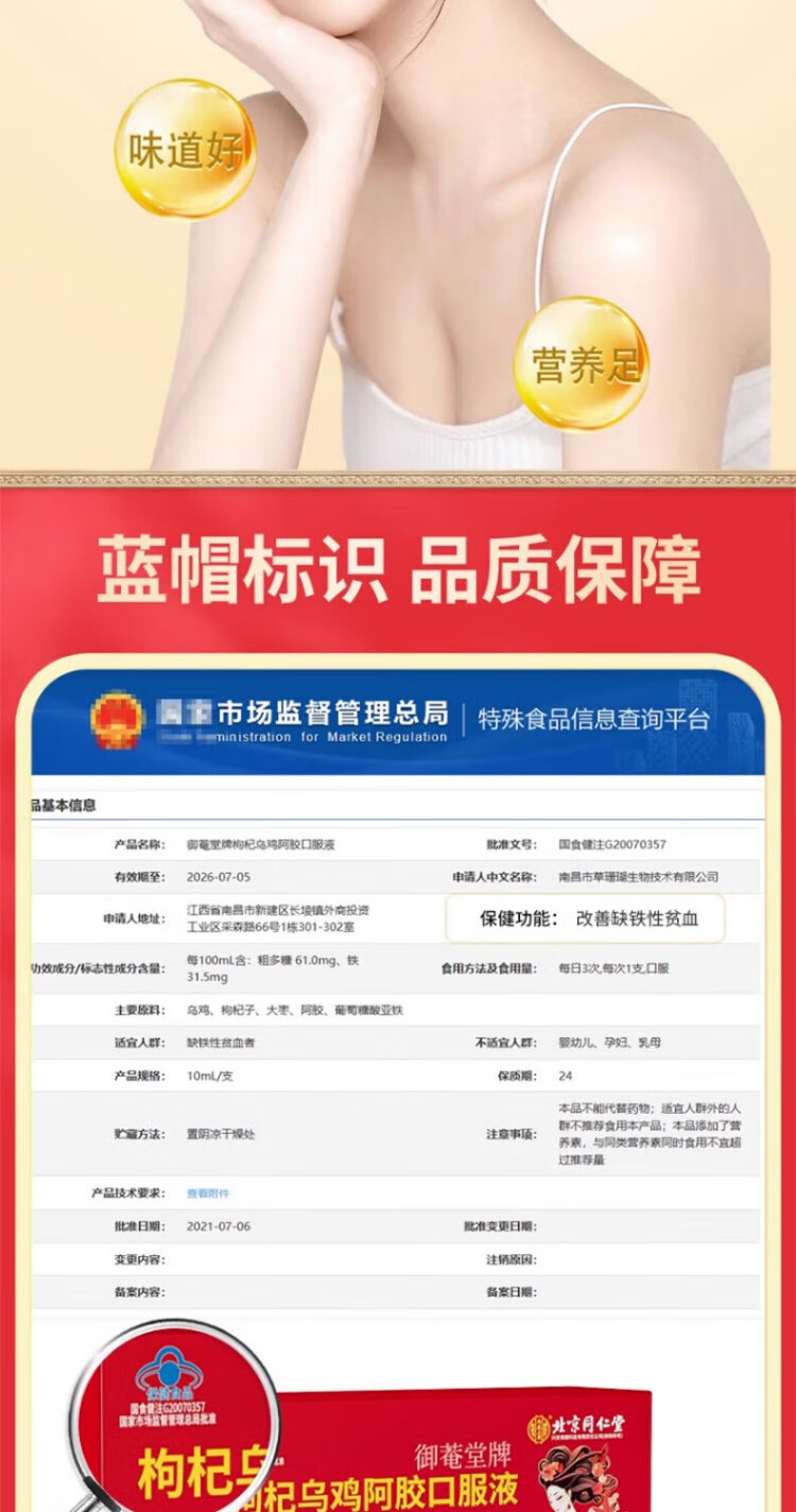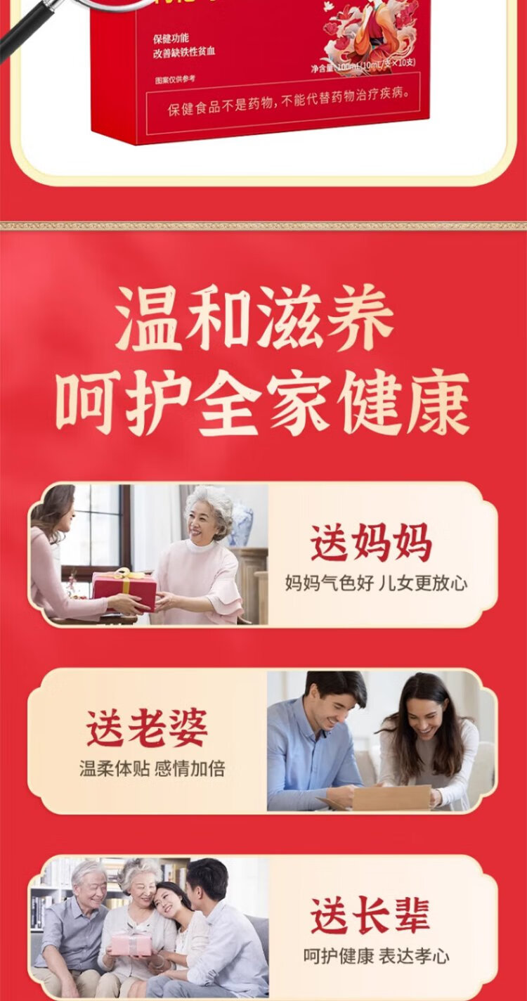 同仁堂枸杞乌鸡阿胶口服液10支装改善女性缺铁贫血失眠调理滋补送礼