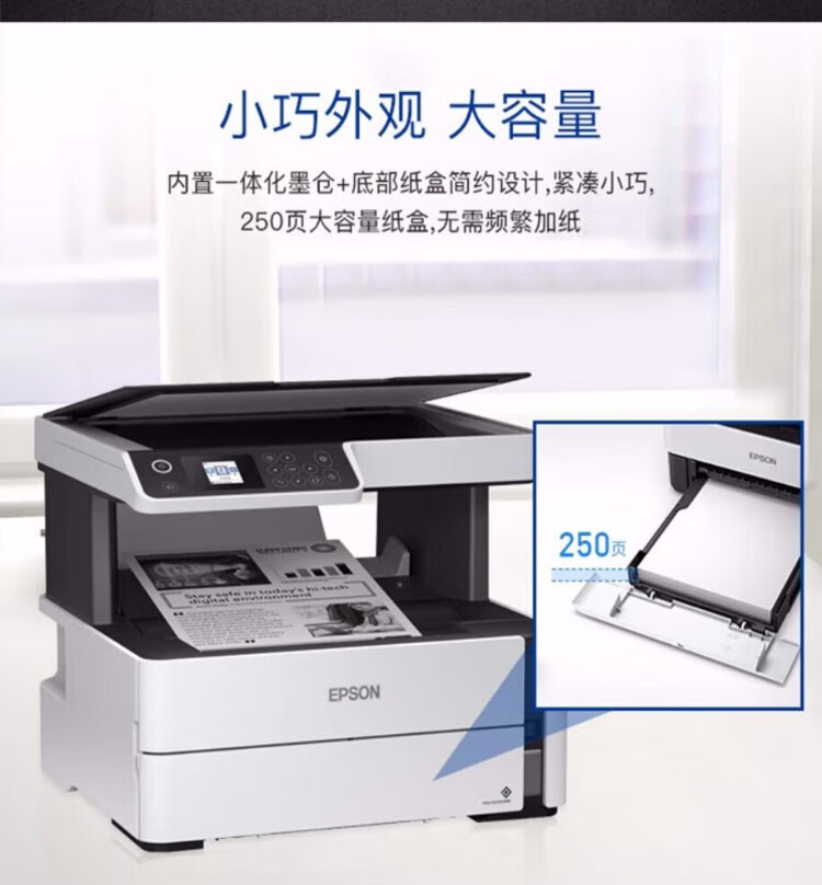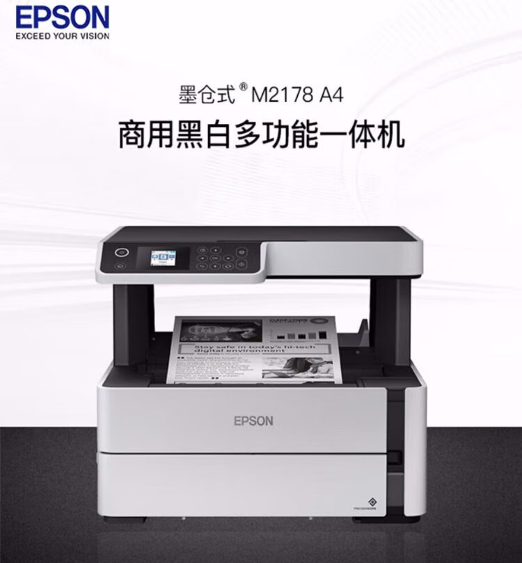 爱普生M2178 A4黑白大容量墨仓式商用喷墨打印机原装连供多功能一体机自动双面打印