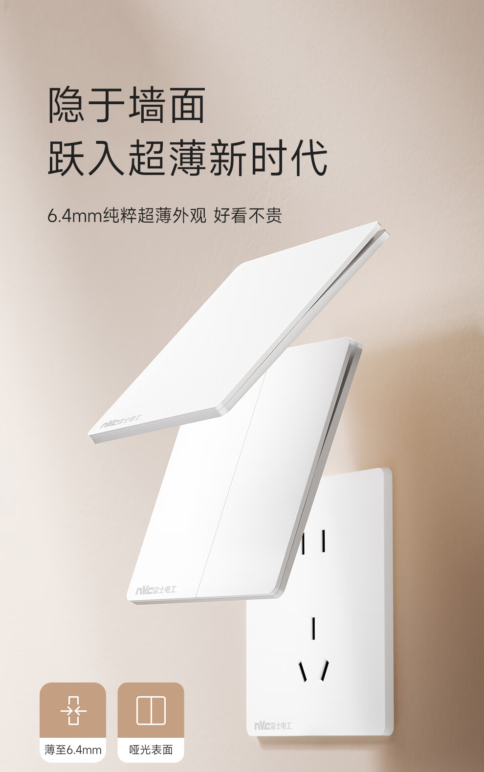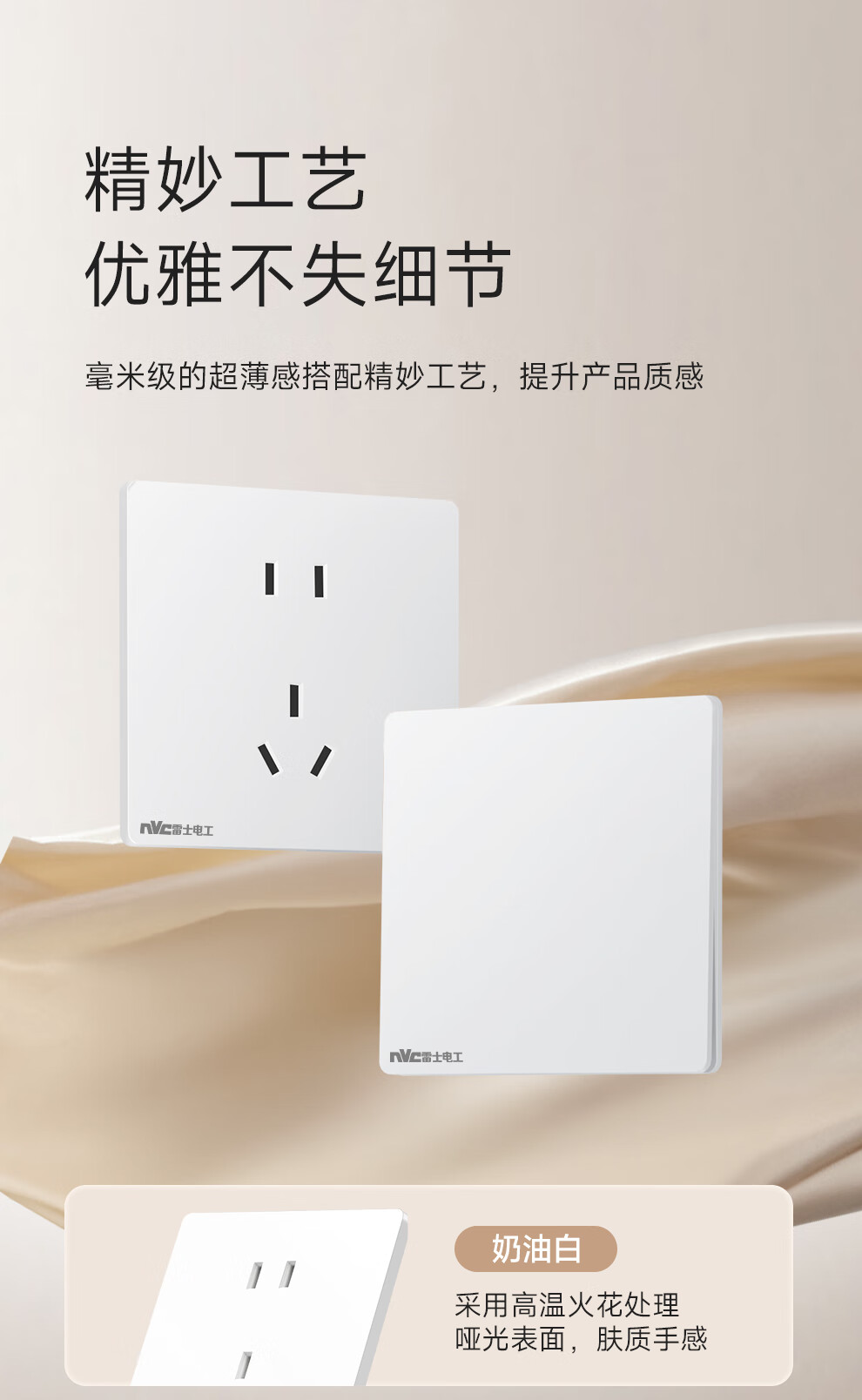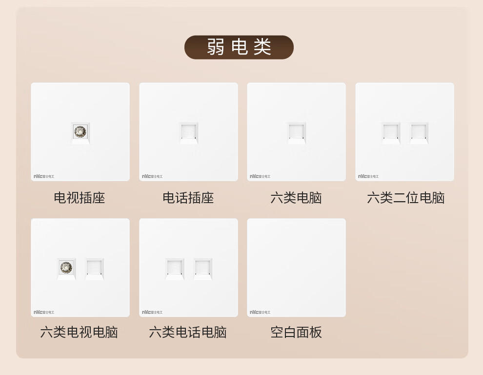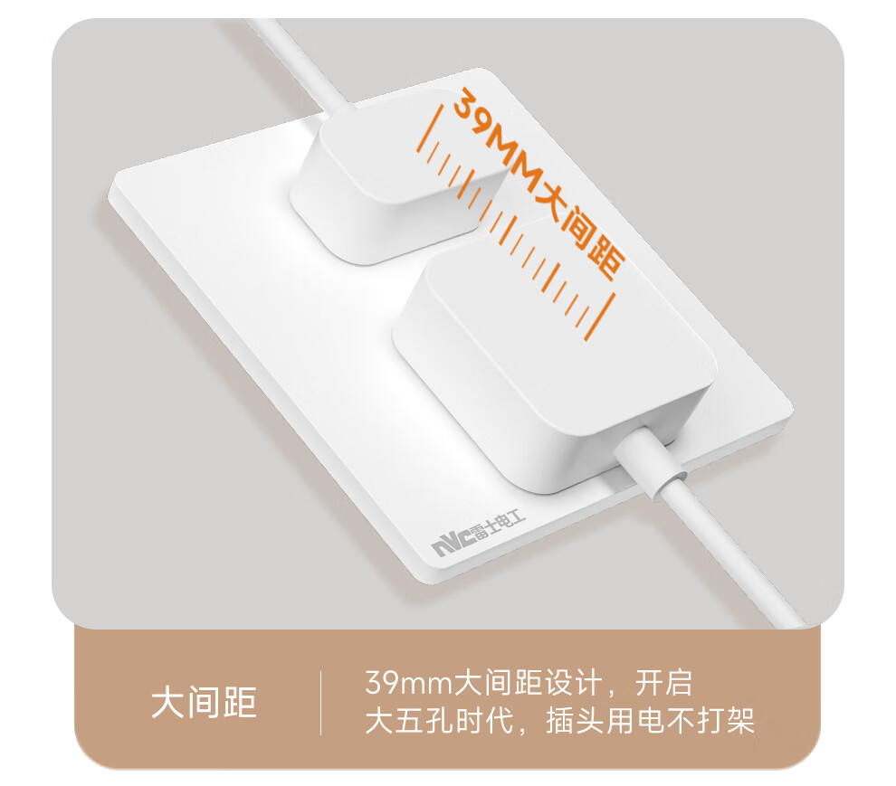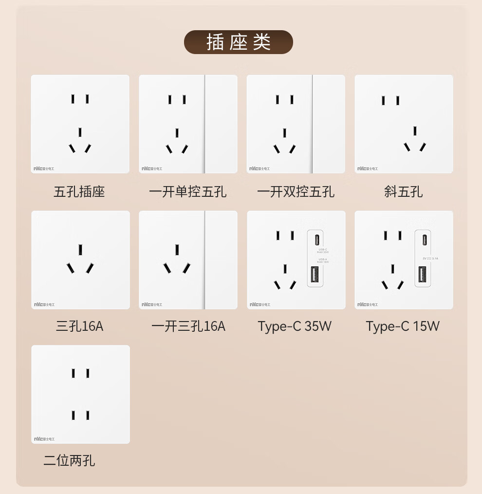 NVC雷士电工开关插座 10A斜五孔插座 86型超薄插座面板 N29白色