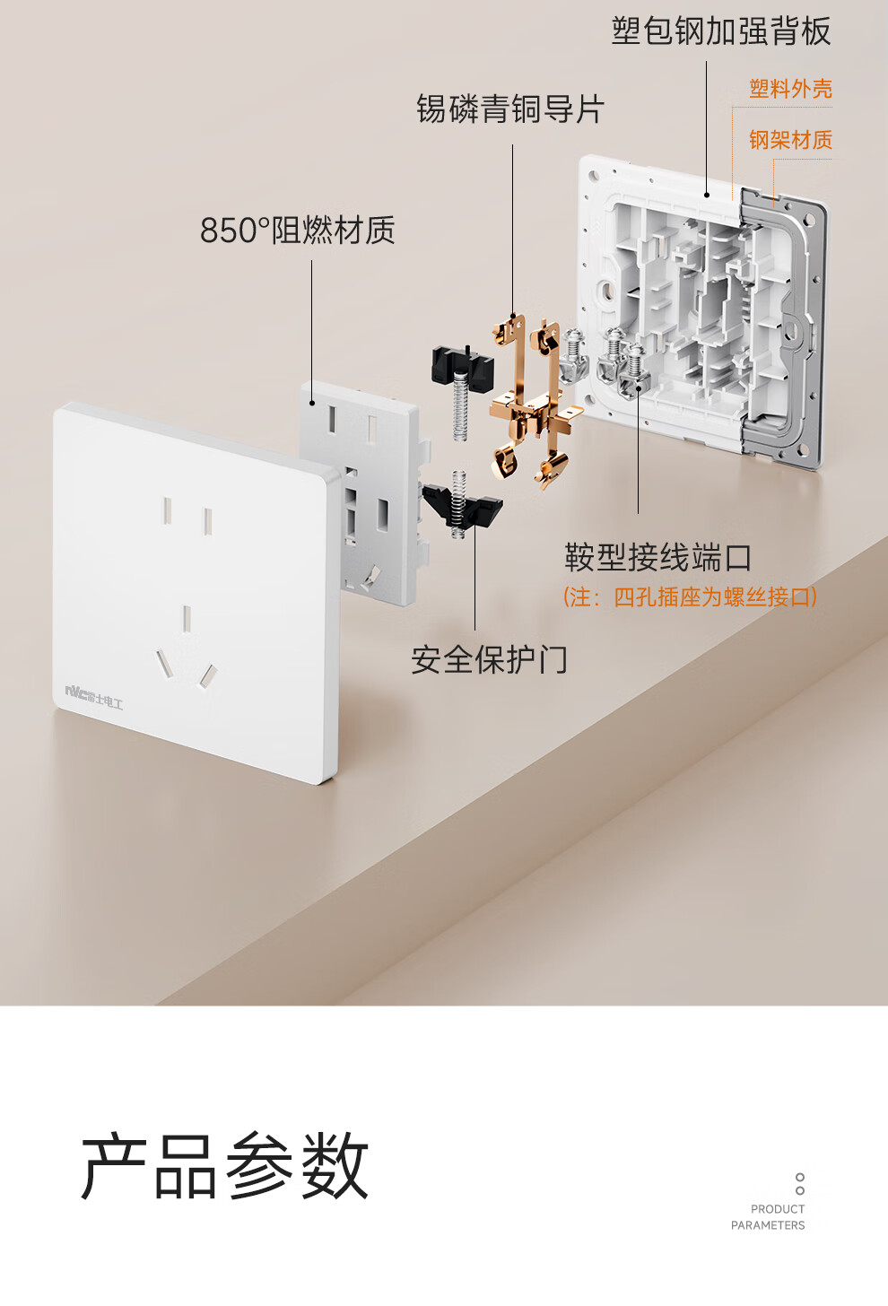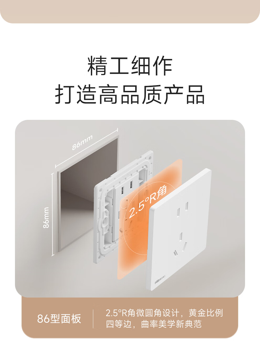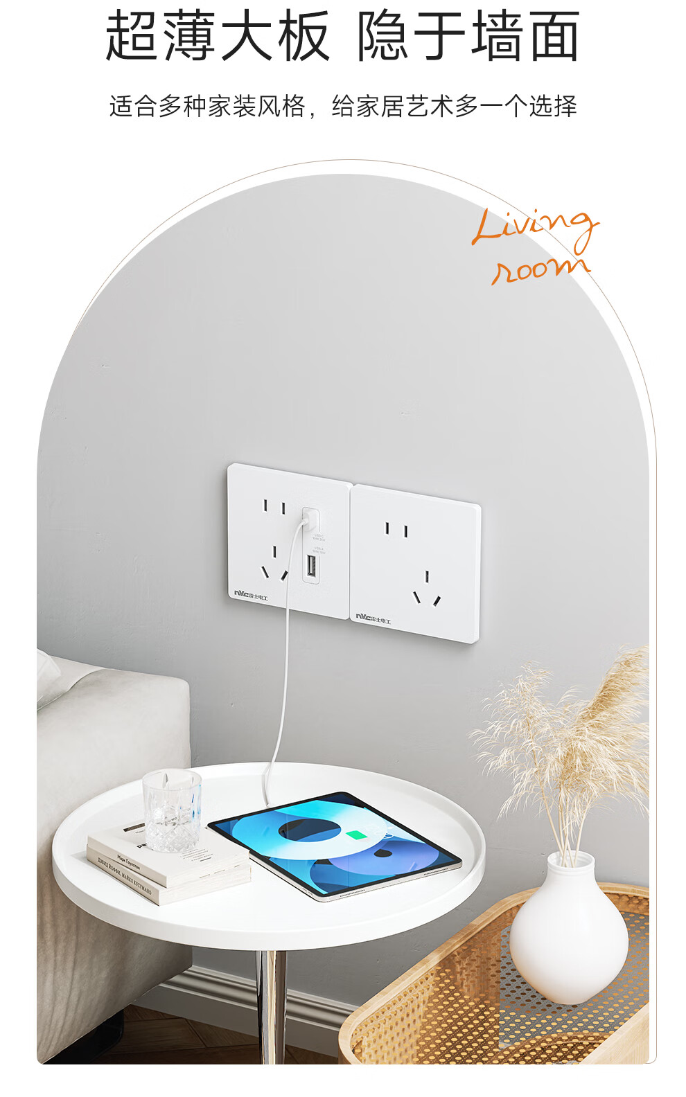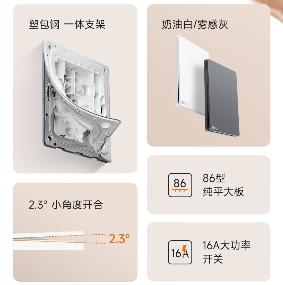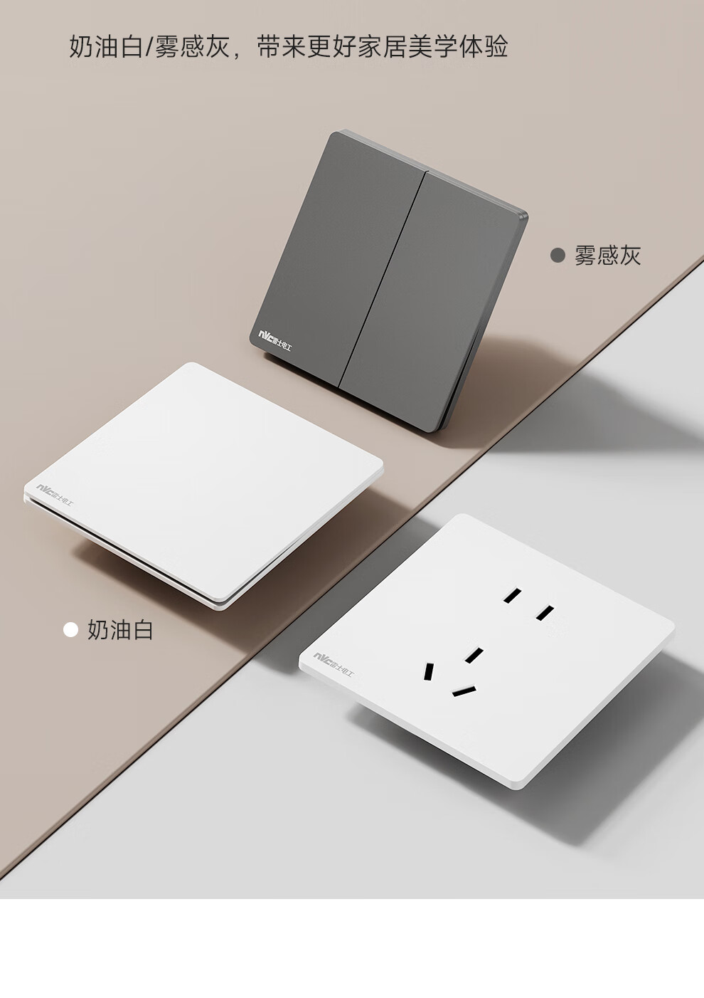 NVC雷士电工开关插座 10A斜五孔插座 86型超薄插座面板 N29白色