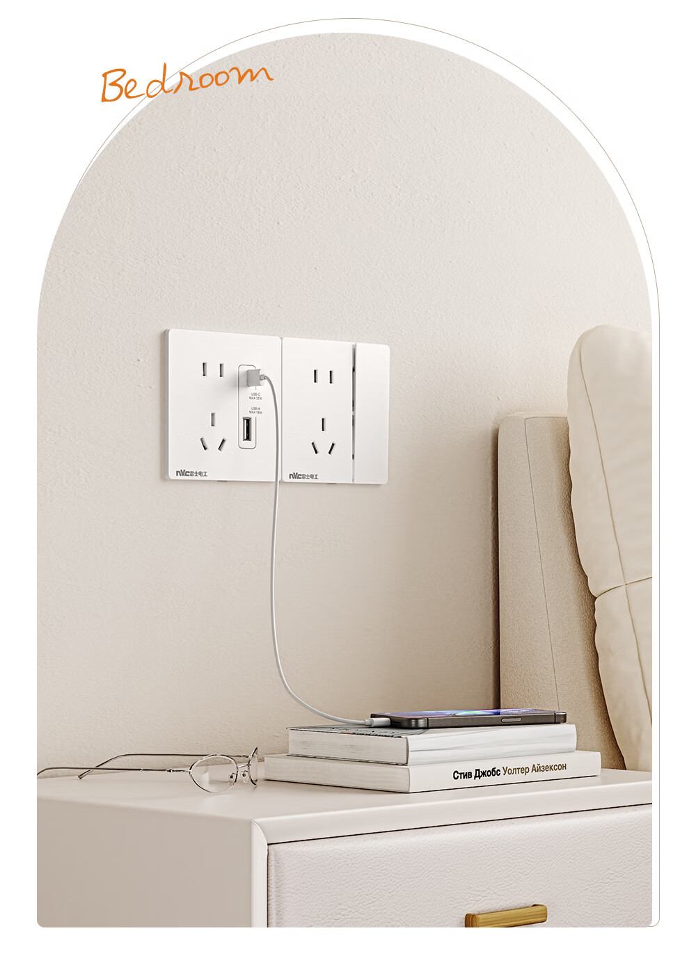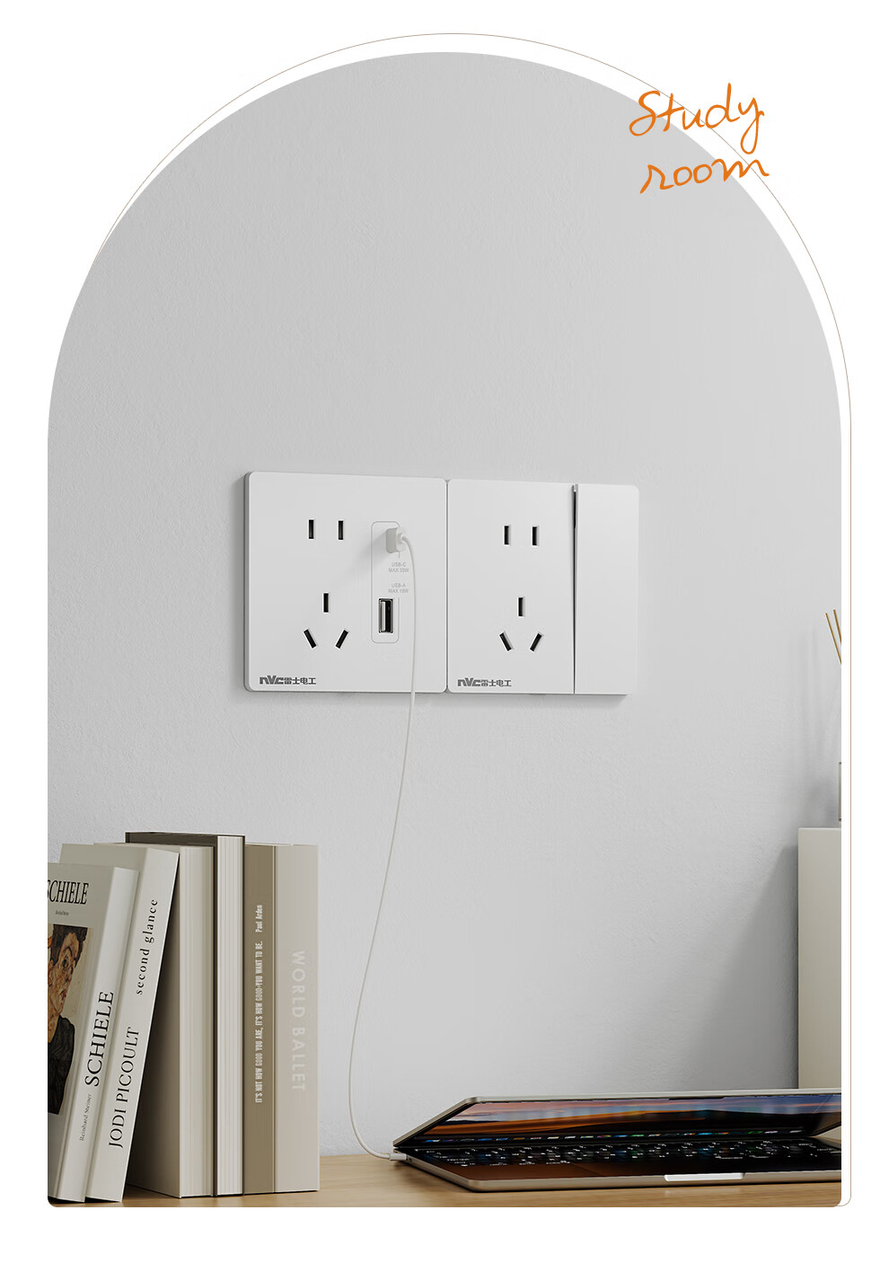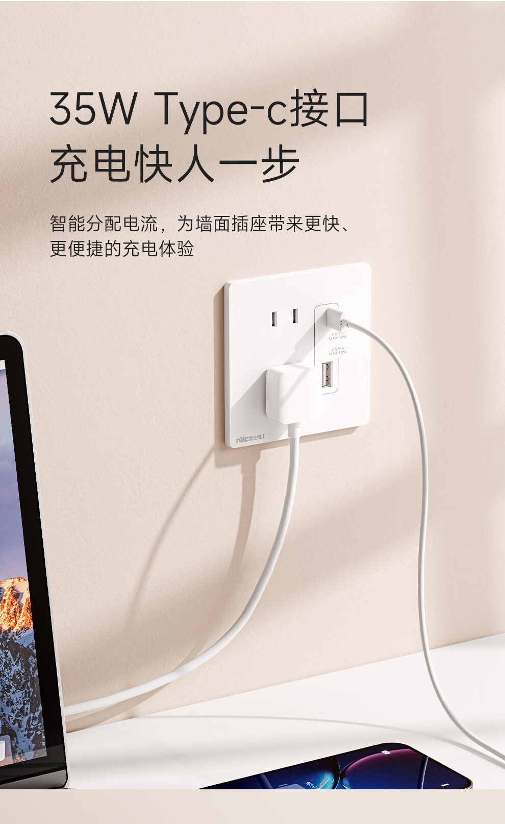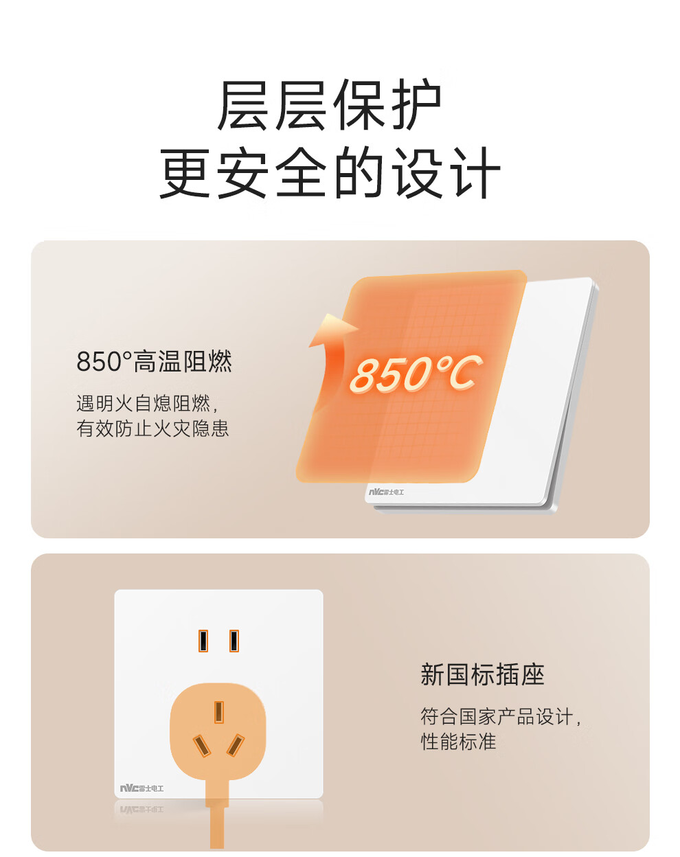 NVC雷士电工开关插座 10A斜五孔插座 86型超薄插座面板 N29白色