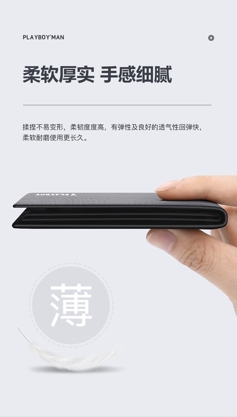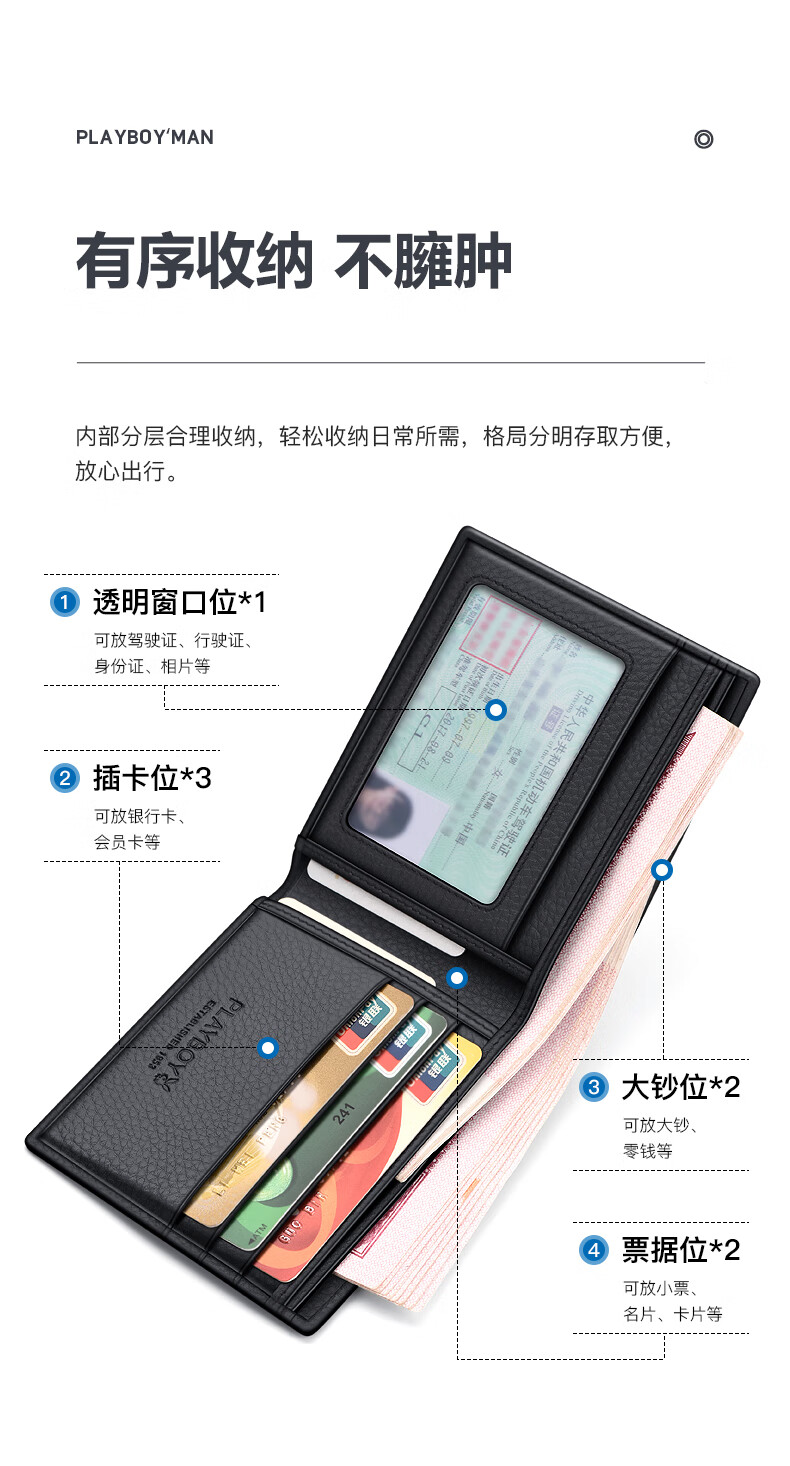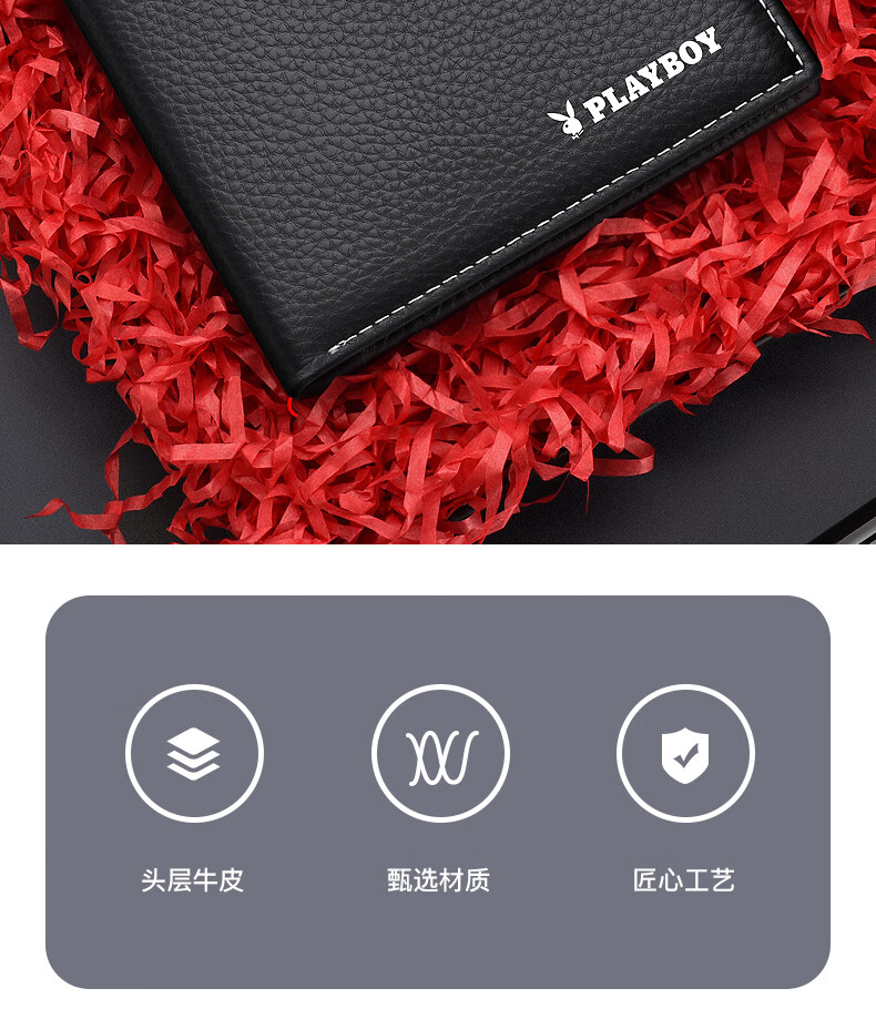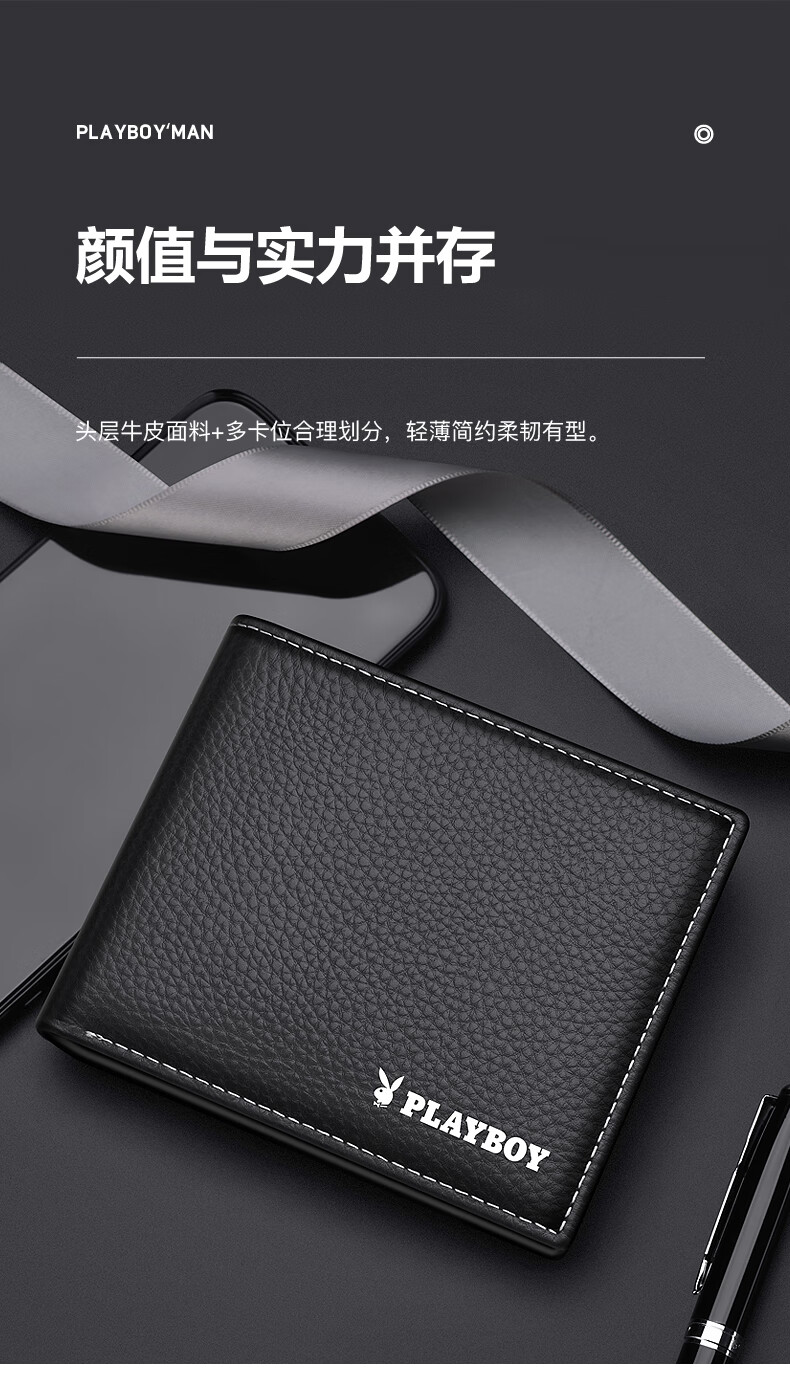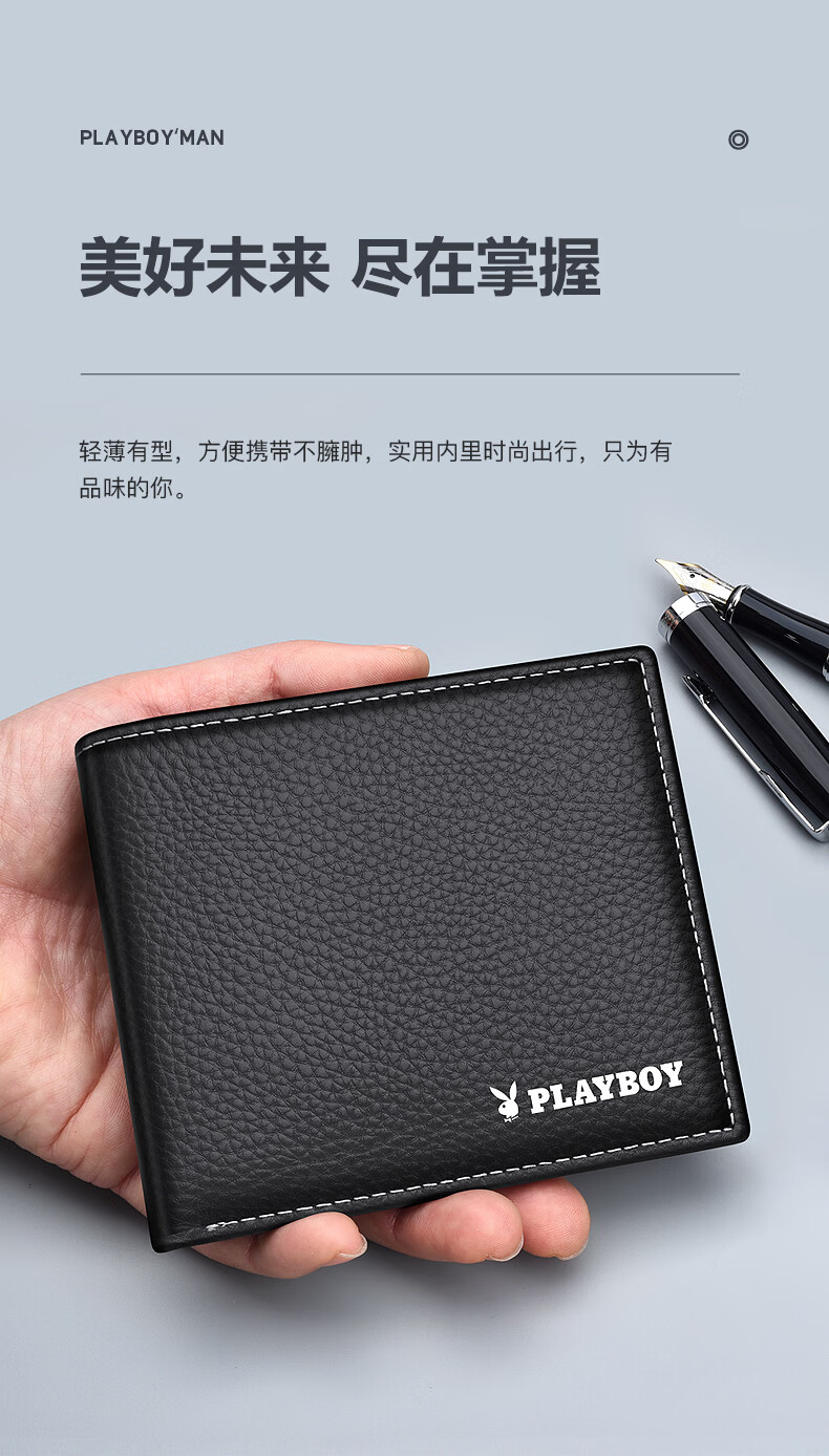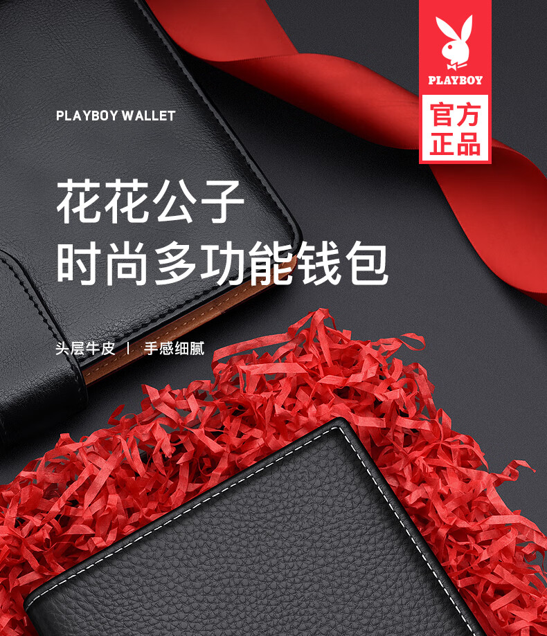 花花公子真皮钱包男士头层牛皮钱夹证件卡票据皮夹中年生日礼物送老公父亲