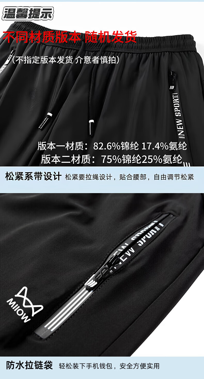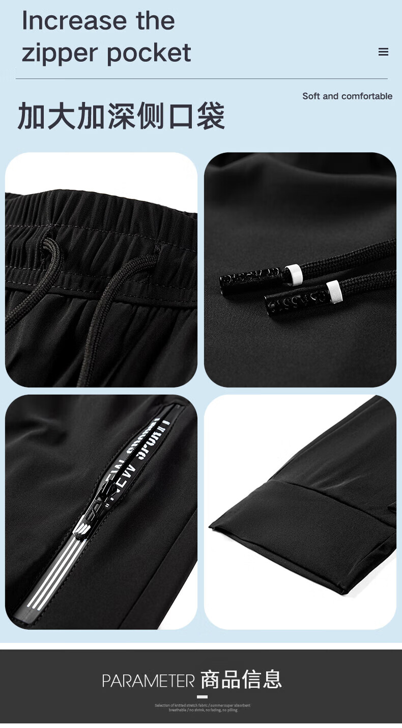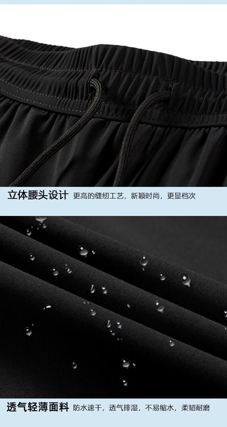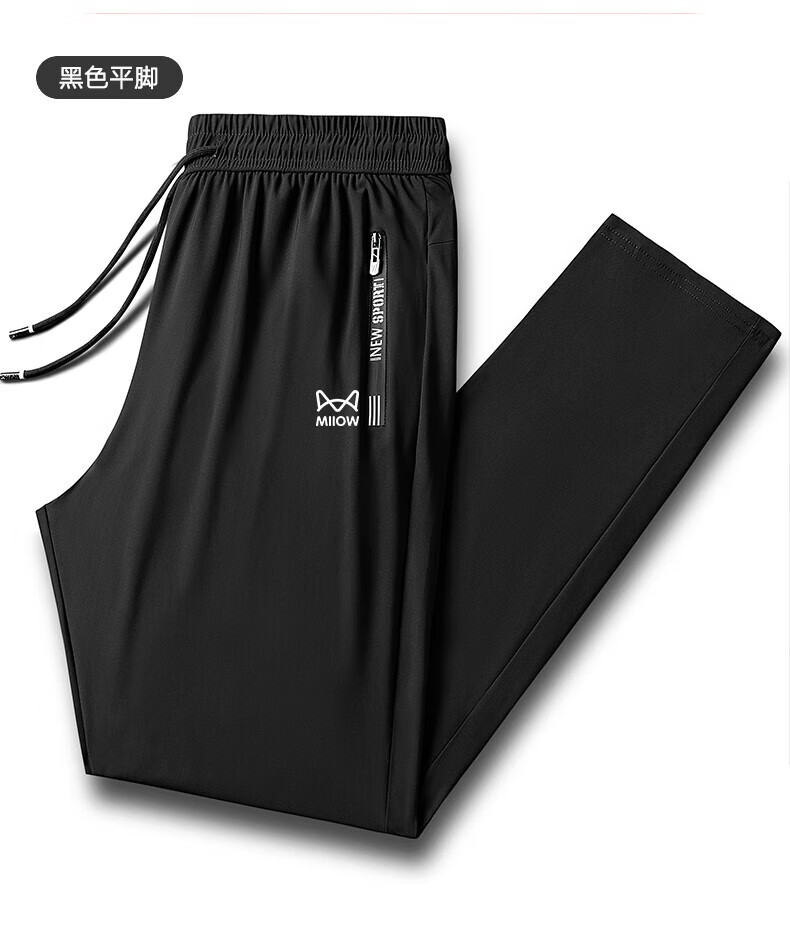 Catman Freizeithose für Herren, Sommer, lockere Eisseide, schnell trocknende Sporthose mit Beinen, leicht und atmungsaktiv, Schwarz, gerade, 2XL