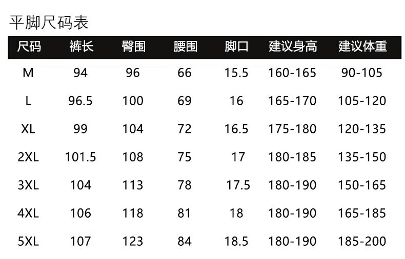 Outseam (cm) 99 cm 101.5 cm 104 cm 106.5 cm 109 cm