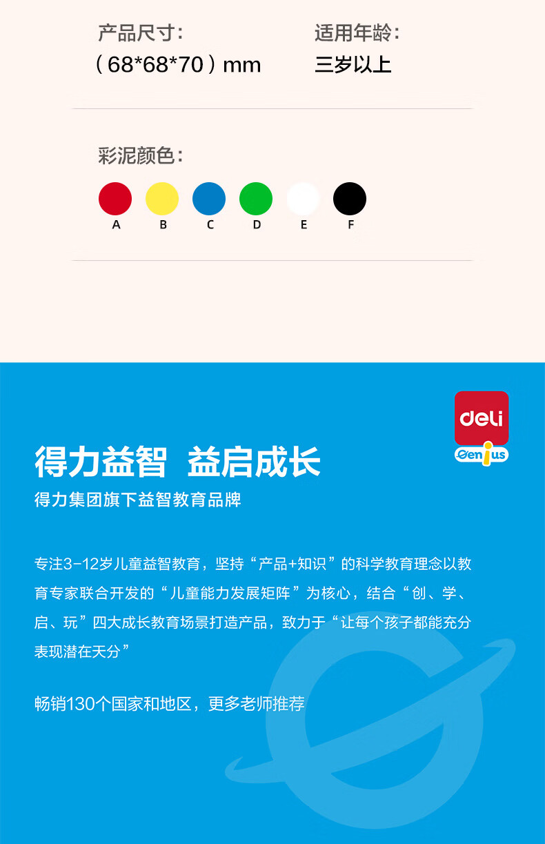 得力(deli)100g食品级彩泥 橡皮泥玩具美术手工DIY材料安心黏土非超轻粘土儿童文具生日开学礼物 红色