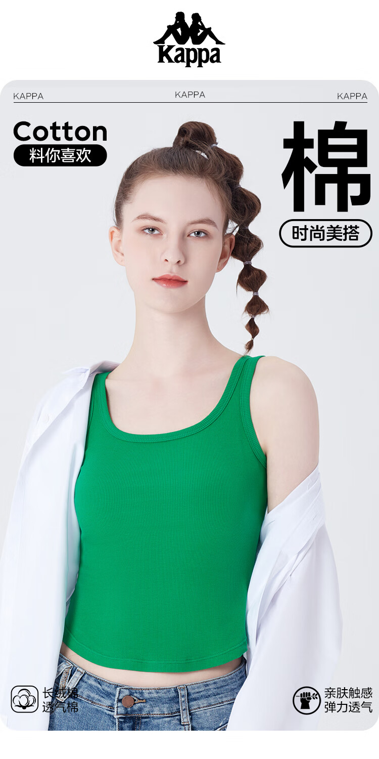 Kappa (Kappa) Kappa vest women's short inner wear high elastic slim ribbed cotton breathable bottoming sling fitness underwear for women