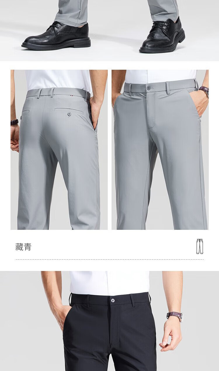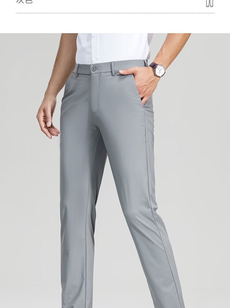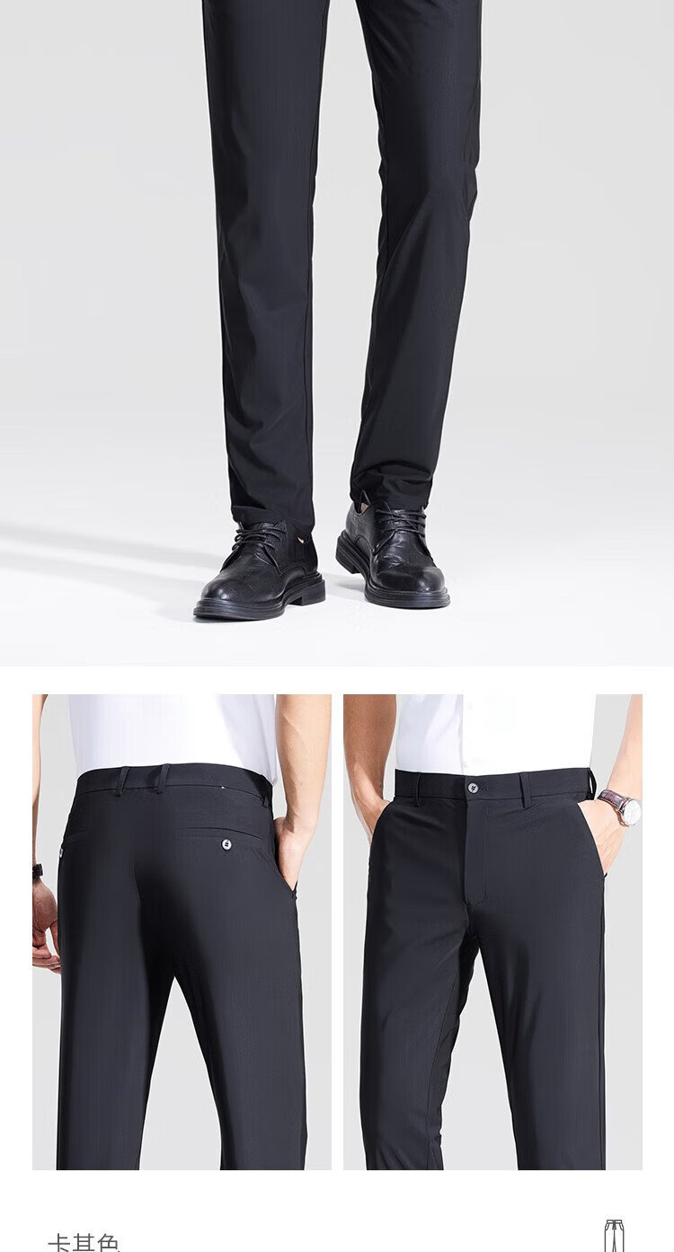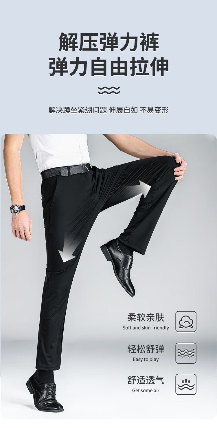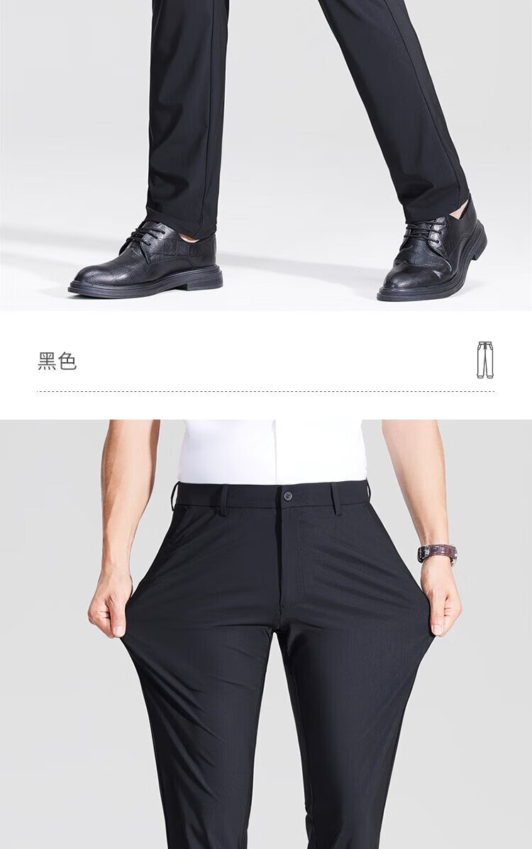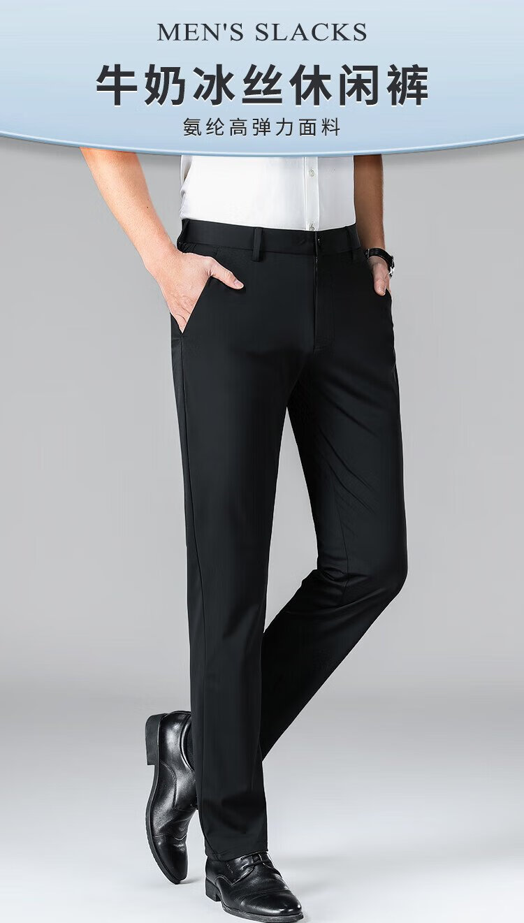 ROMON pantalones casuales de seda de hielo de alta elasticidad, pantalones largos rectos ajustados de negocios para hombres, pantalones finos de verano para hombres, negro 40