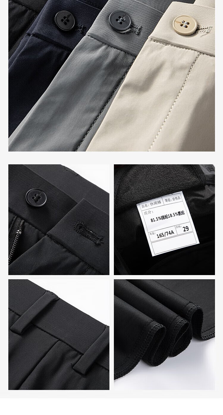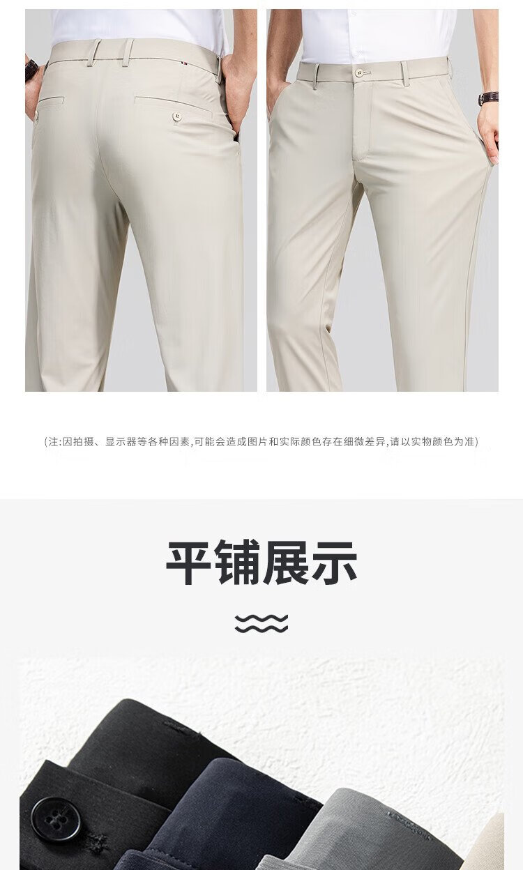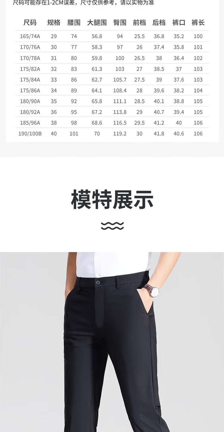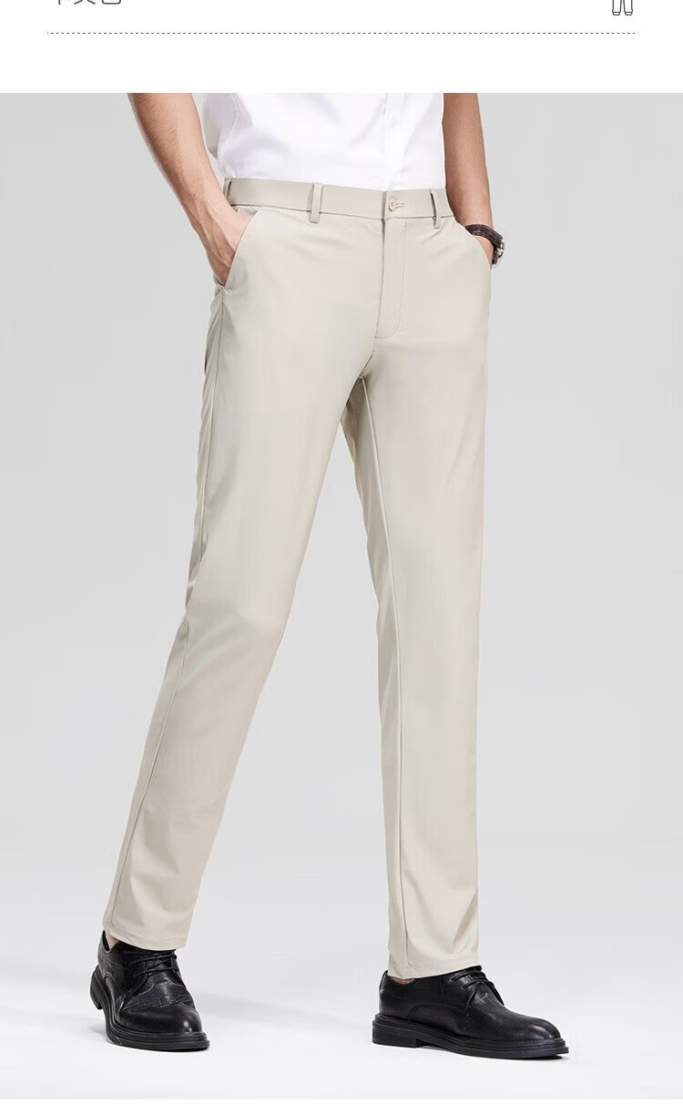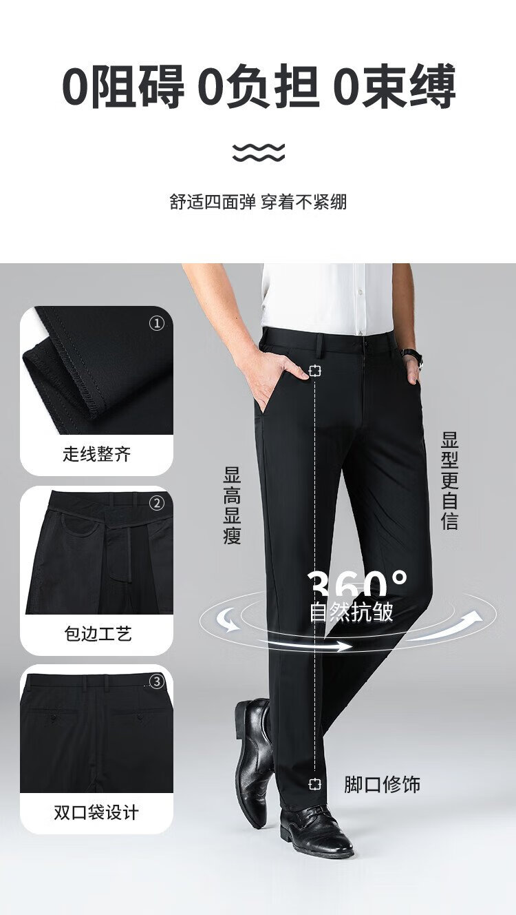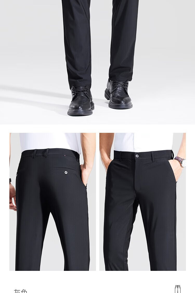 ROMON pantalones casuales de seda de hielo de alta elasticidad, pantalones largos rectos ajustados de negocios para hombres, pantalones finos de verano para hombres, negro 40