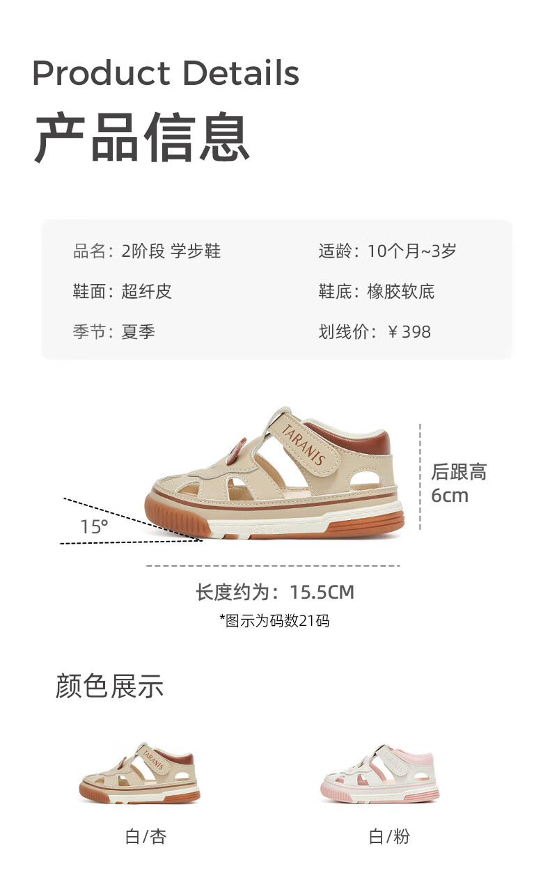 Tyrannis Barking Shoes Summer Men's and Women's Baby Sandals Baby Baotou Toddler Shoes White/Pink Size 21