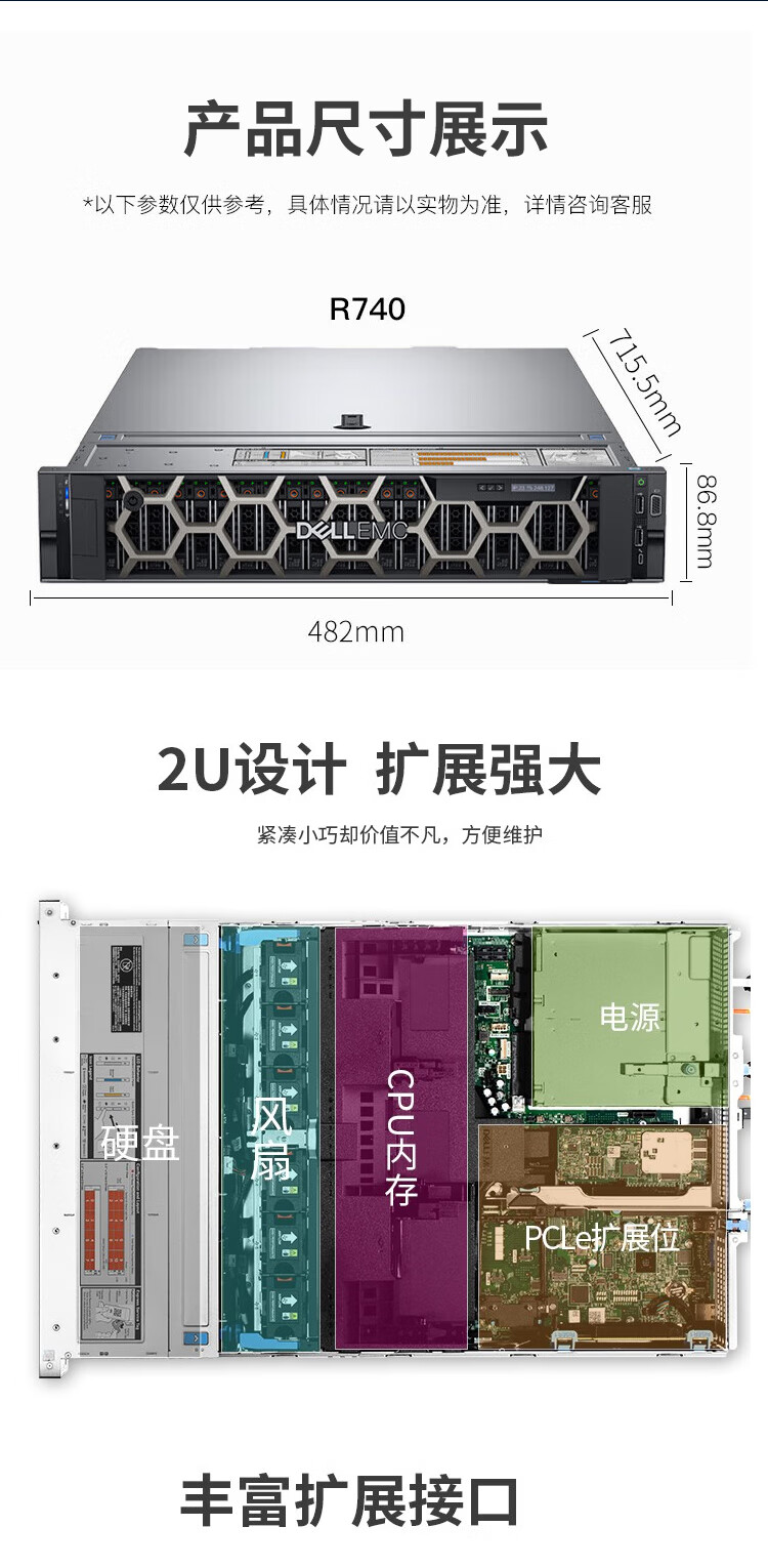 戴尔(DELL)服务器主机R740丨至强银牌 4210R 10C/20T丨16G内存丨1.2TB硬盘