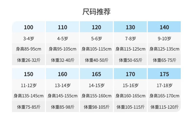 China (cm) 160-165/84-86 165-170 / 88-90 167-172 / 92-96 168-173 / 98-102 170-176 / 106-110