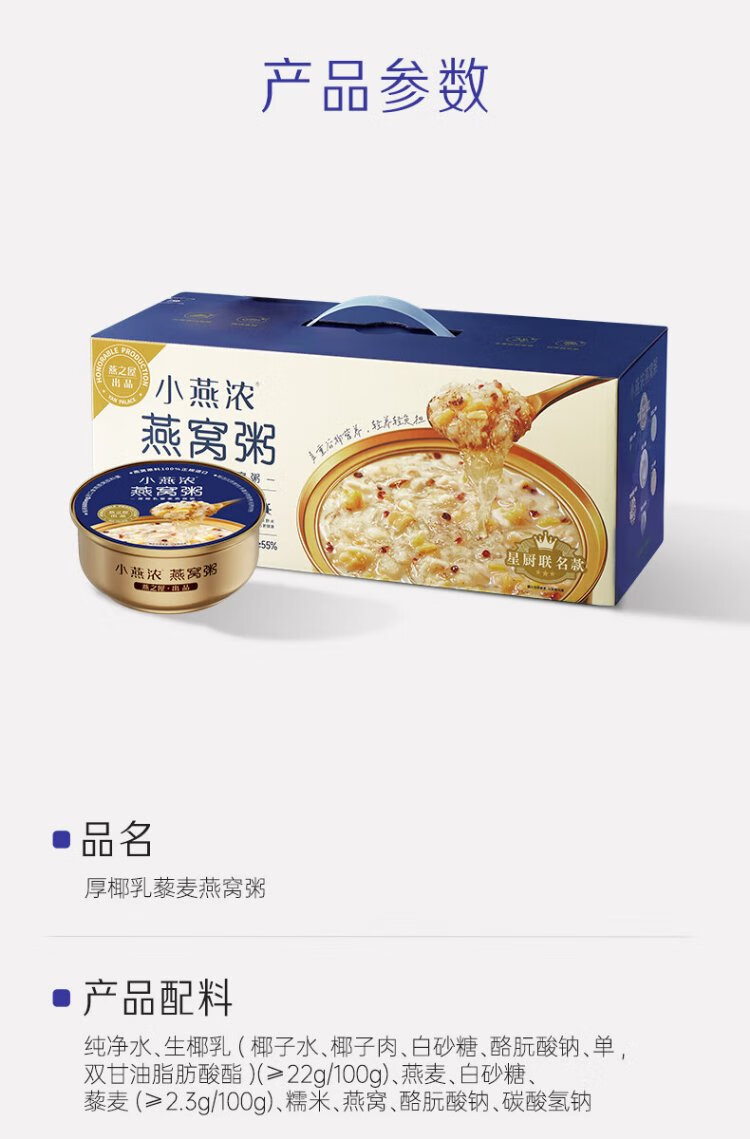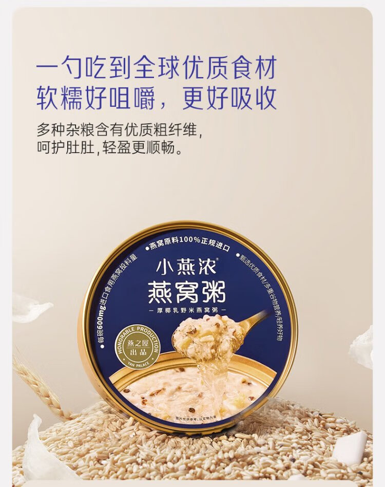 燕之屋小燕浓厚椰乳藜麦燕窝粥252g*6碗早餐粥速食粥即食燕窝送礼品礼盒