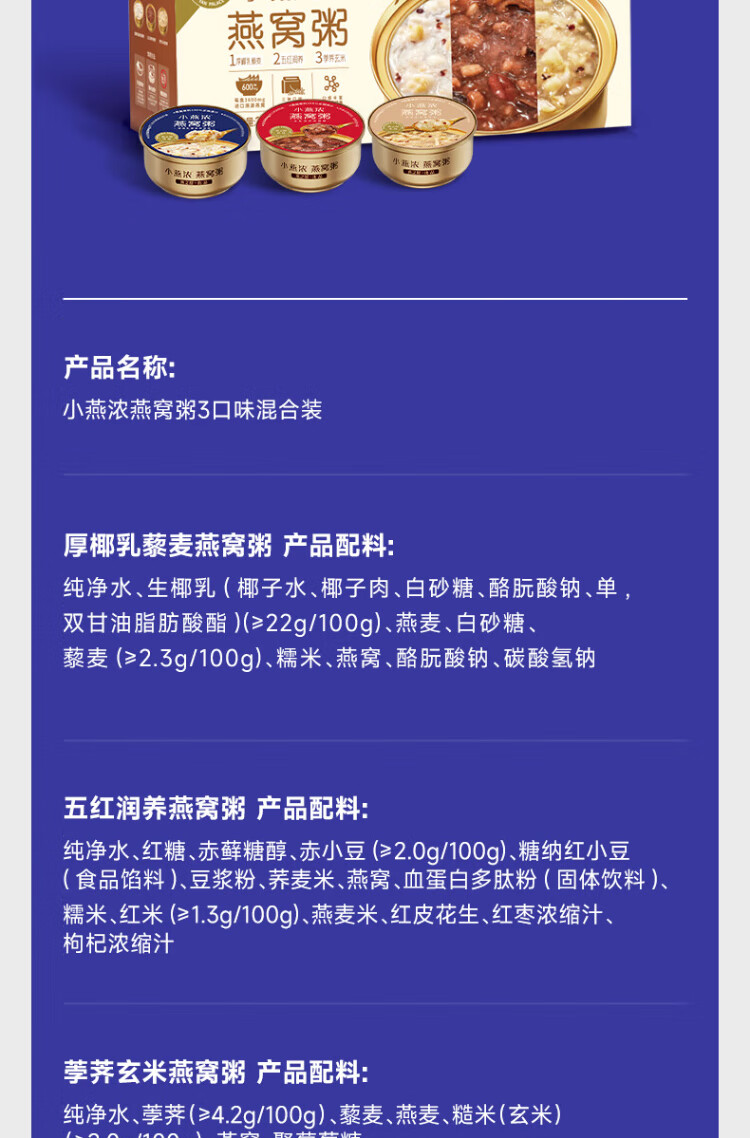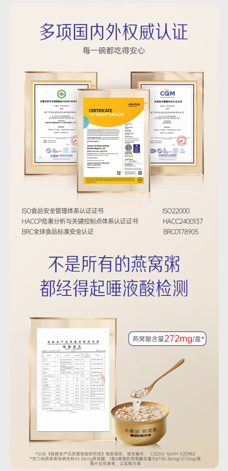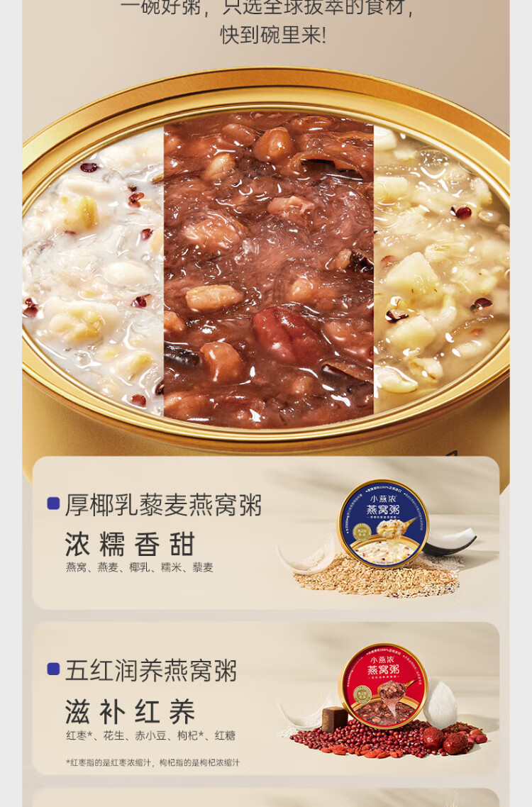 Yanzhiwu Xiaoyan bouillie épaisse de nid d'oiseau multi-saveur 252 g * 6 bols de bouillie instantanée de petit-déjeuner nid d'oiseau prête à manger (expire le 26 février)