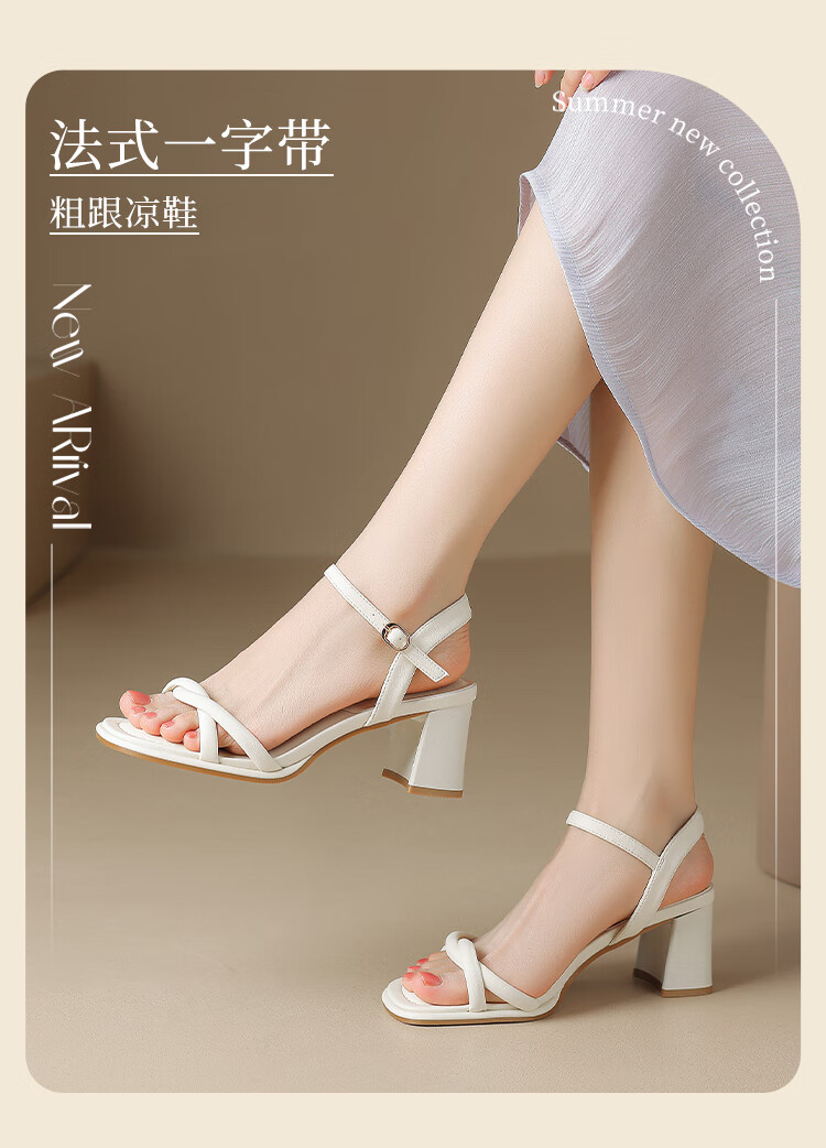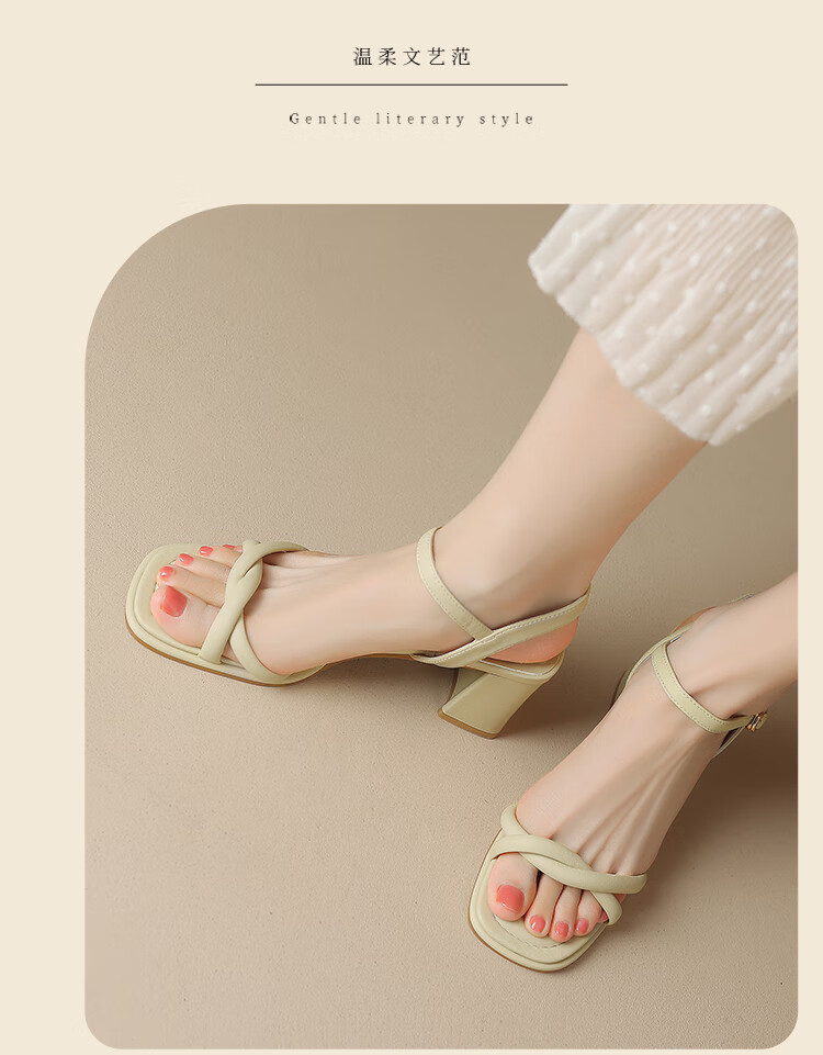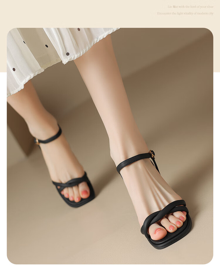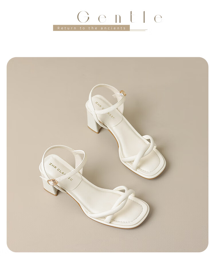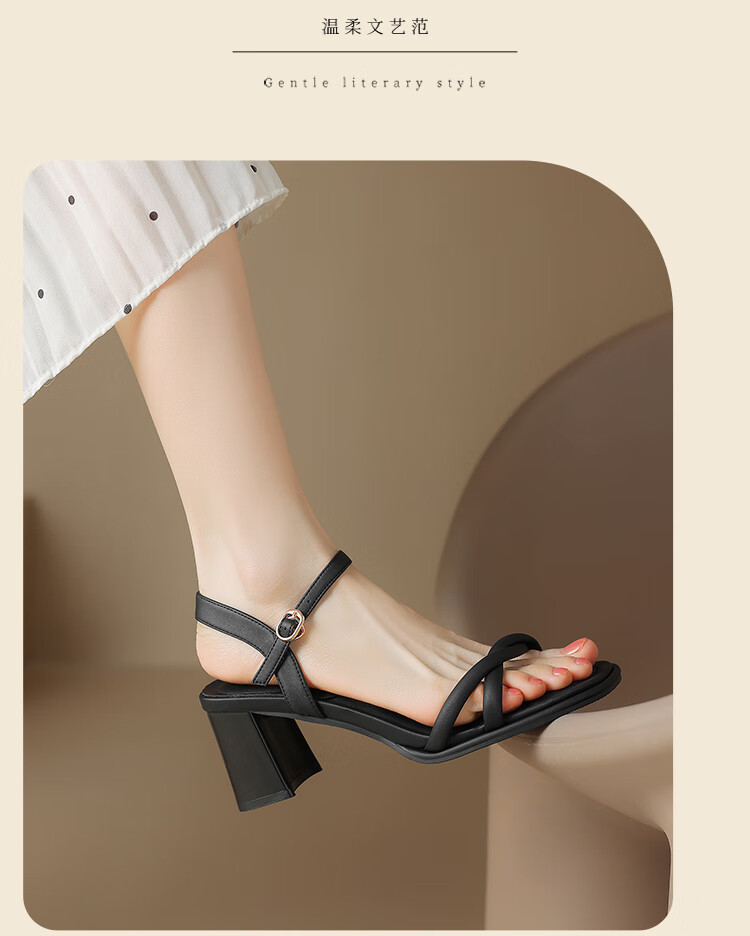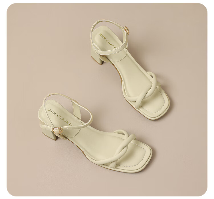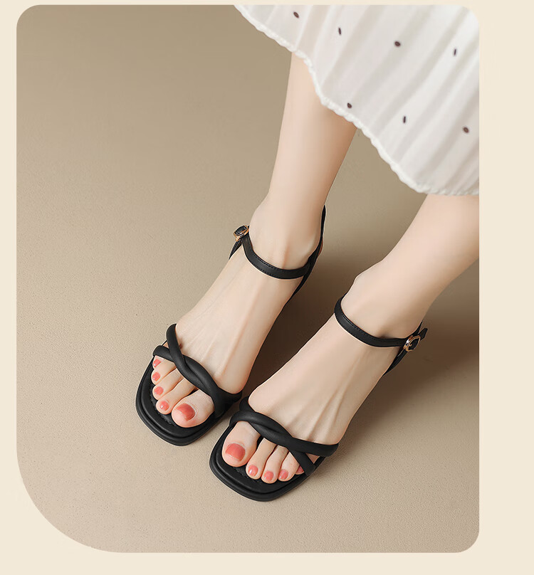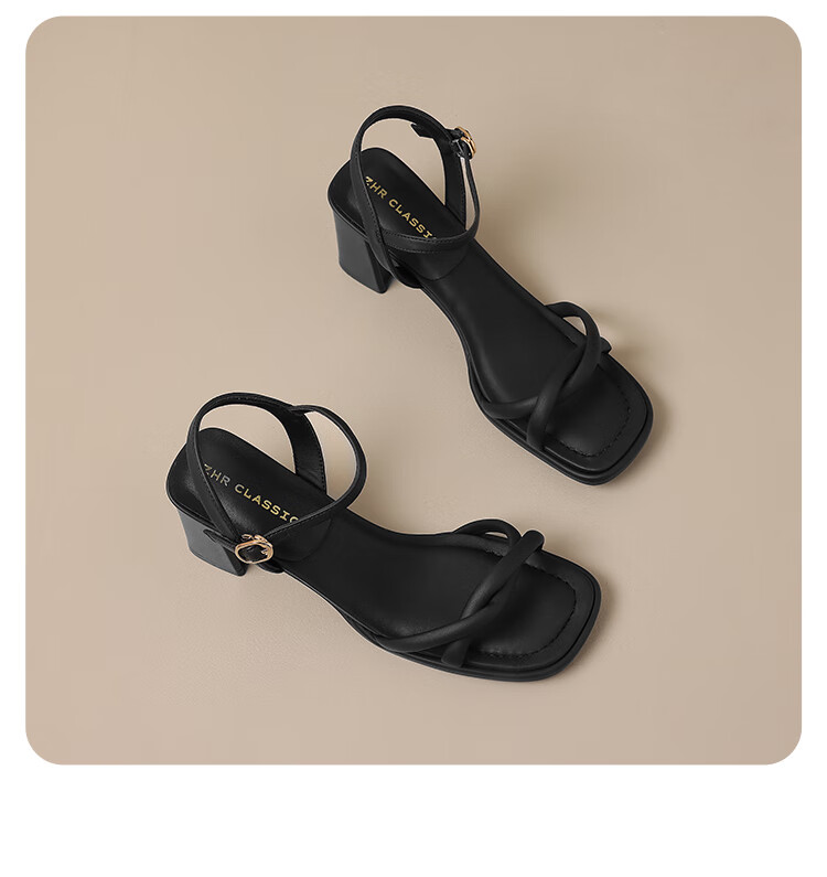 ZHR凉鞋女夏季方头百搭鞋子女粗跟增高一字带女鞋 Y757 黑色 36