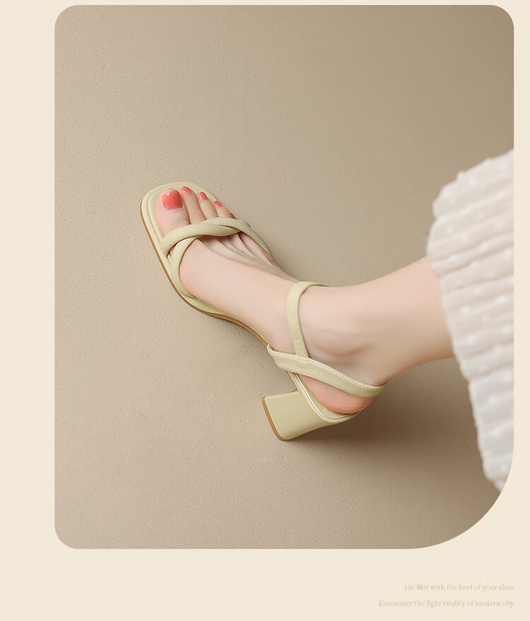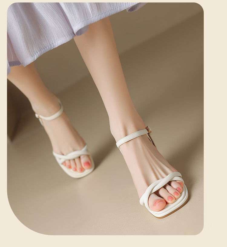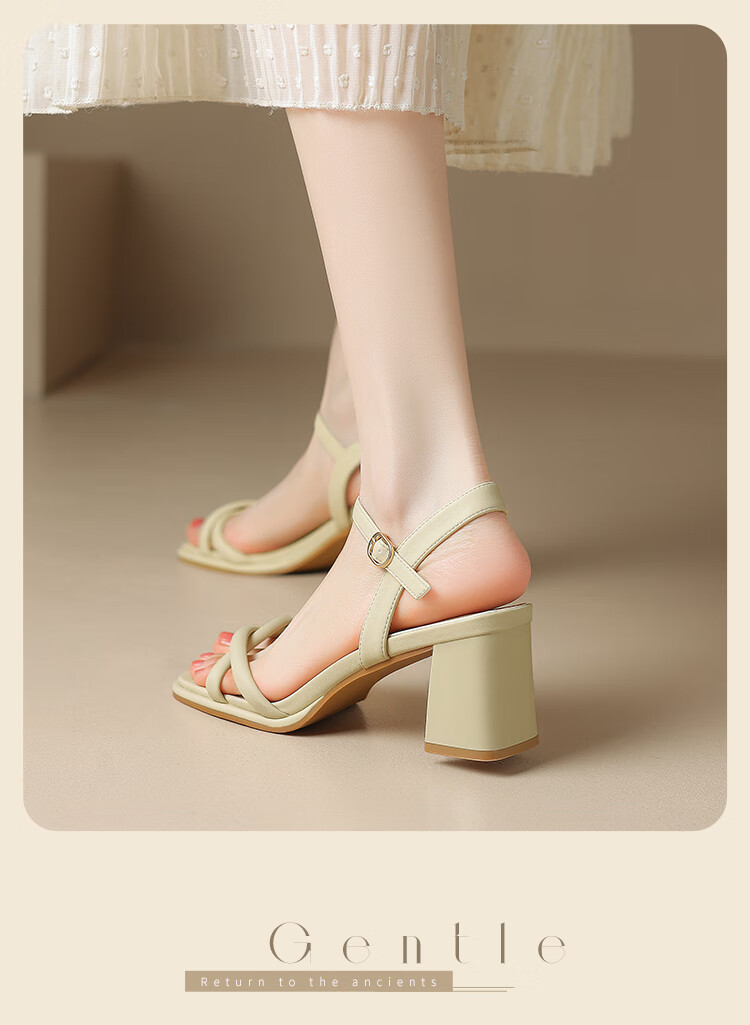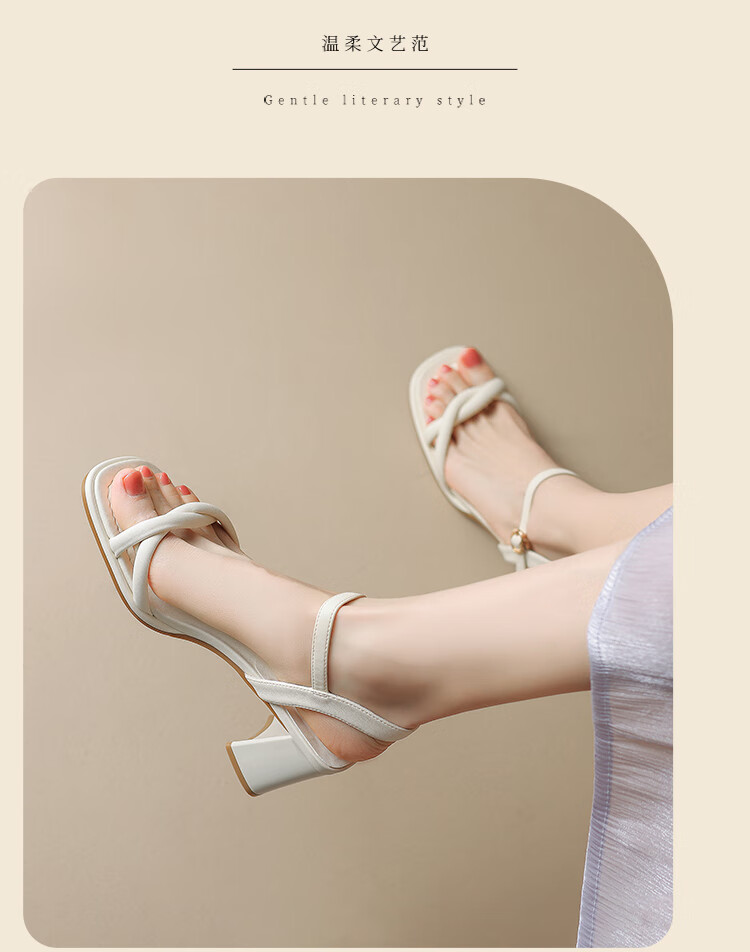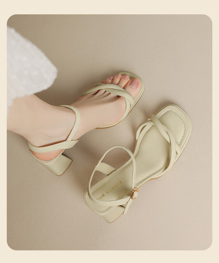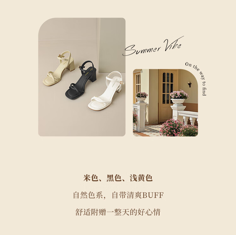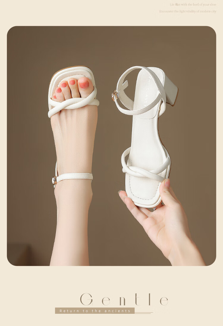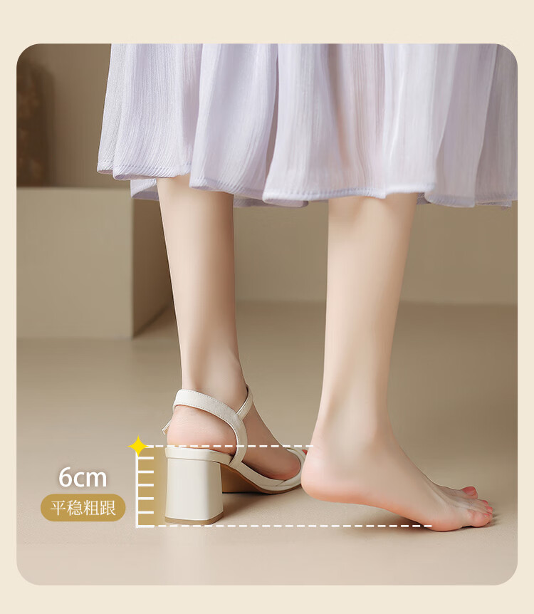 ZHR凉鞋女夏季方头百搭鞋子女粗跟增高一字带女鞋 Y757 黑色 36