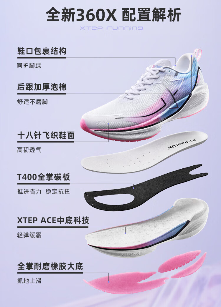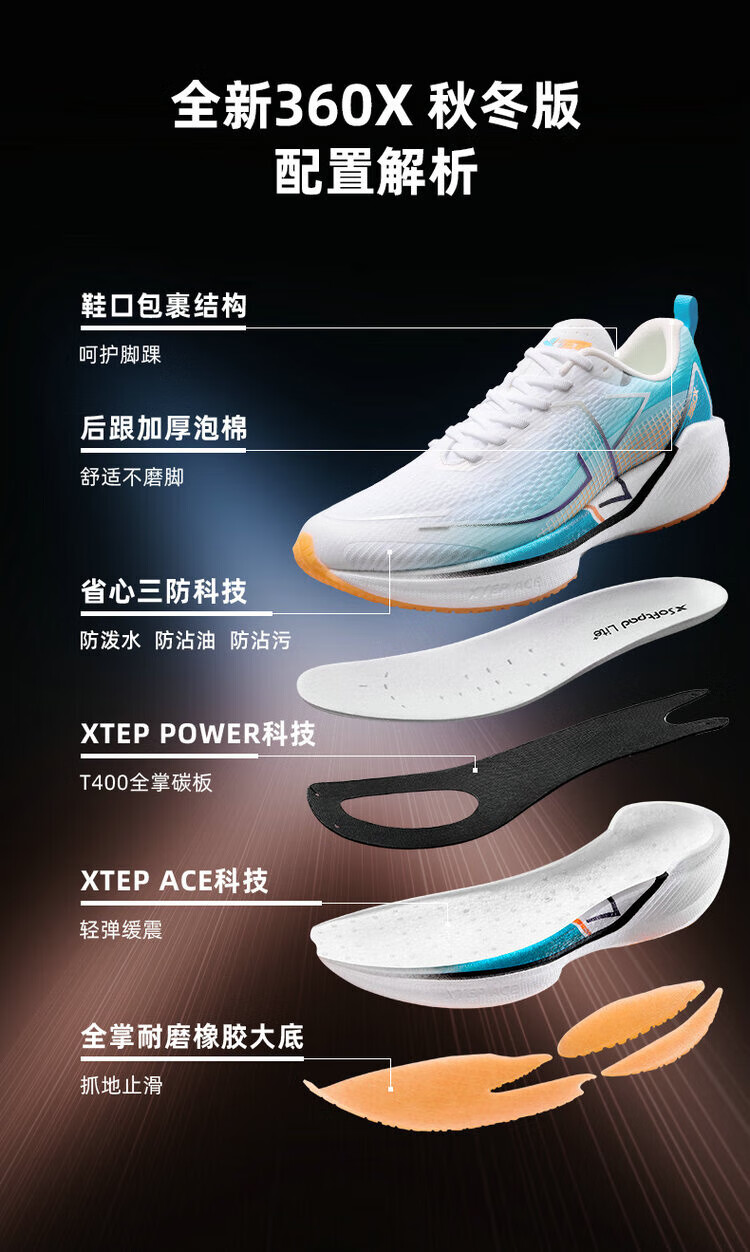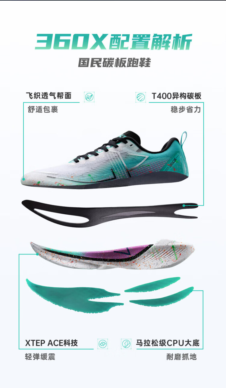 Xtep 360X zapatos para correr con placa de carbono de carreras de nivel básico, malla para hombres, transpirable, amortiguación ligera, rebote estable, zapatos para correr para hombres