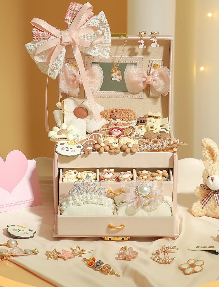 皇恩儿童首饰盒套装公主发饰礼盒小女孩玩具配饰4-6岁7-15圣诞节礼物