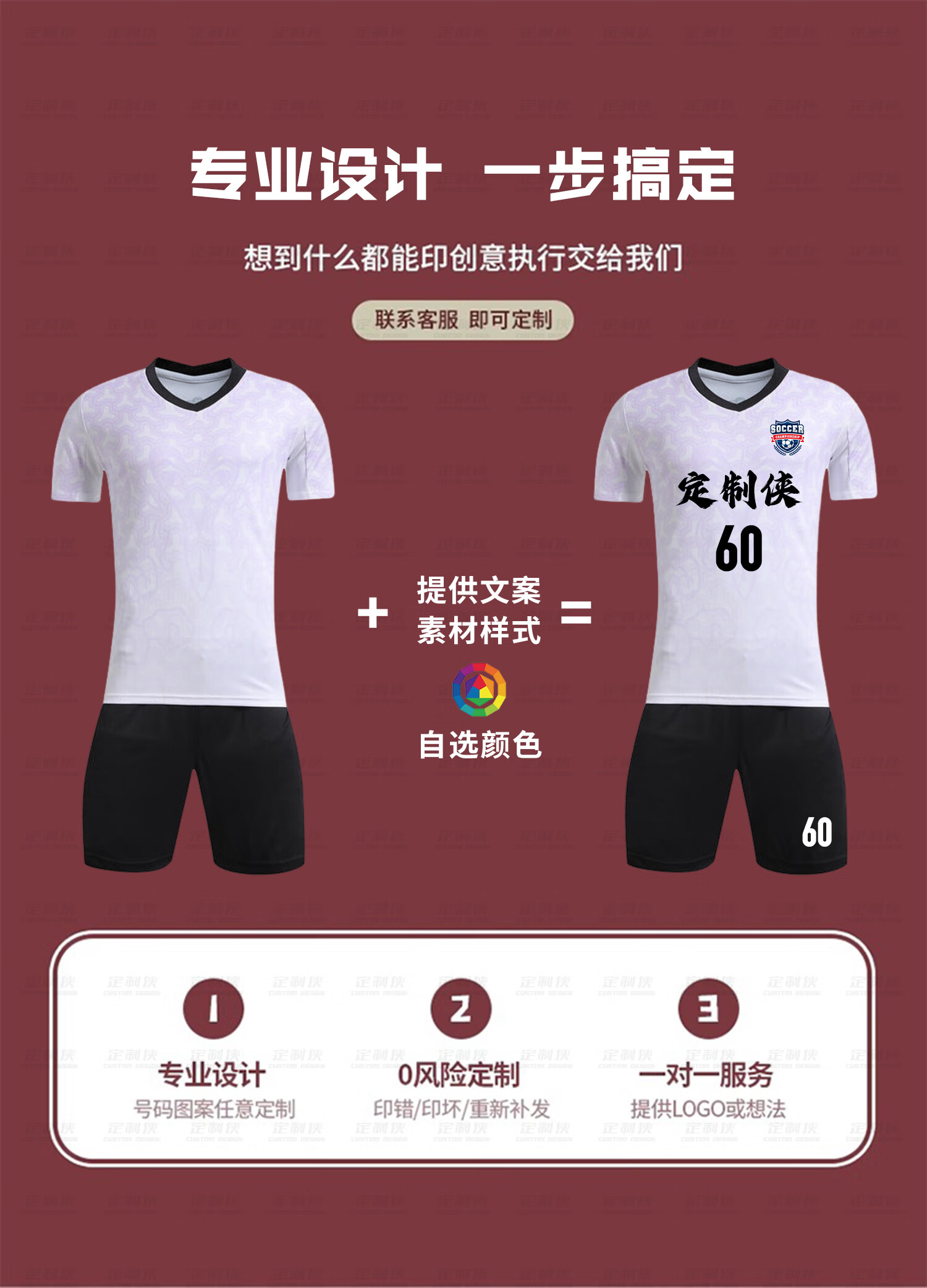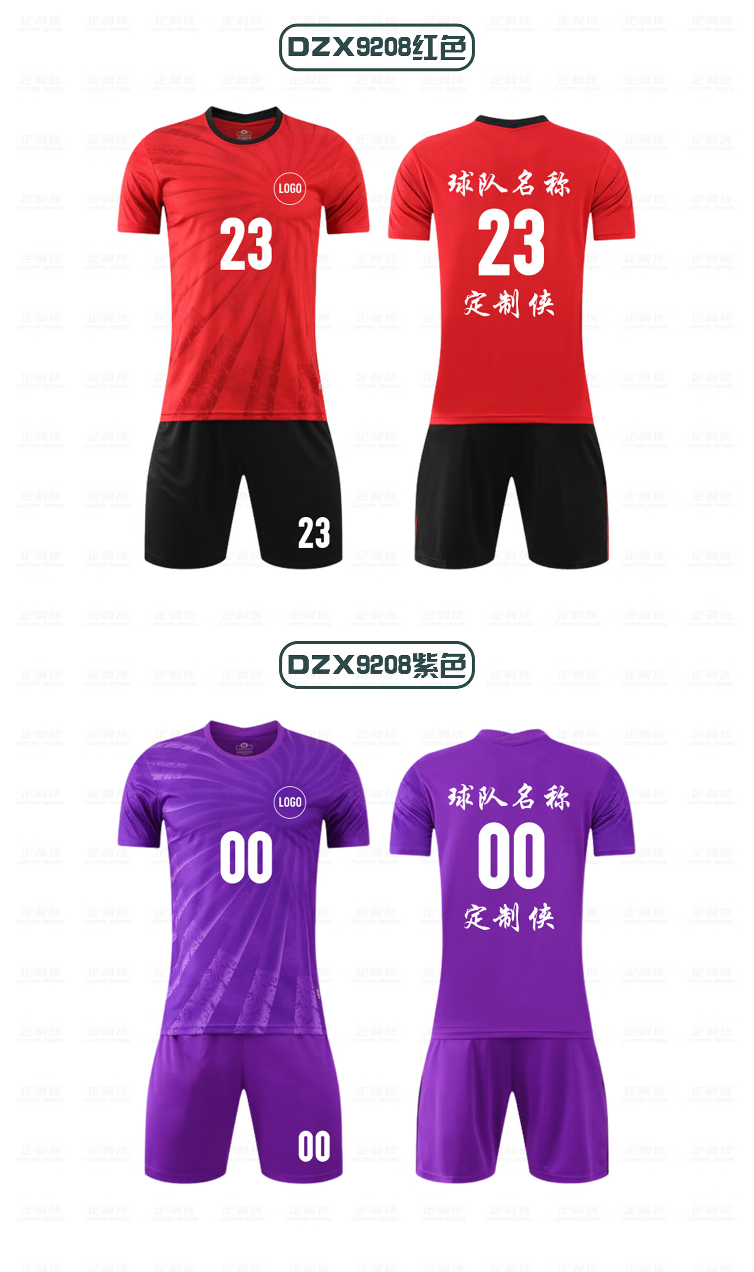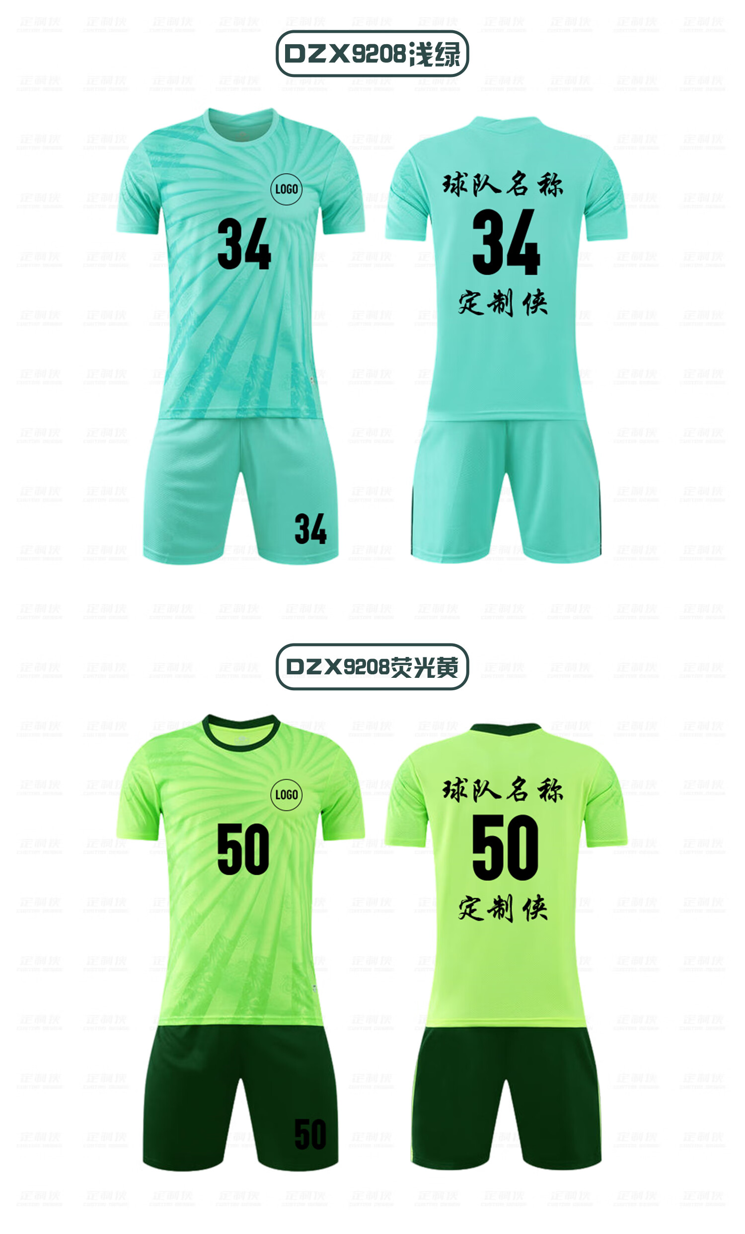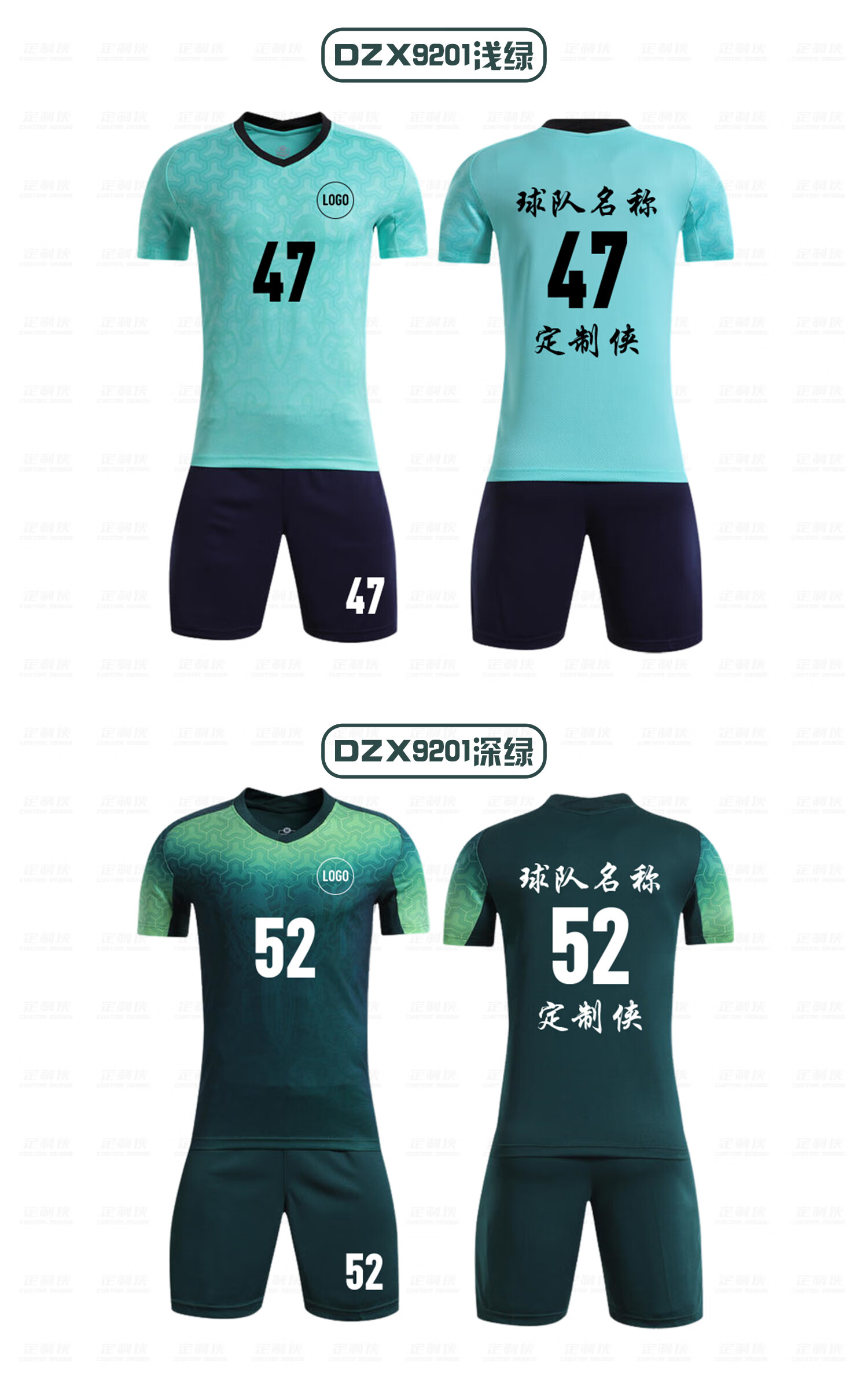定制侠定制侠足球服定制运动套装训练球衣免费印字球衣 DZX9201变色