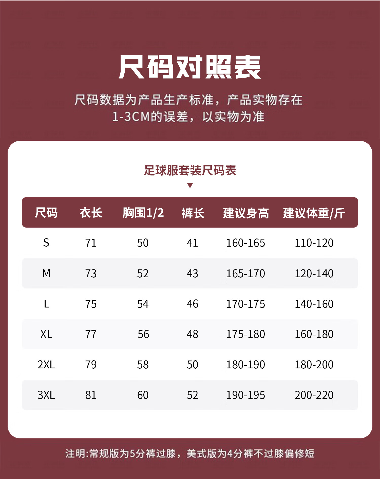 China (cm) 160-165/84-86 165-170 / 88-90 167-172 / 92-96 168-173 / 98-102 170-176 / 106-110