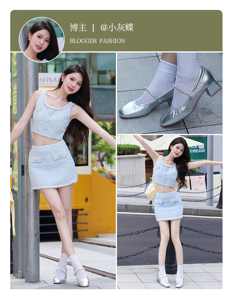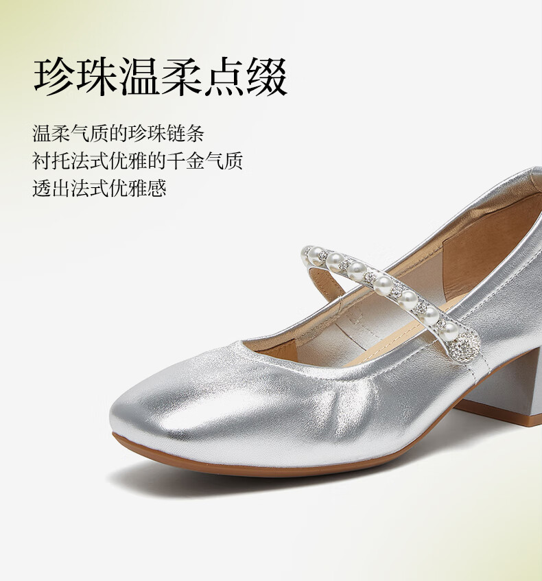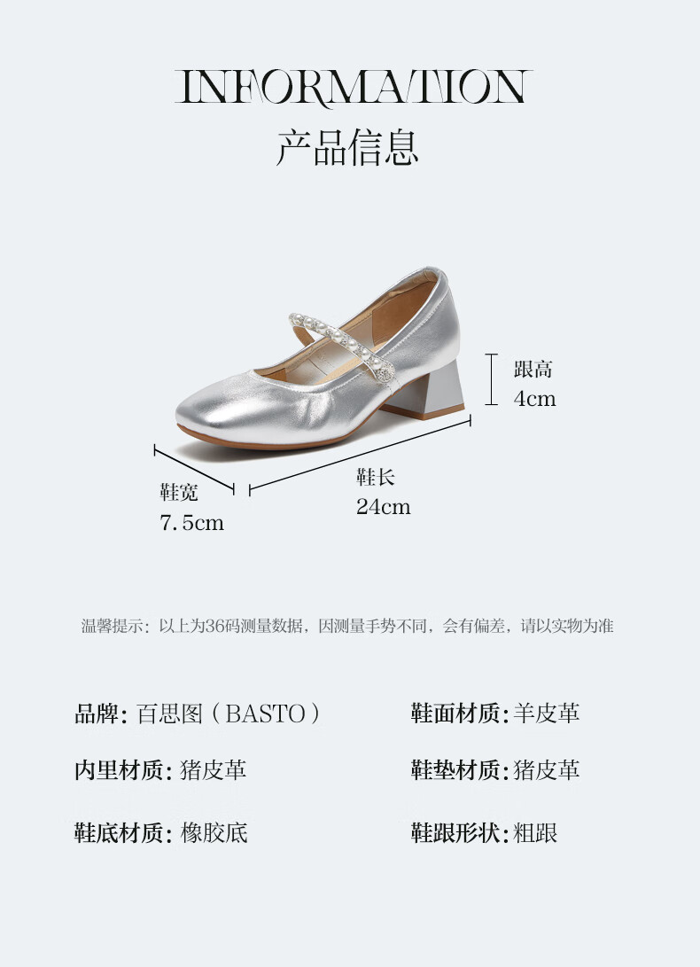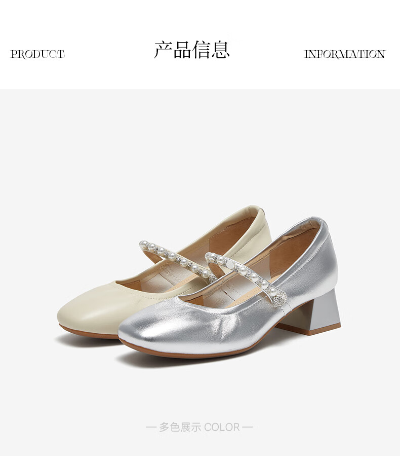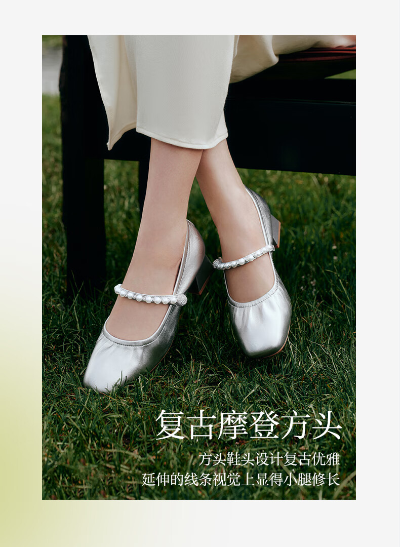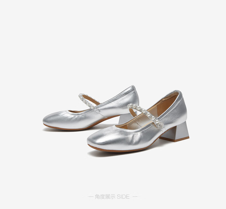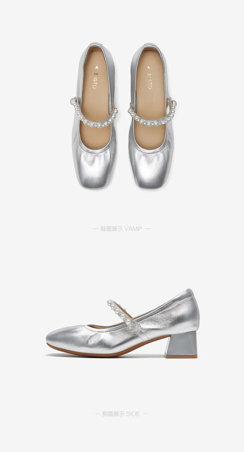 Best Picture 24 Herbst Französisch Mary Jane Damenschuhe mit dickem Absatz A1619CQ4 Silber 37