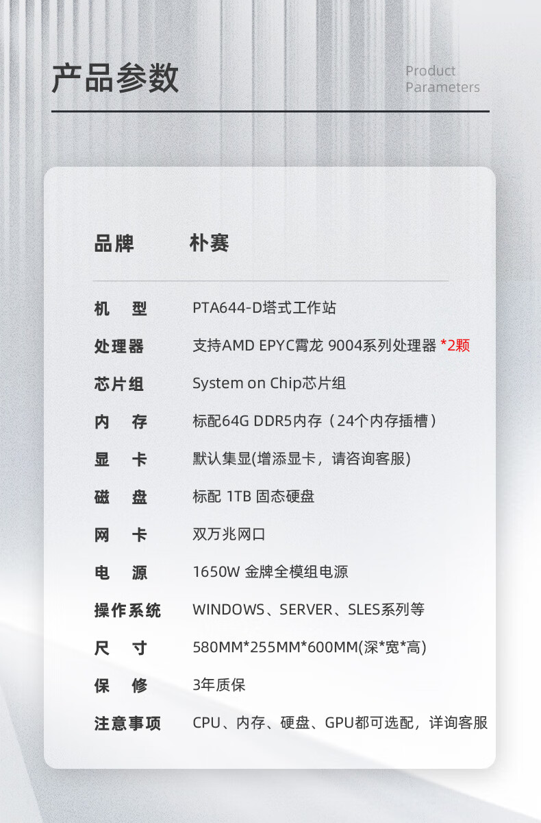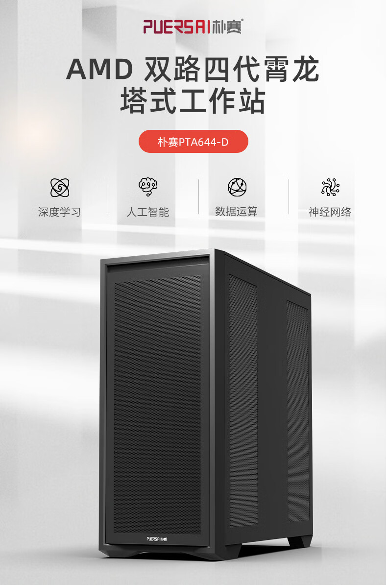 朴赛【PTA644-D】AMD双路EPYC霄龙9754 仿真计算/有限元/高性能HPC/塔式工作站 9754*2/64G/1T/集显