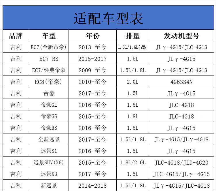 湃速 吉利帝豪EC7/EC8/RS帝豪GS/GL全新远景S1/X3远景X6火花塞9908
