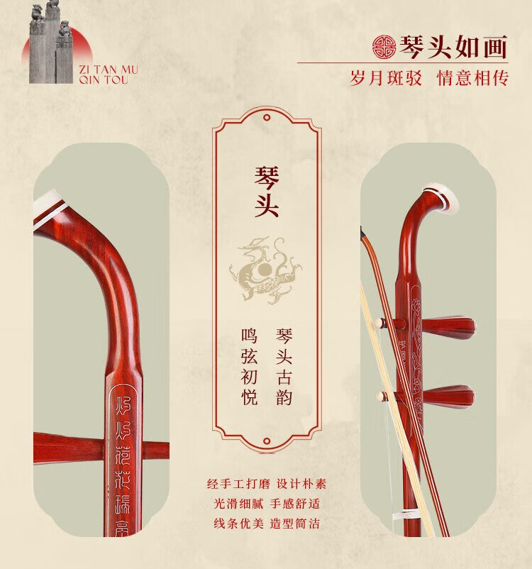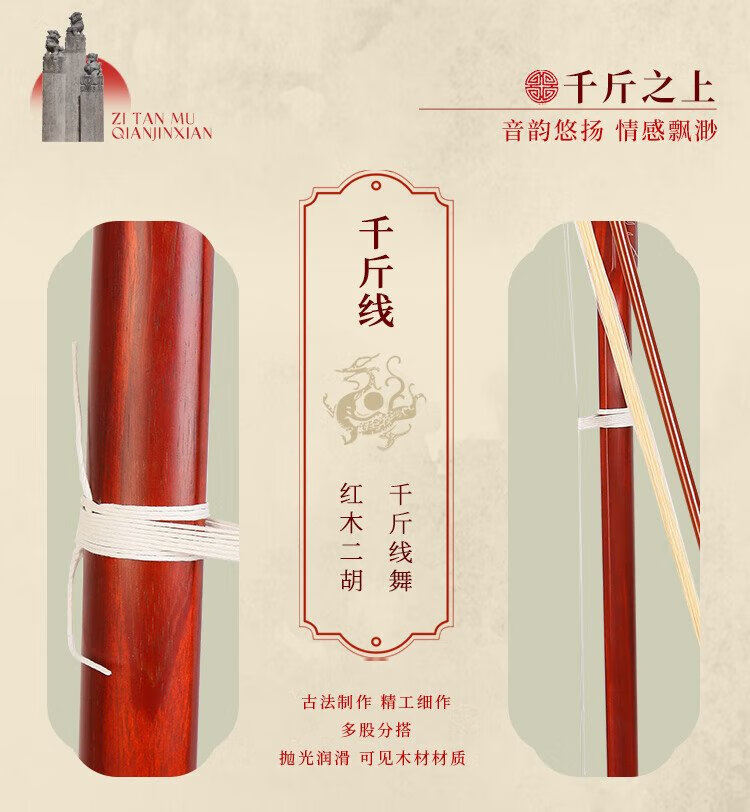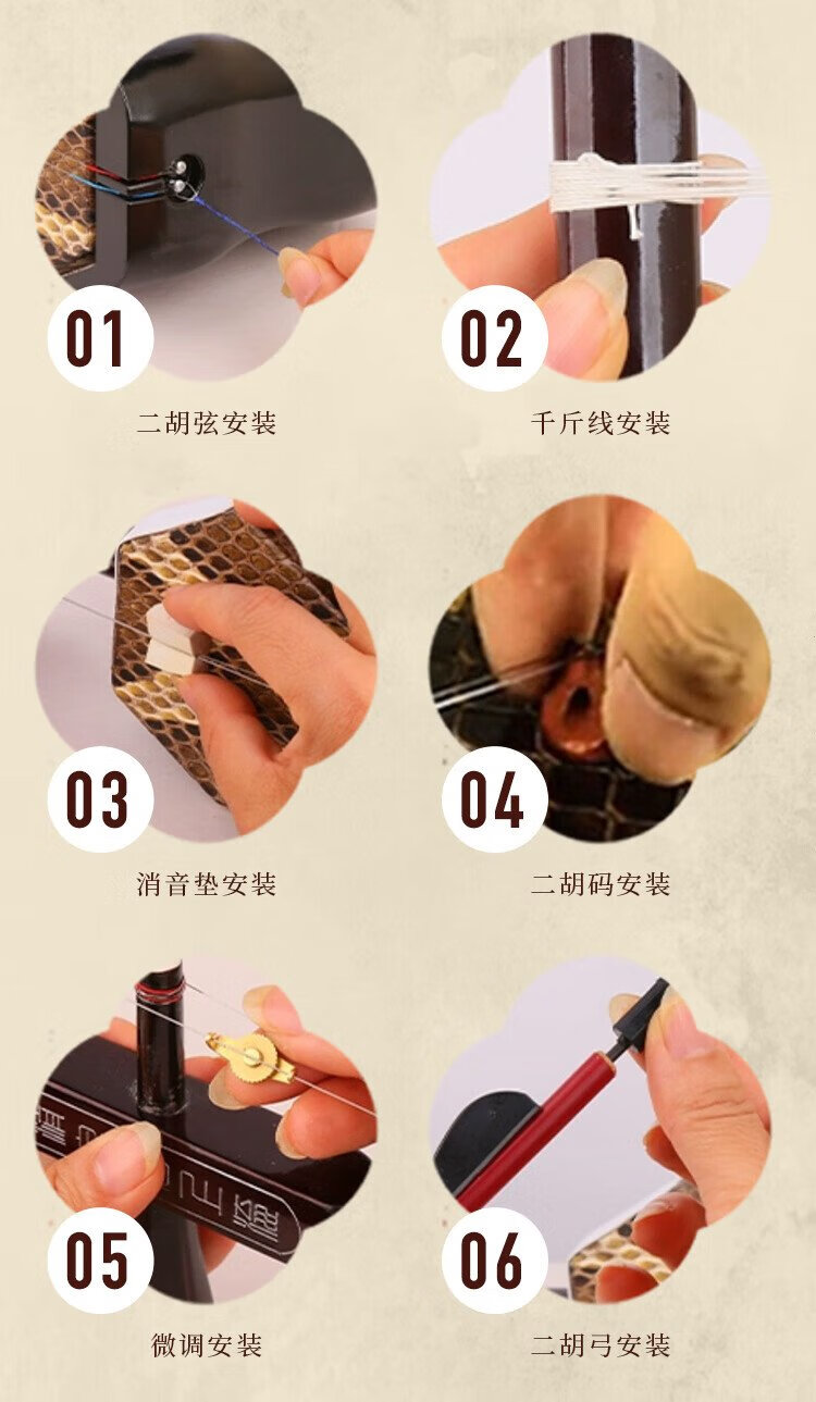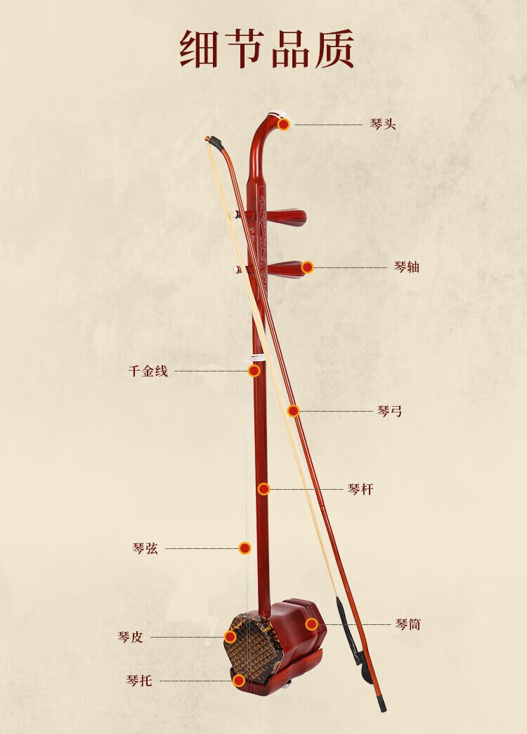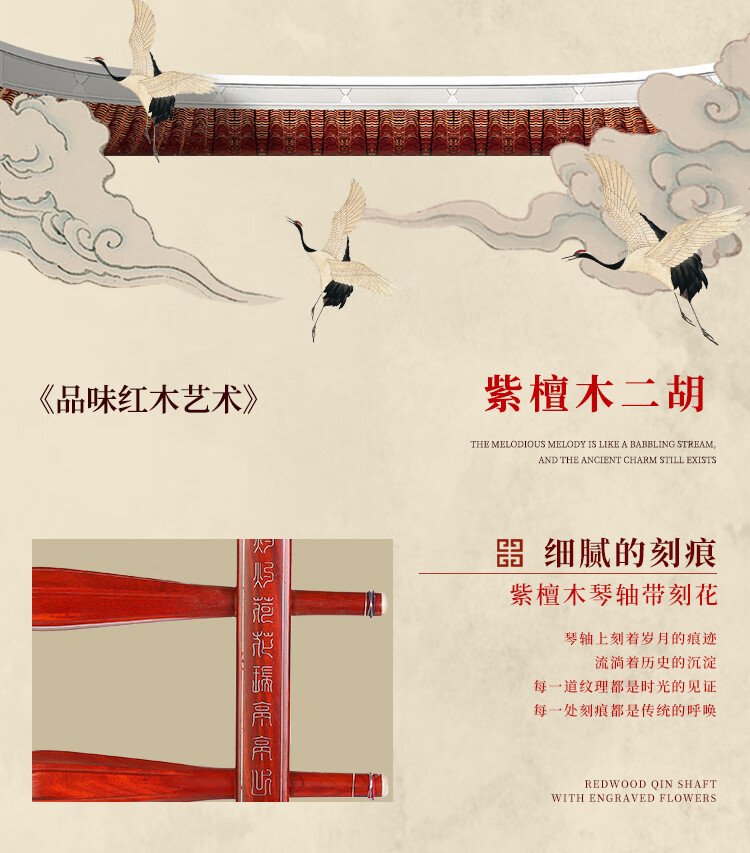 宏艺凤鸣(HongYiFengMing) 非洲紫檀木二胡 蟒皮六方二胡 考级成年人儿童通用民族管弦乐器