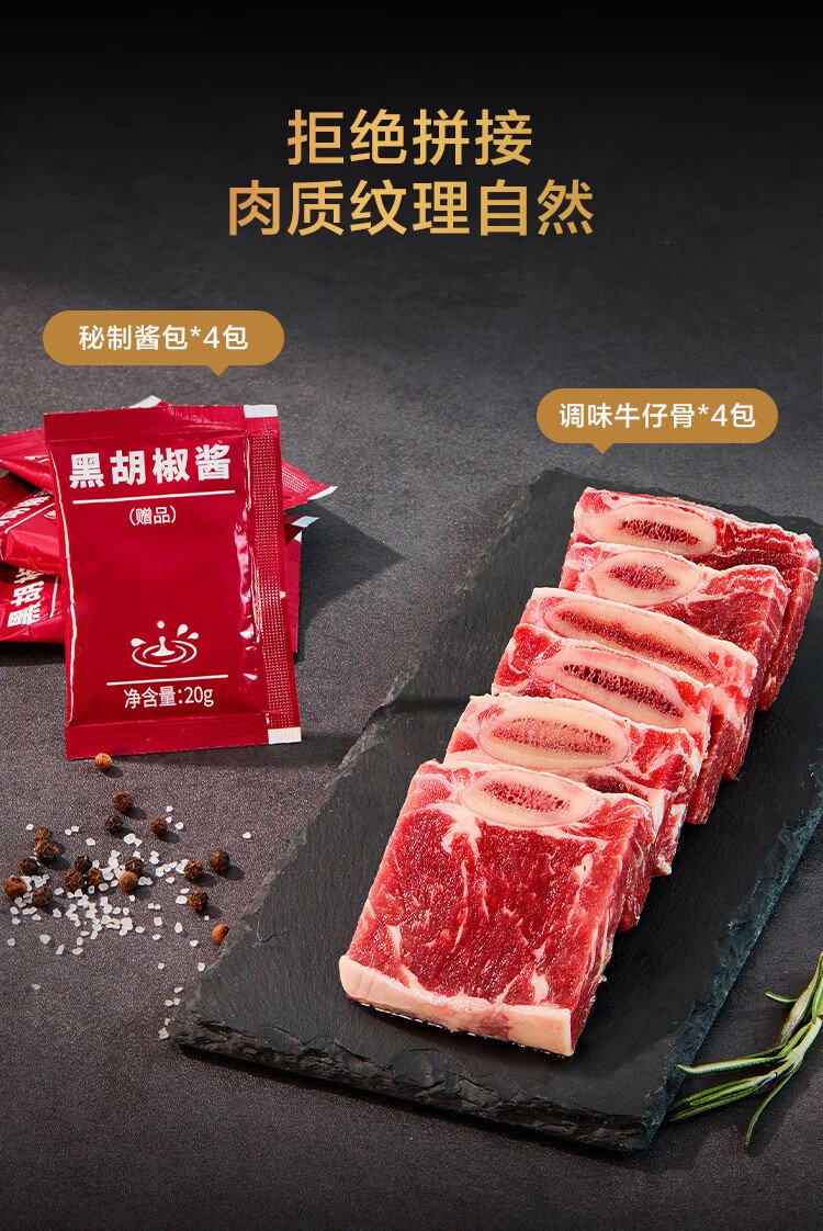Hergestellt in Tokio, Rinderrippen mit Meersalz und schwarzem Pfeffer, 880 g, ganz geschnitten, nicht gespleißt, Rindersteak, Rippchen, Grillzutaten, Fertiggerichte