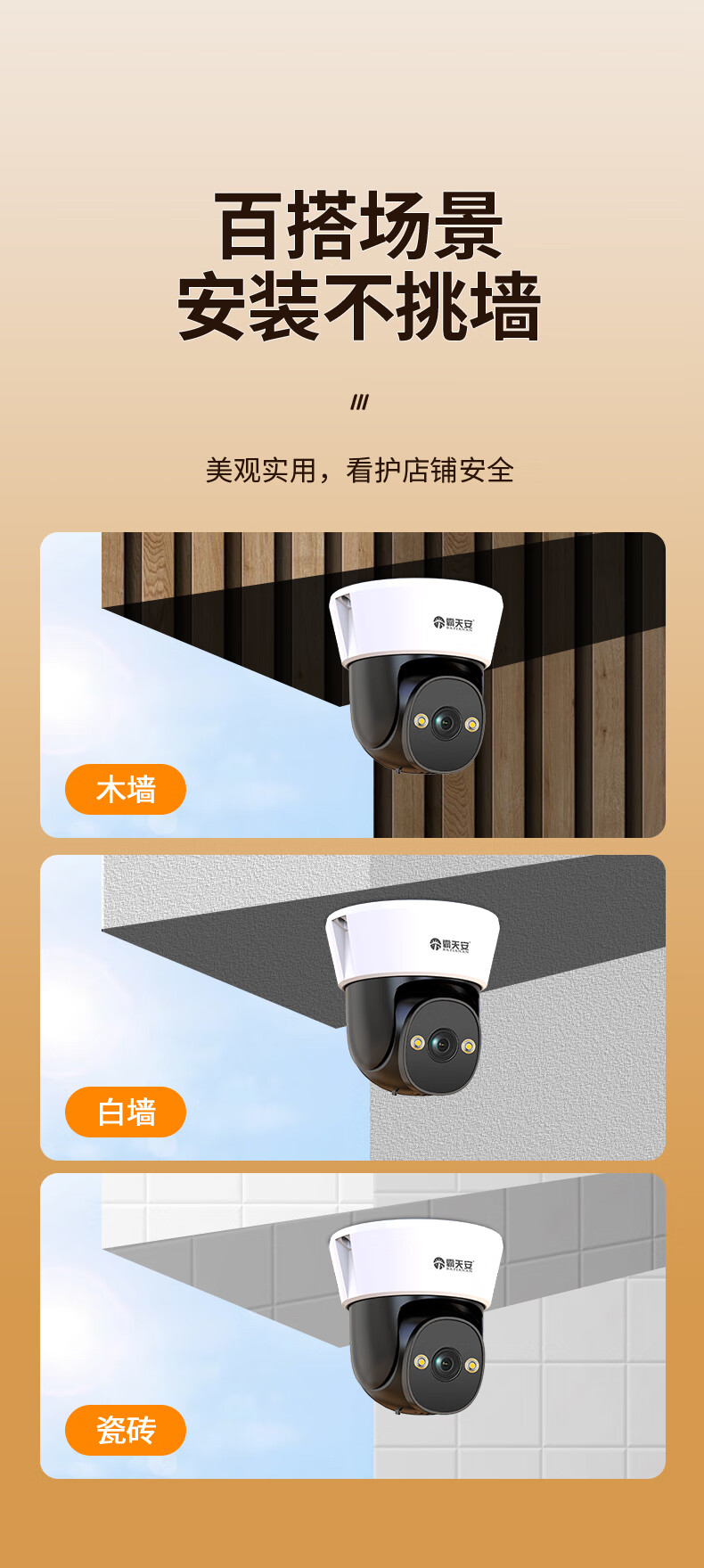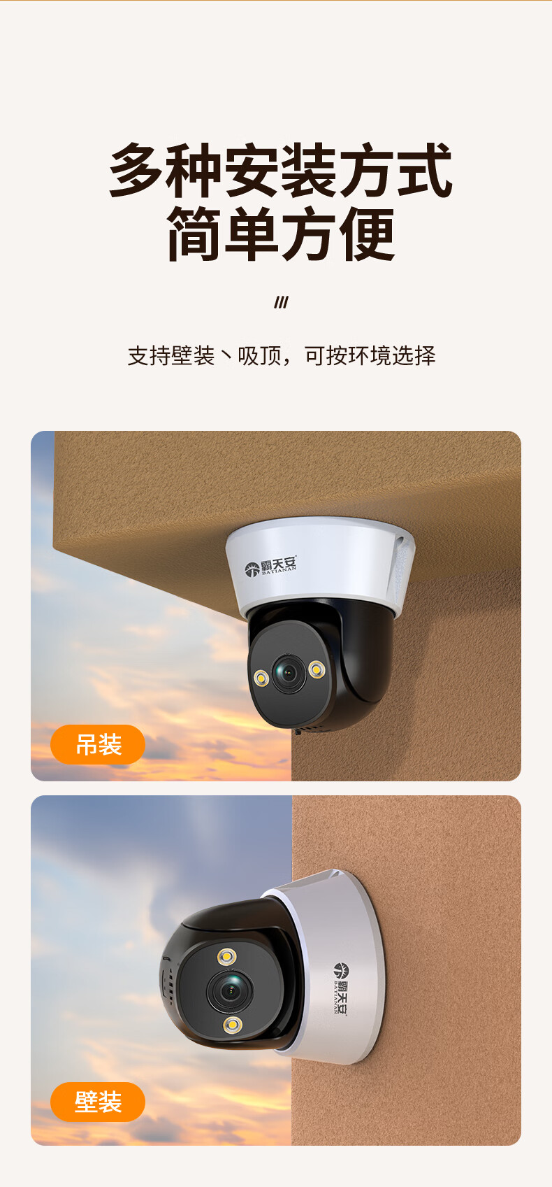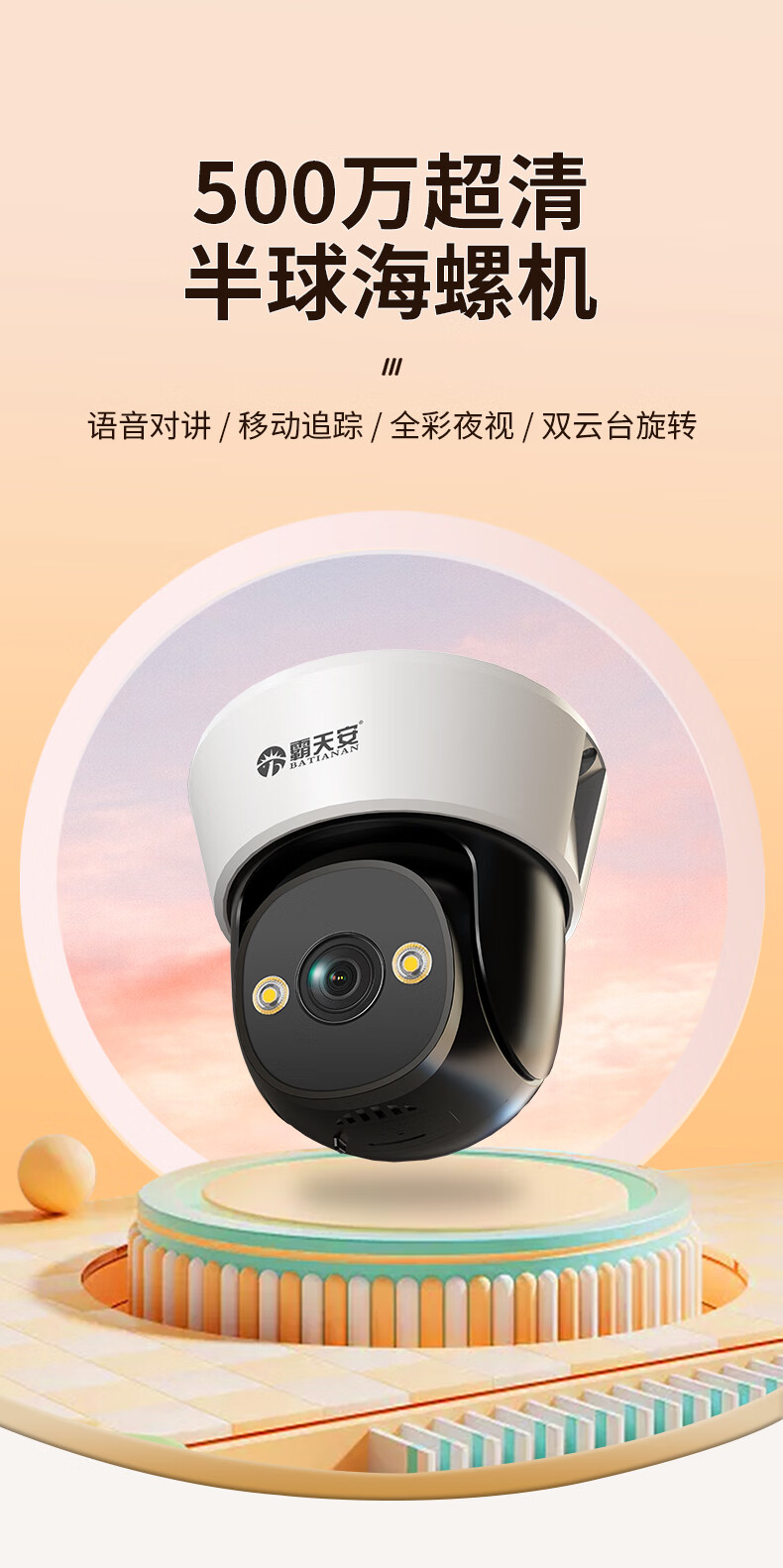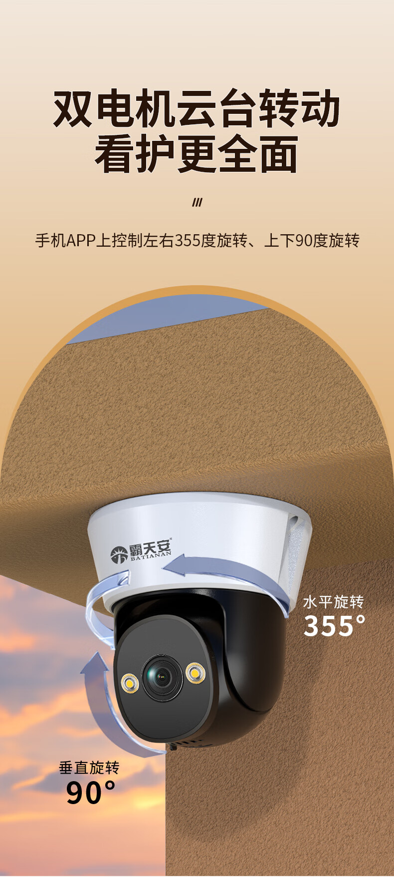 Moniteur Batianan 360 degrés sans angles morts avec vision nocturne caméra commerciale montée au plafond sans fil panoramique-inclinaison hémisphère rotatif surveillance maison porte d'entrée intérieure couloir ascenseur