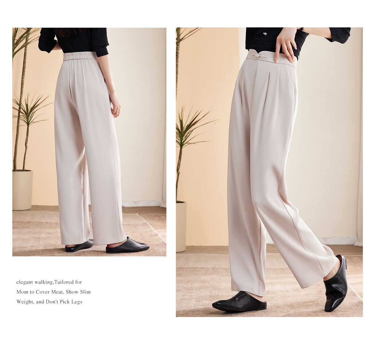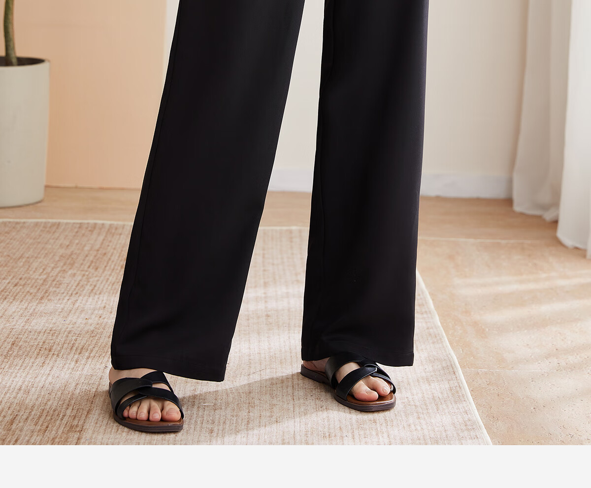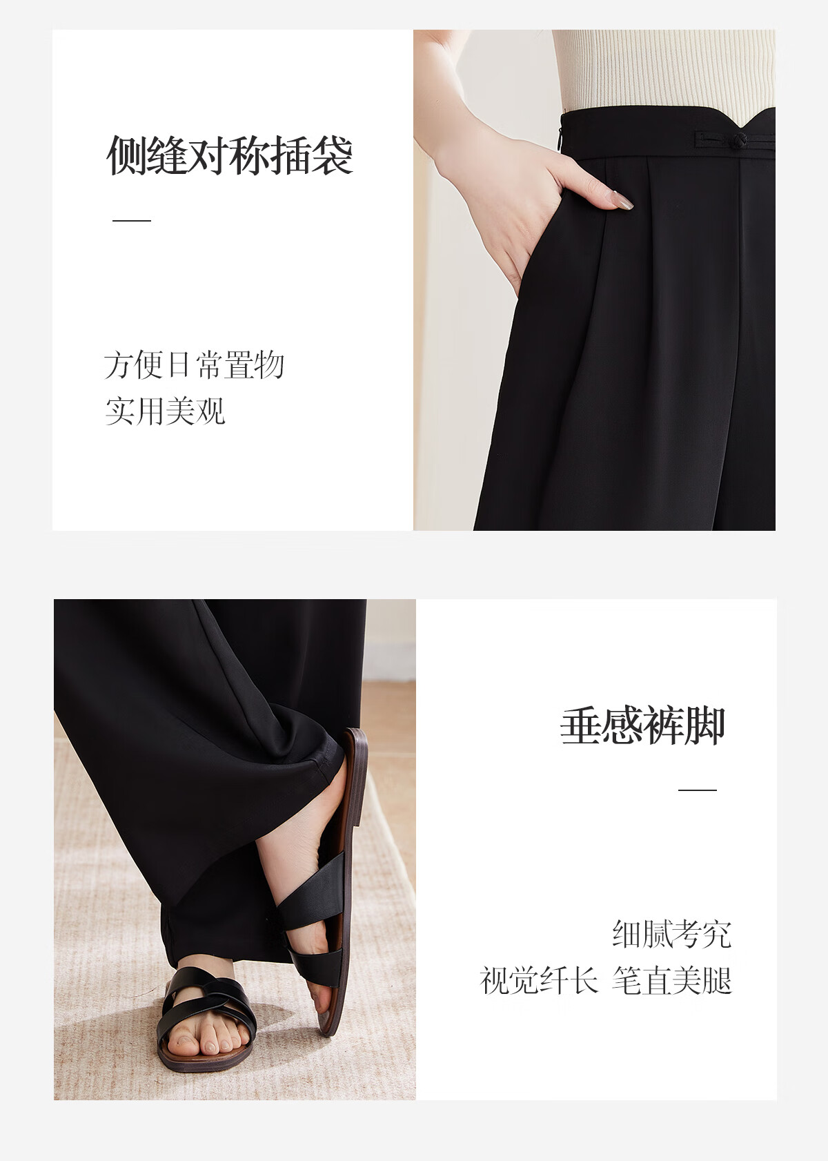 Le gustan los pantalones casuales para mujer, pantalones rectos con hebilla de estilo oriental simple y lujoso, pantalones de pierna ancha con drapeado fino para mujer T144K6623