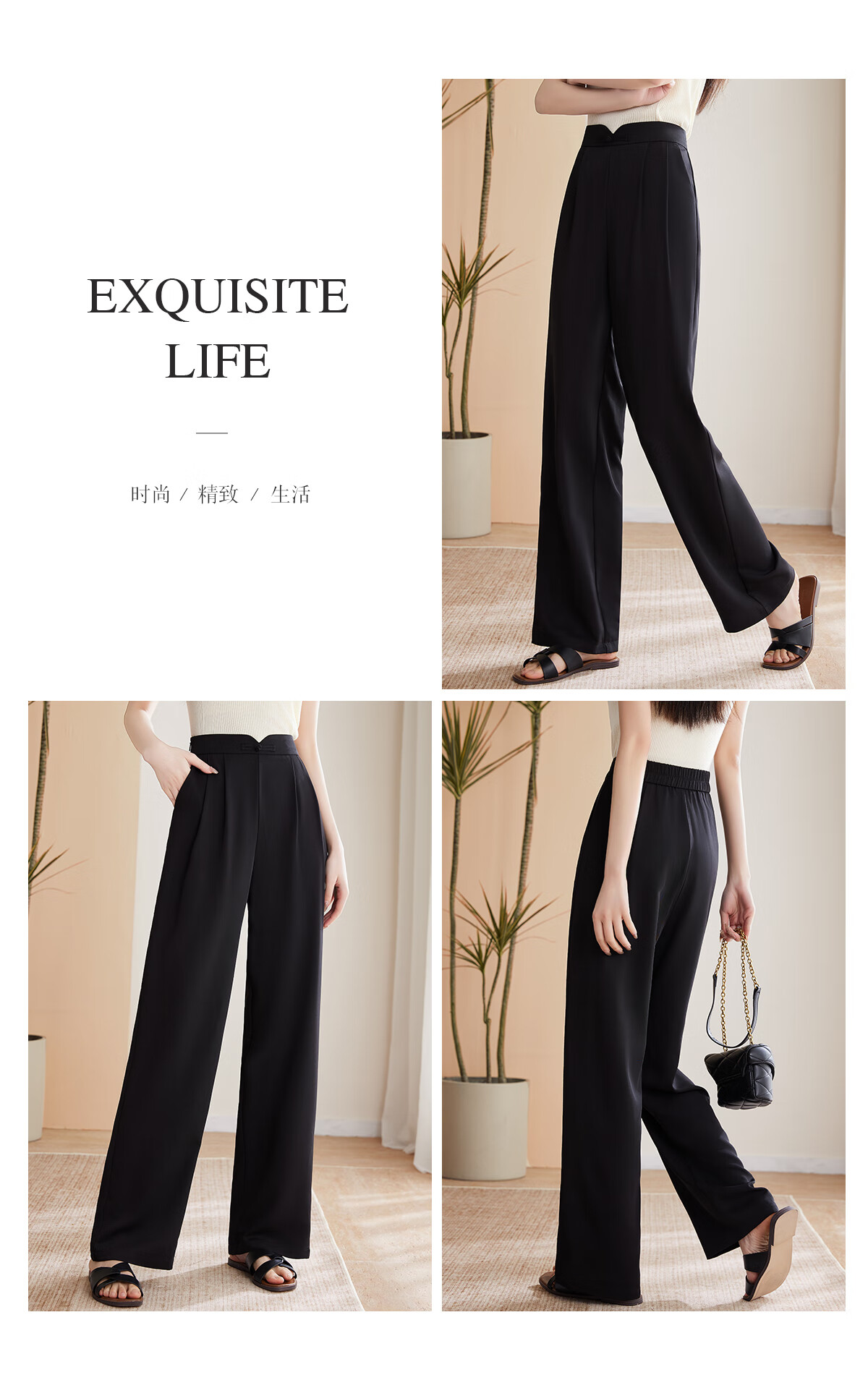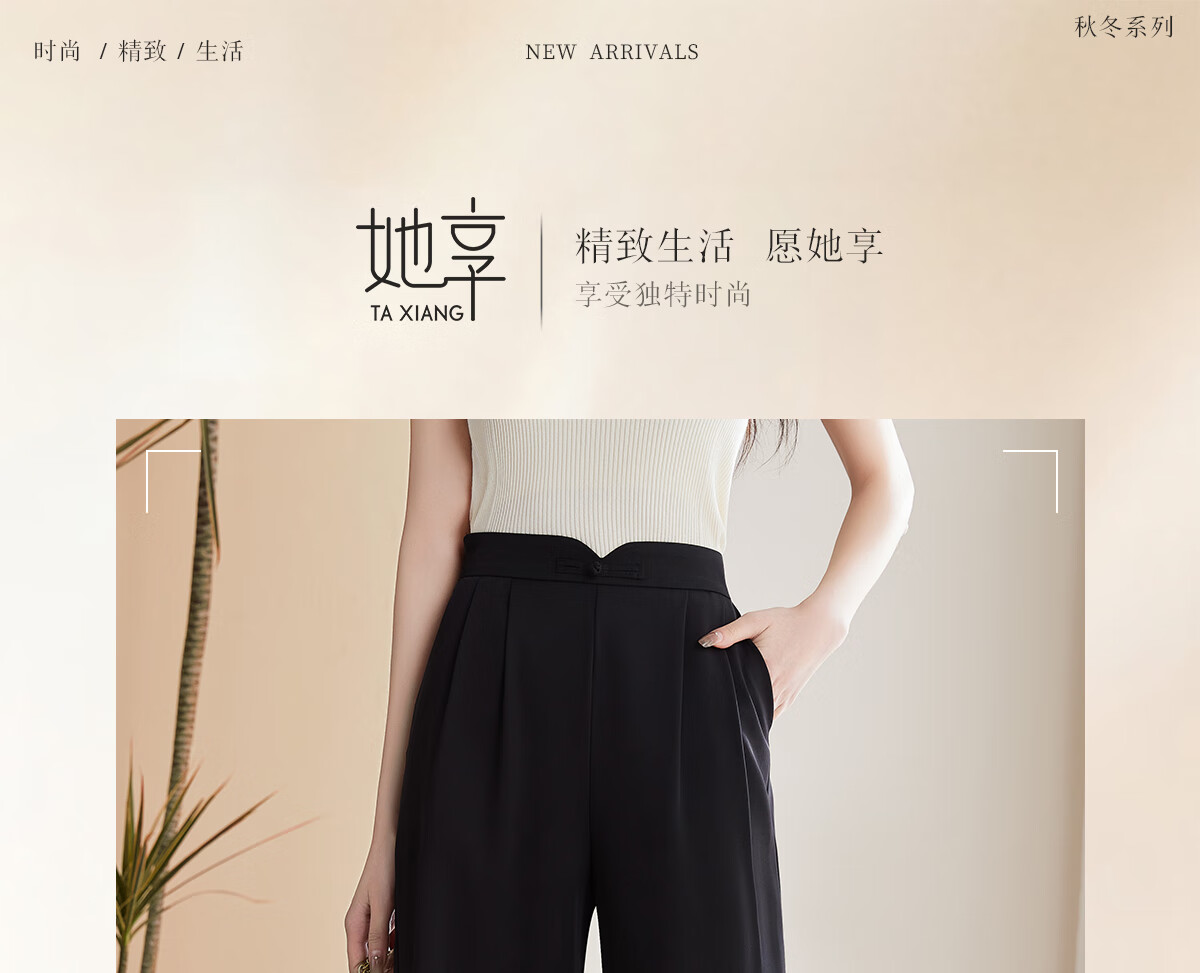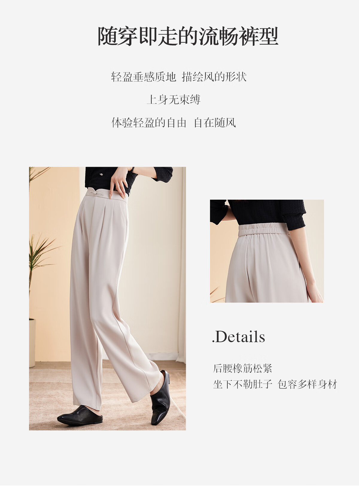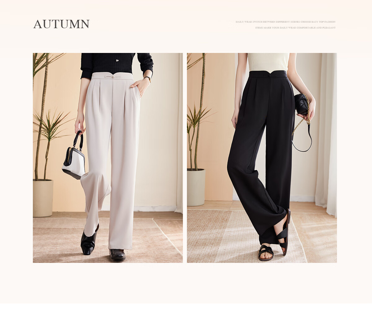 Le gustan los pantalones casuales para mujer, pantalones rectos con hebilla de estilo oriental simple y lujoso, pantalones de pierna ancha con drapeado fino para mujer T144K6623