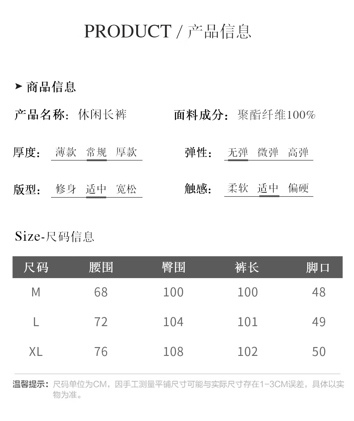 Outseam (cm) 99 cm 101.5 cm 104 cm 106.5 cm 109 cm