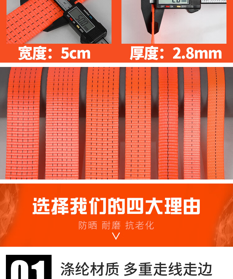 贝傅特 捆绑带 刹车绳捆绳带万能收紧器固定货车打包带 宽3.8cm厚1.6mm(2吨)30米