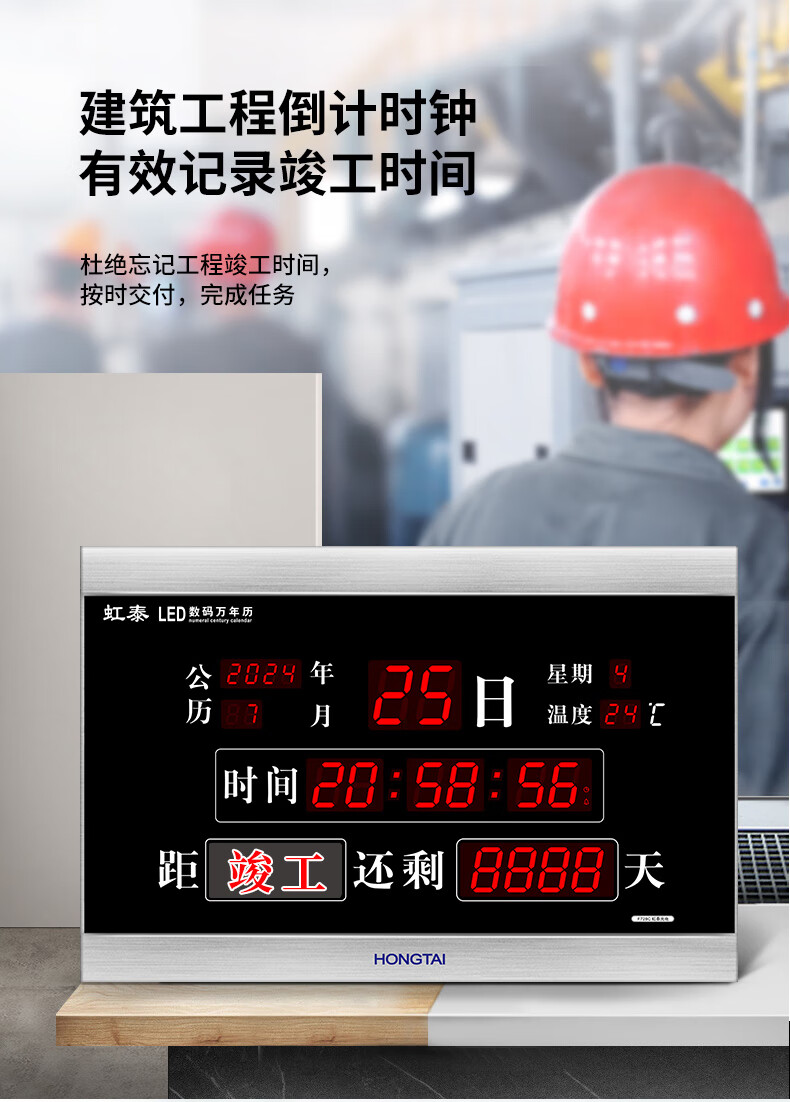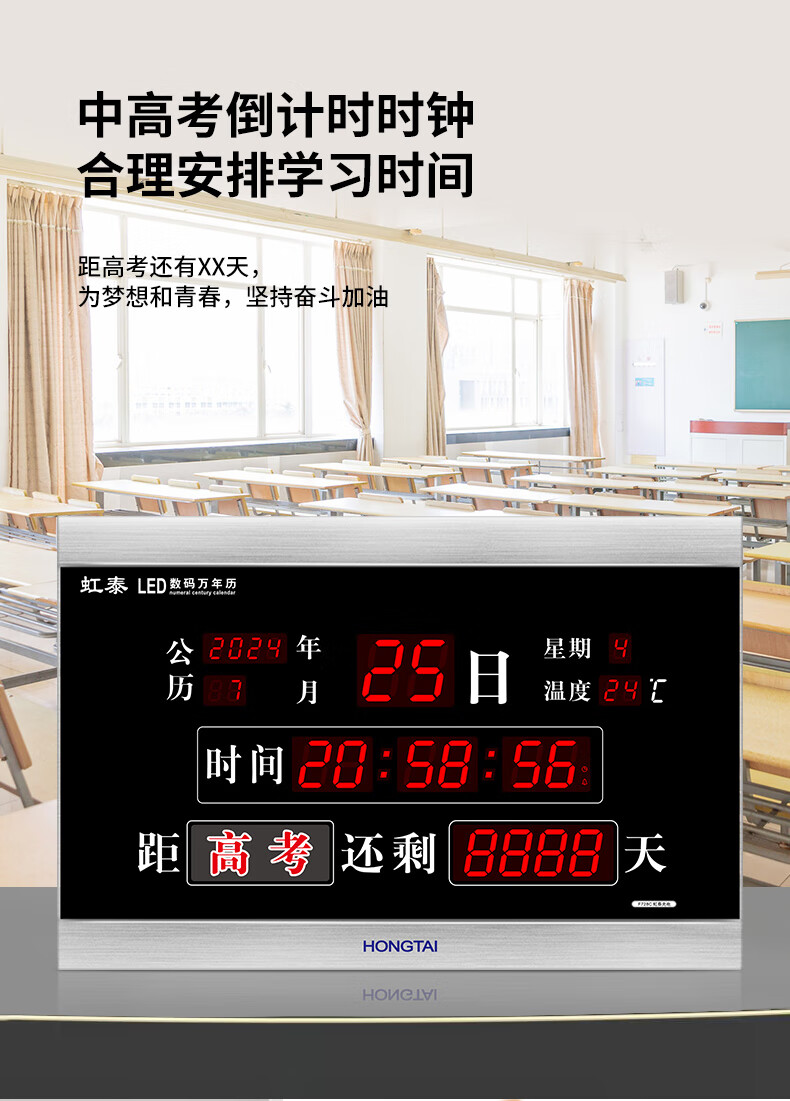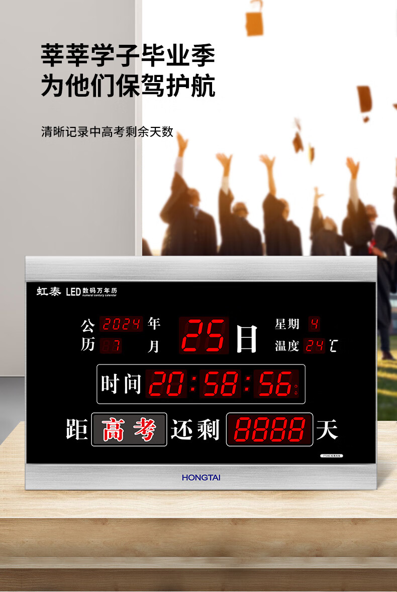 虹光(HonGuan)万年历竣工牌时钟高考计时器 LED电子挂钟 F728C-倒计时黑