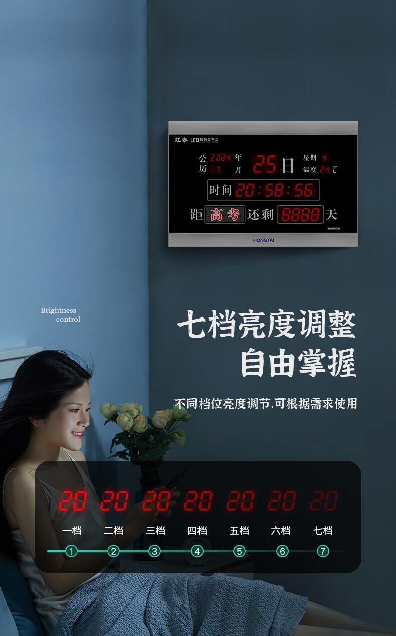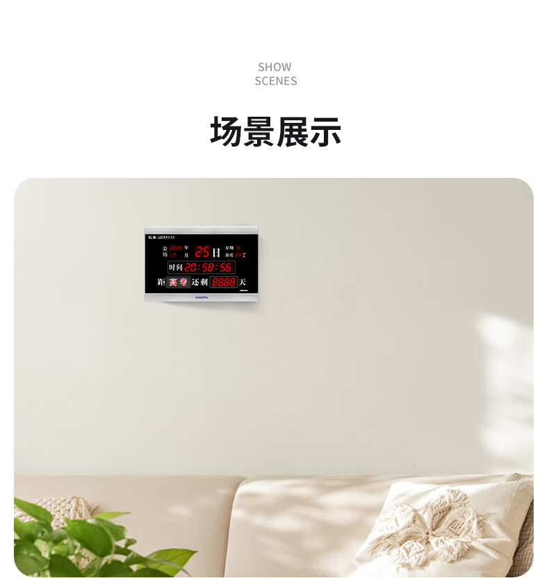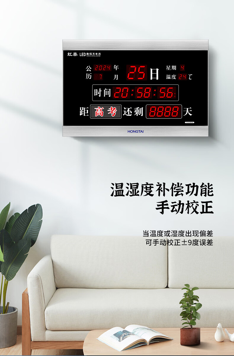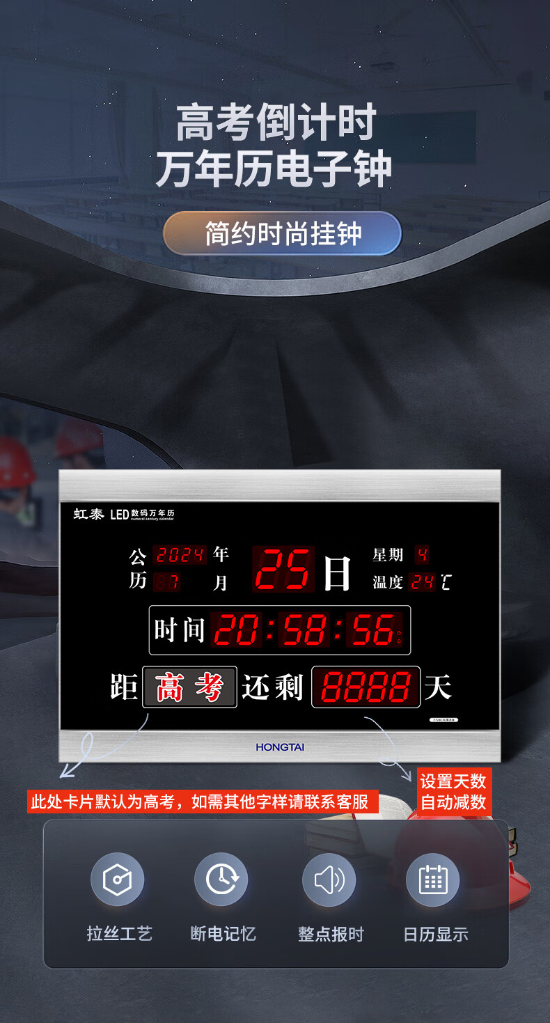 虹光(HonGuan)万年历竣工牌时钟高考计时器 LED电子挂钟 F728C-倒计时黑