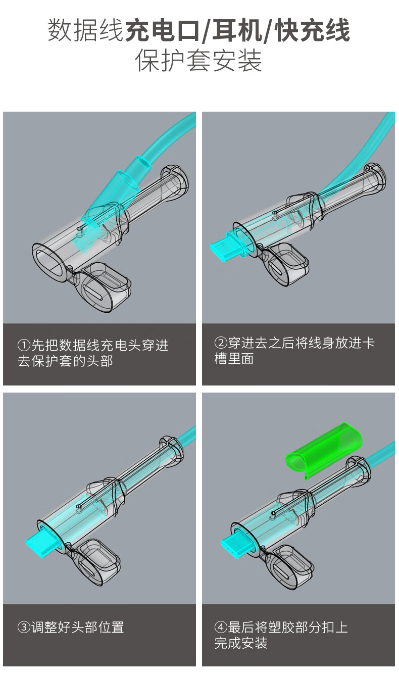 Masentek 数据线保护套头Type-C+USB 硅胶充电线防折断头绕线器卡扣接头苹果安卓充电器理线头防断裂通用