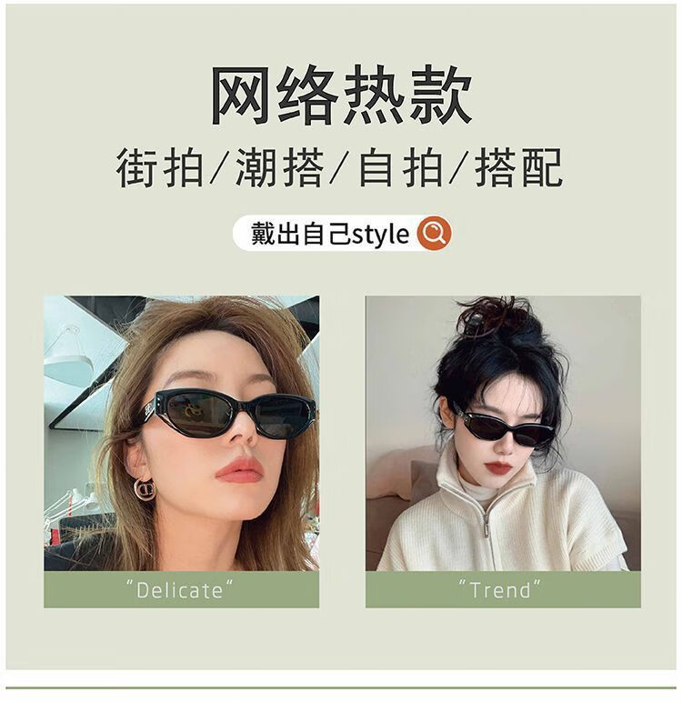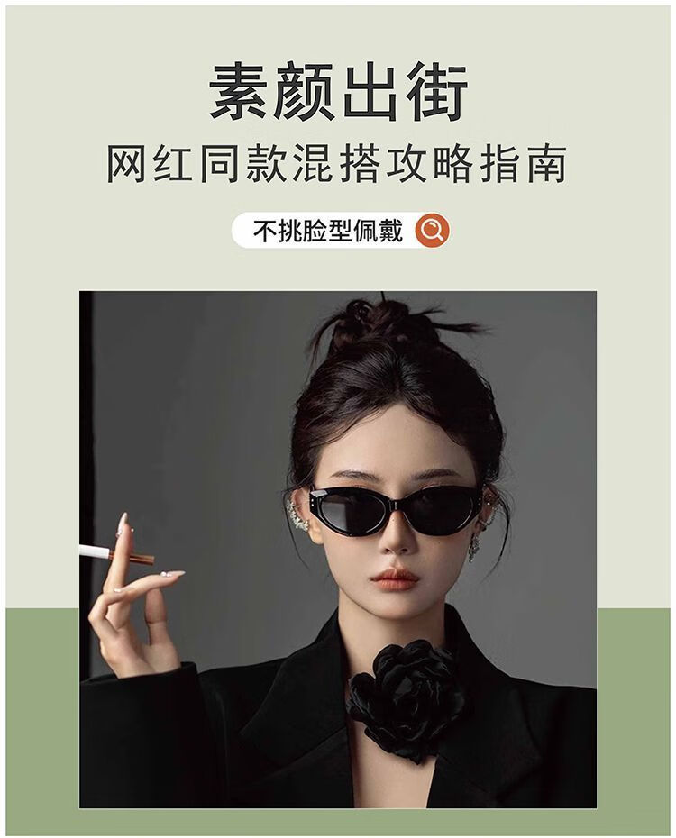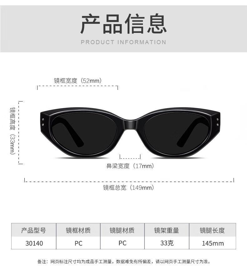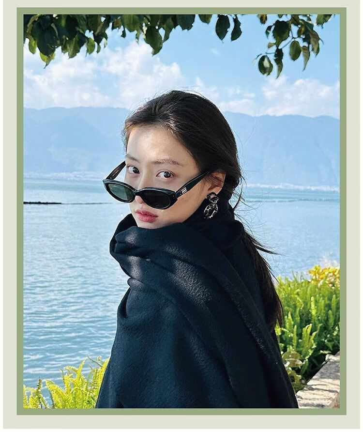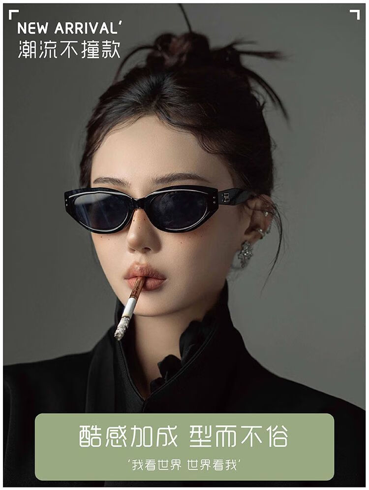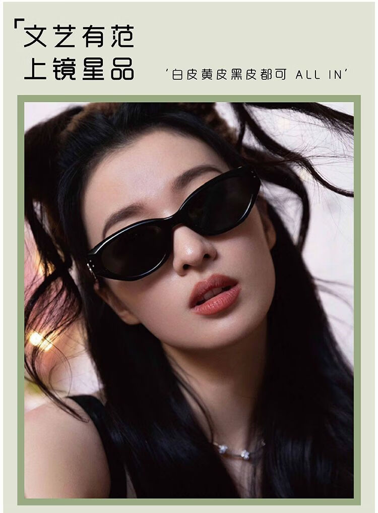村田稻夫猫眼墨镜 太阳镜 复古猫眼墨镜女高级感新款GM太阳镜 黑框灰片