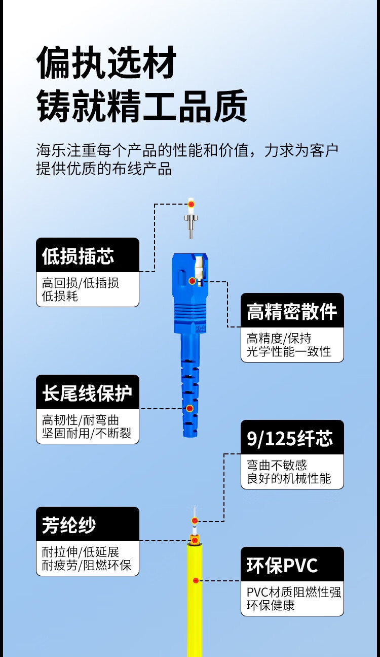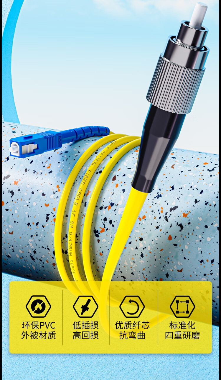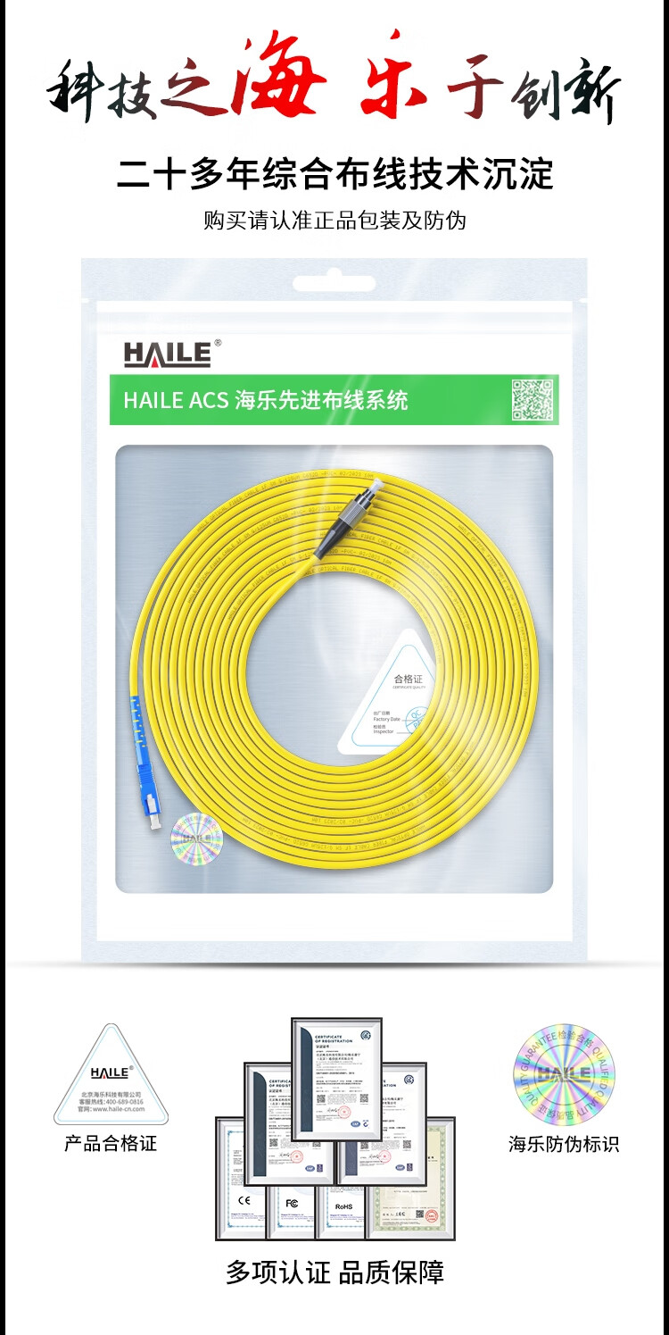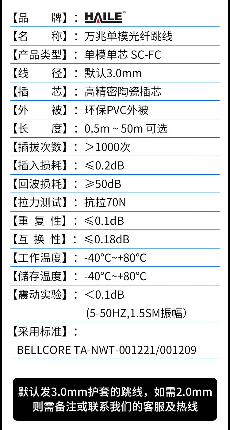 HAILE海乐 电信级单模万兆光纤跳线 单模单芯Φ3.0(SC-FC,9/125)1米 光纤线尾纤跳纤 HJ-1SC-FC-S1