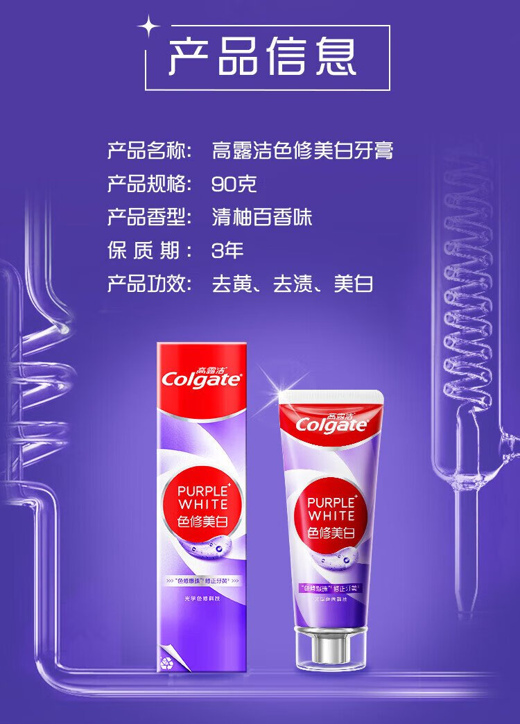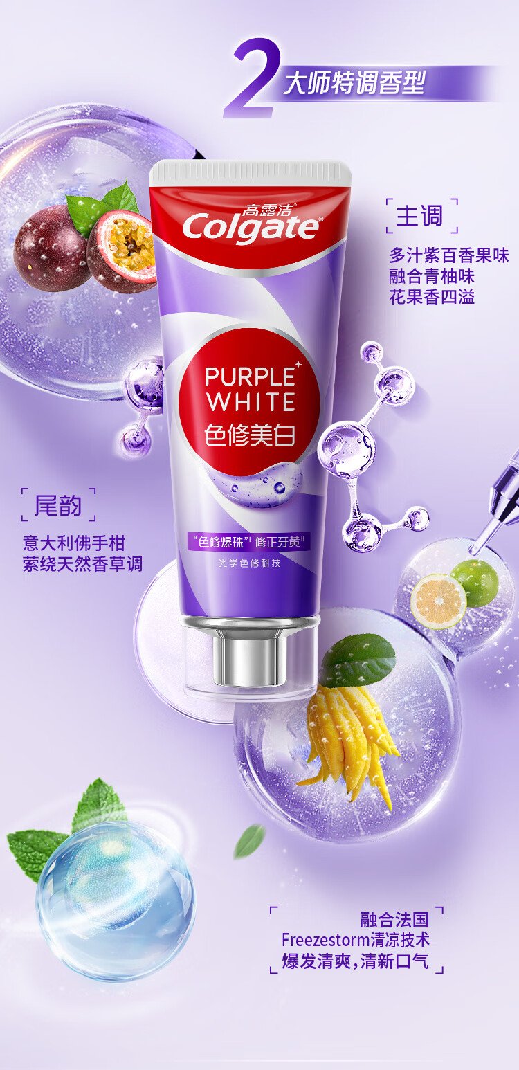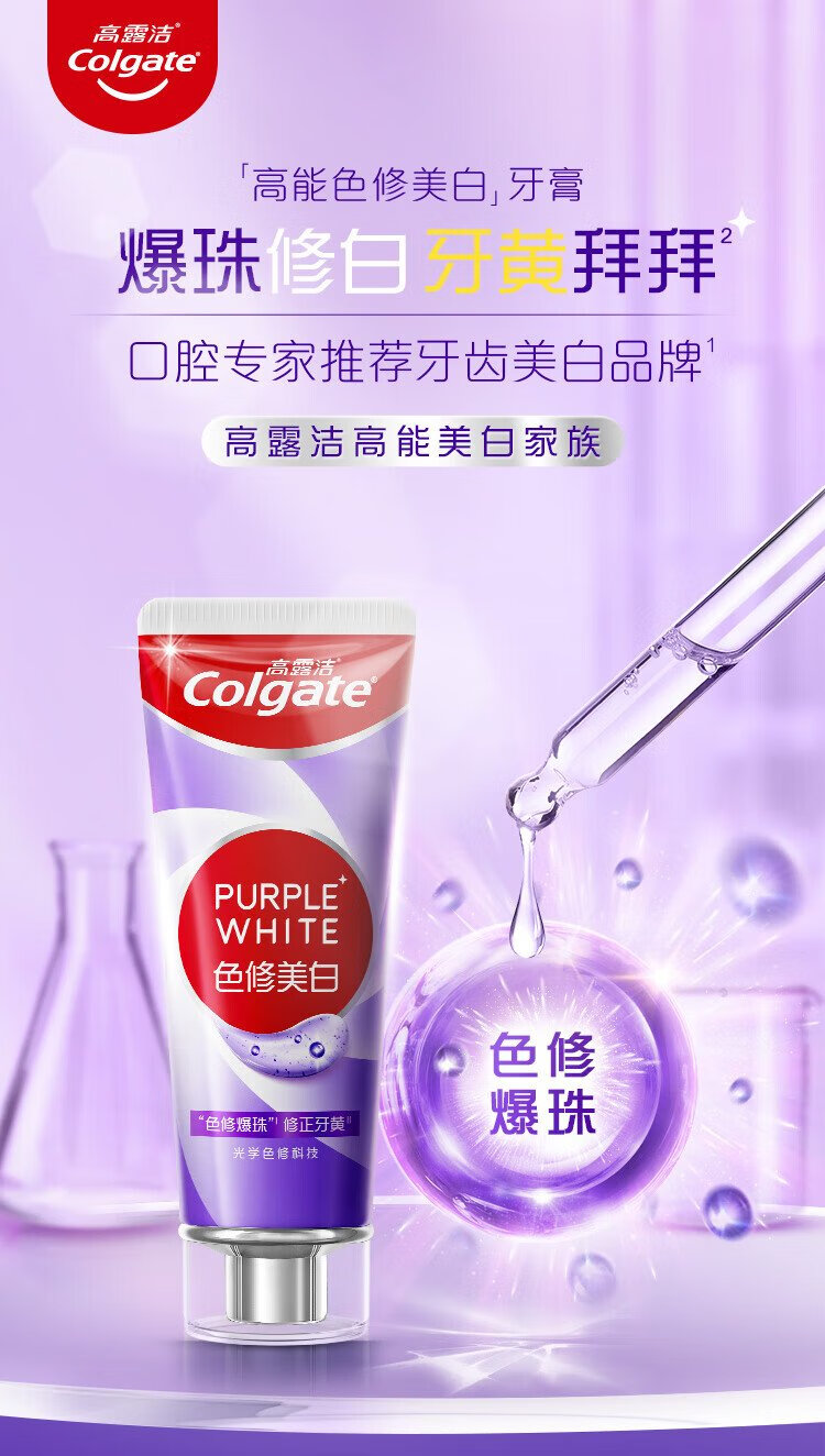 高露洁(Colgate)色修美白牙膏180g紫色去牙渍清新口气新老包装混发