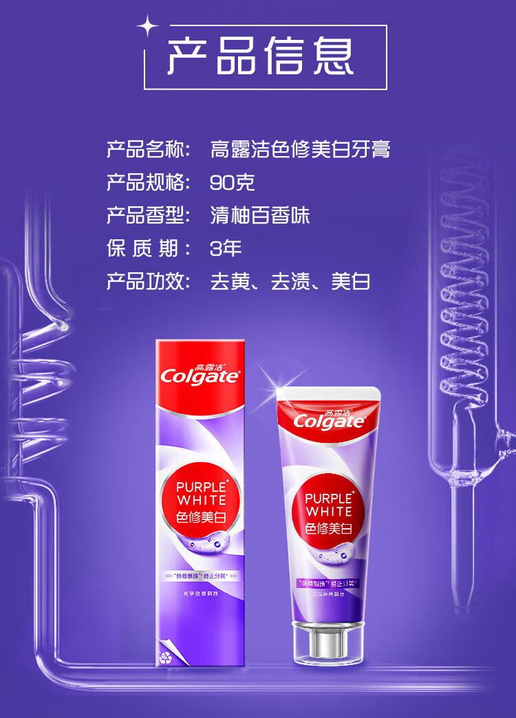 高露洁(Colgate)色修美白牙膏90g紫色去牙渍清新口气新老包装混发