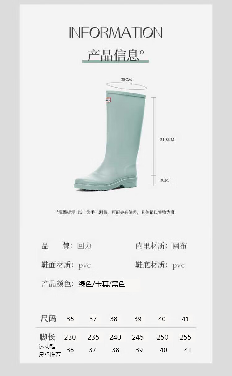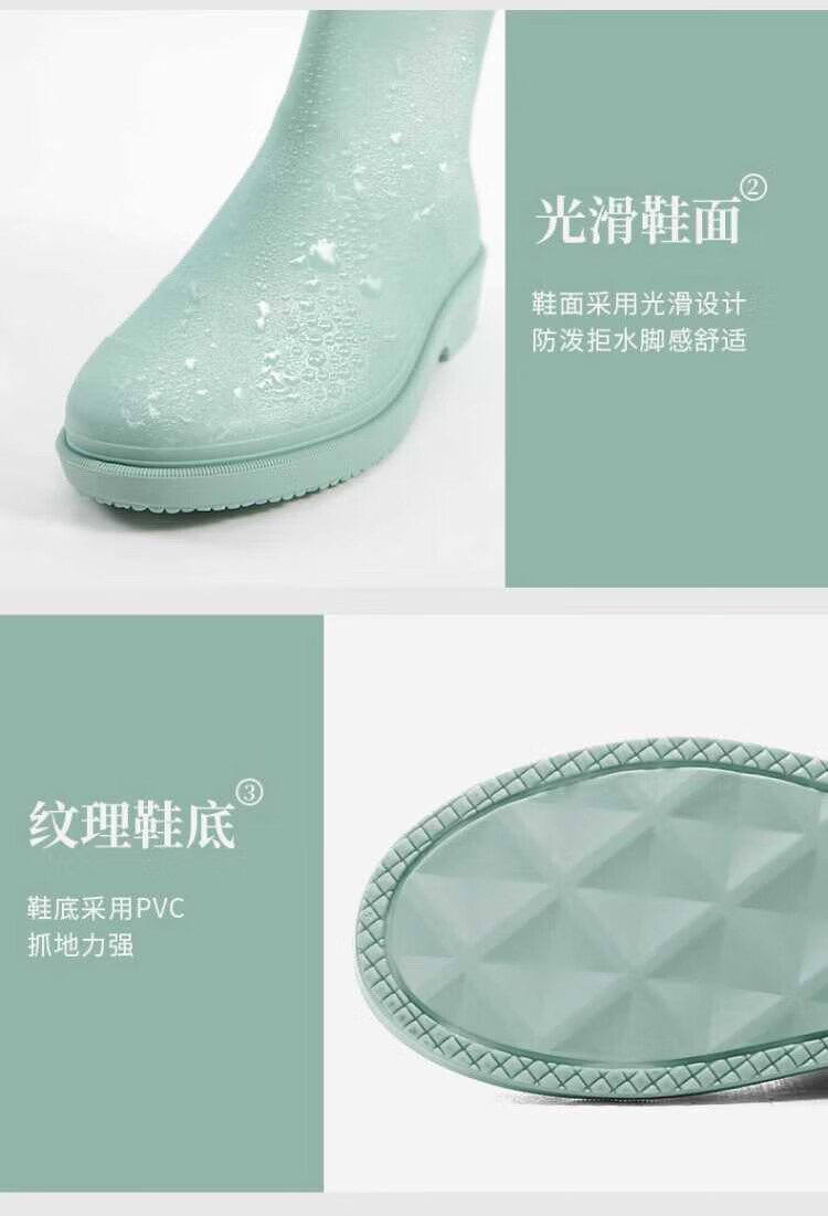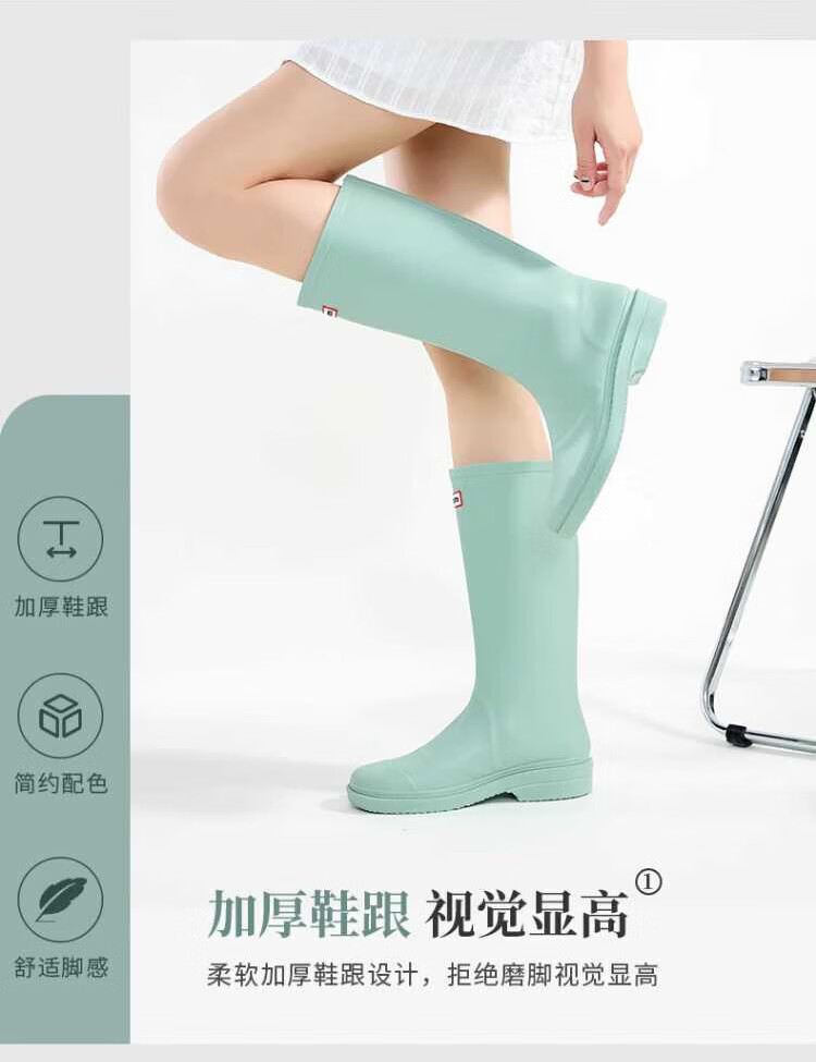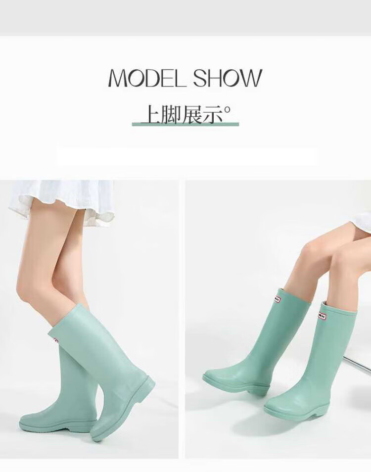 Pull-back rain boots for women, fashionable adult high rain boots, rubber shoes, overshoes, water boots HXLO33 green 39