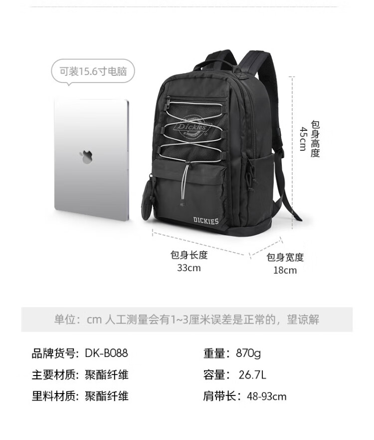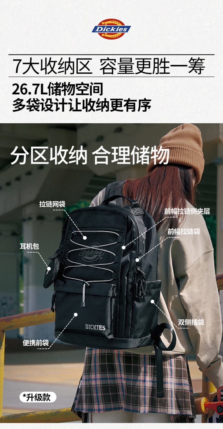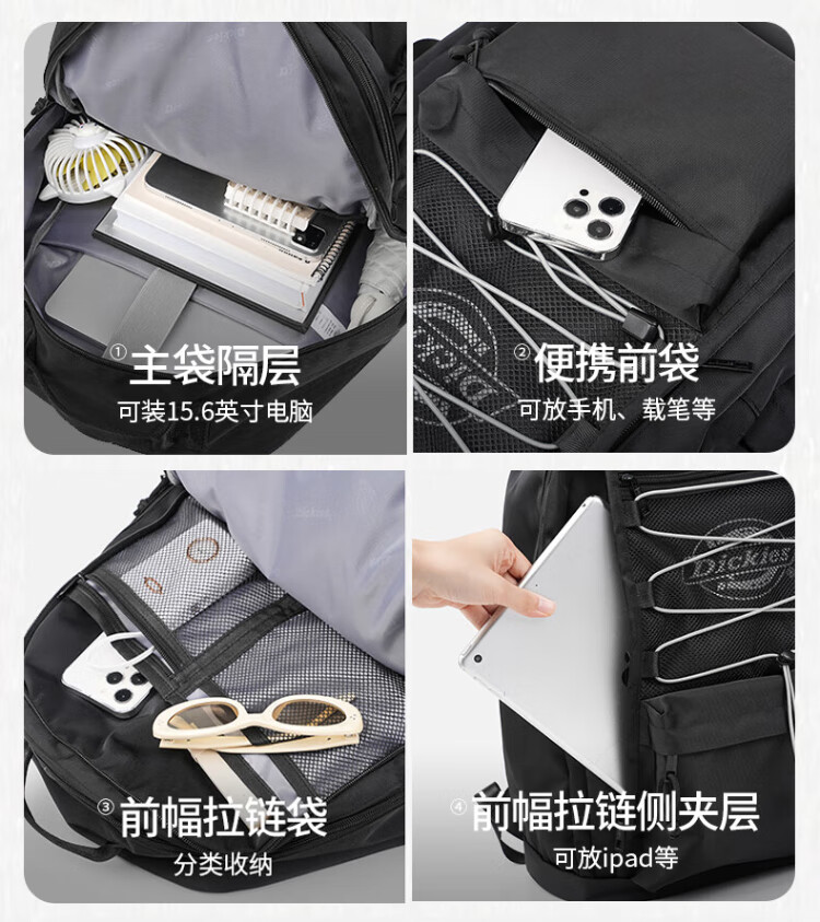 Dickies sac à dos pour hommes sac à dos de sport de plein air sac de voyage de grande capacité sac d'ordinateur étudiants du collège et du lycée sacs d'école pour hommes et femmes