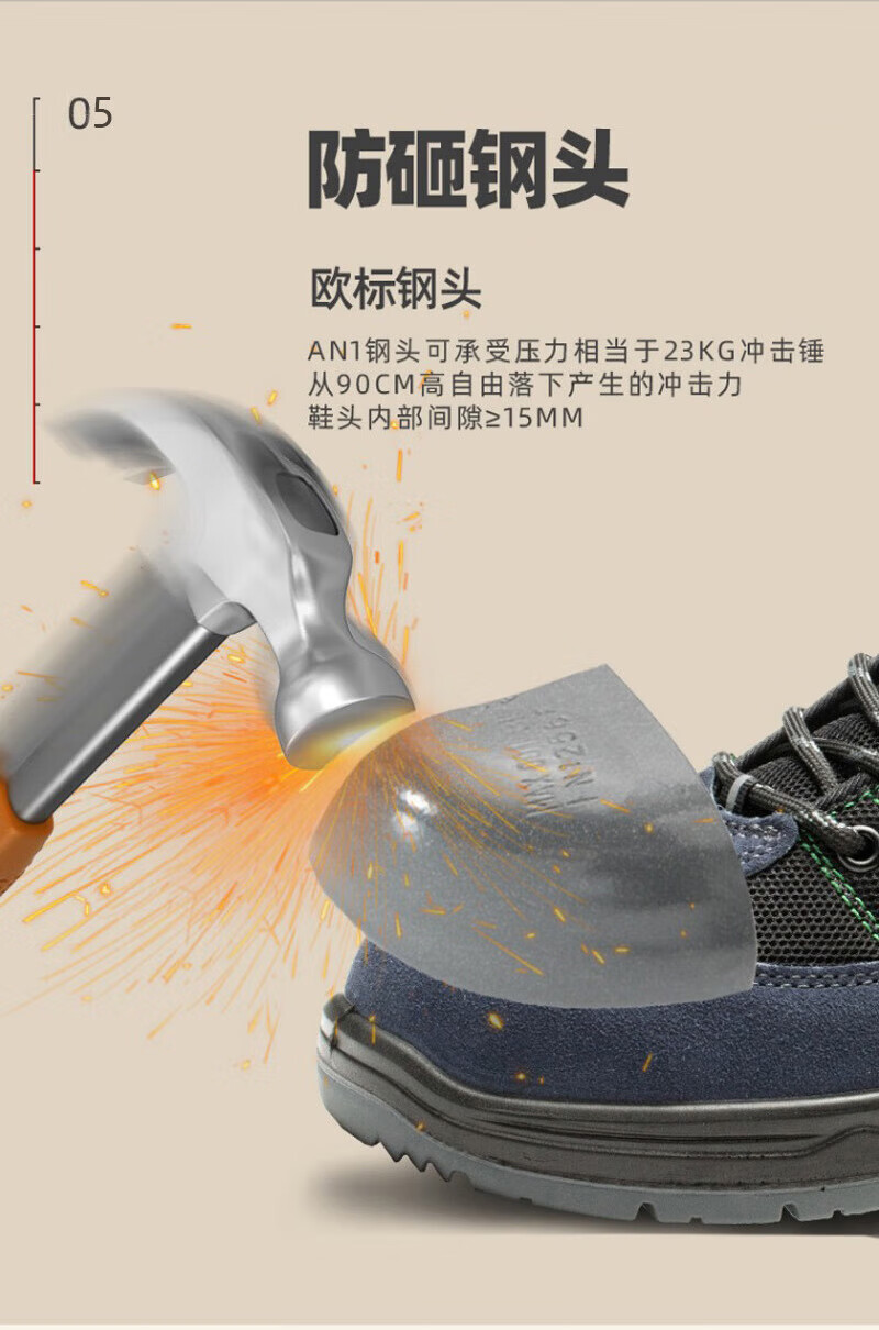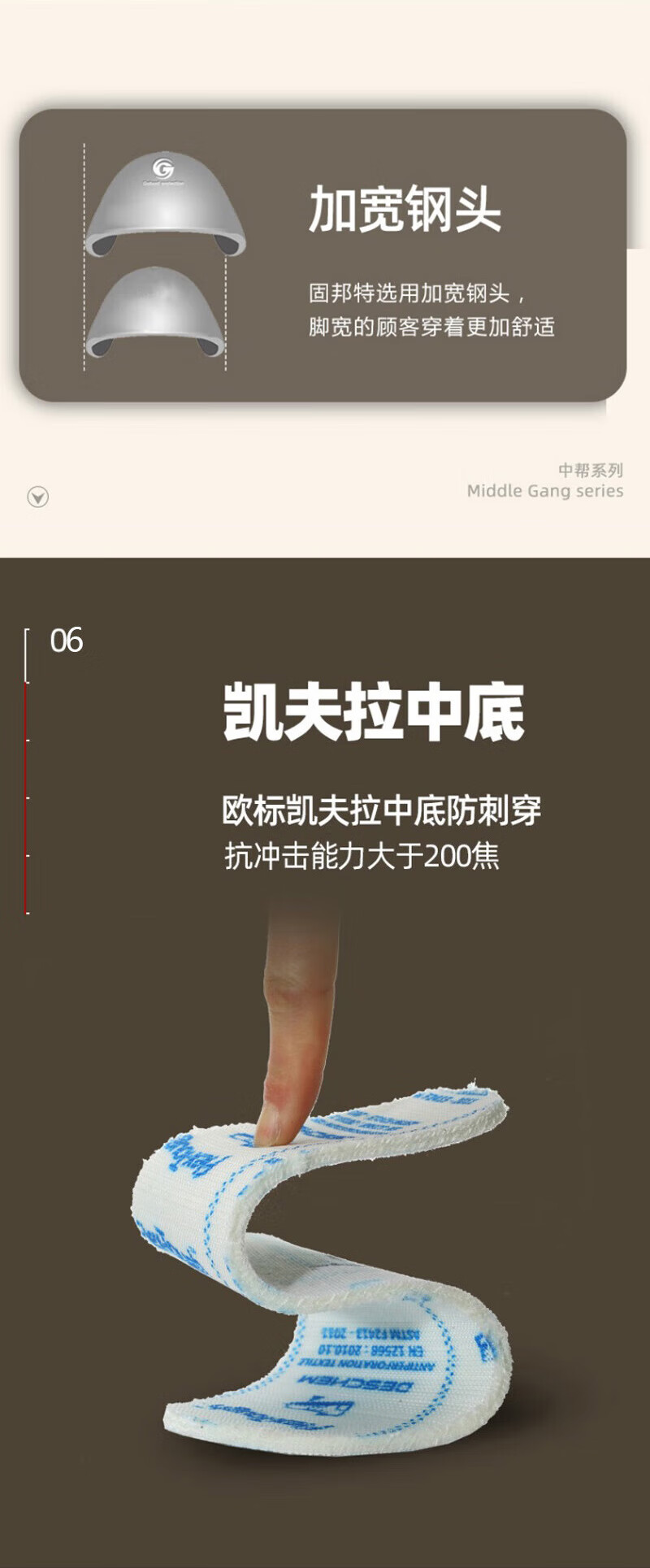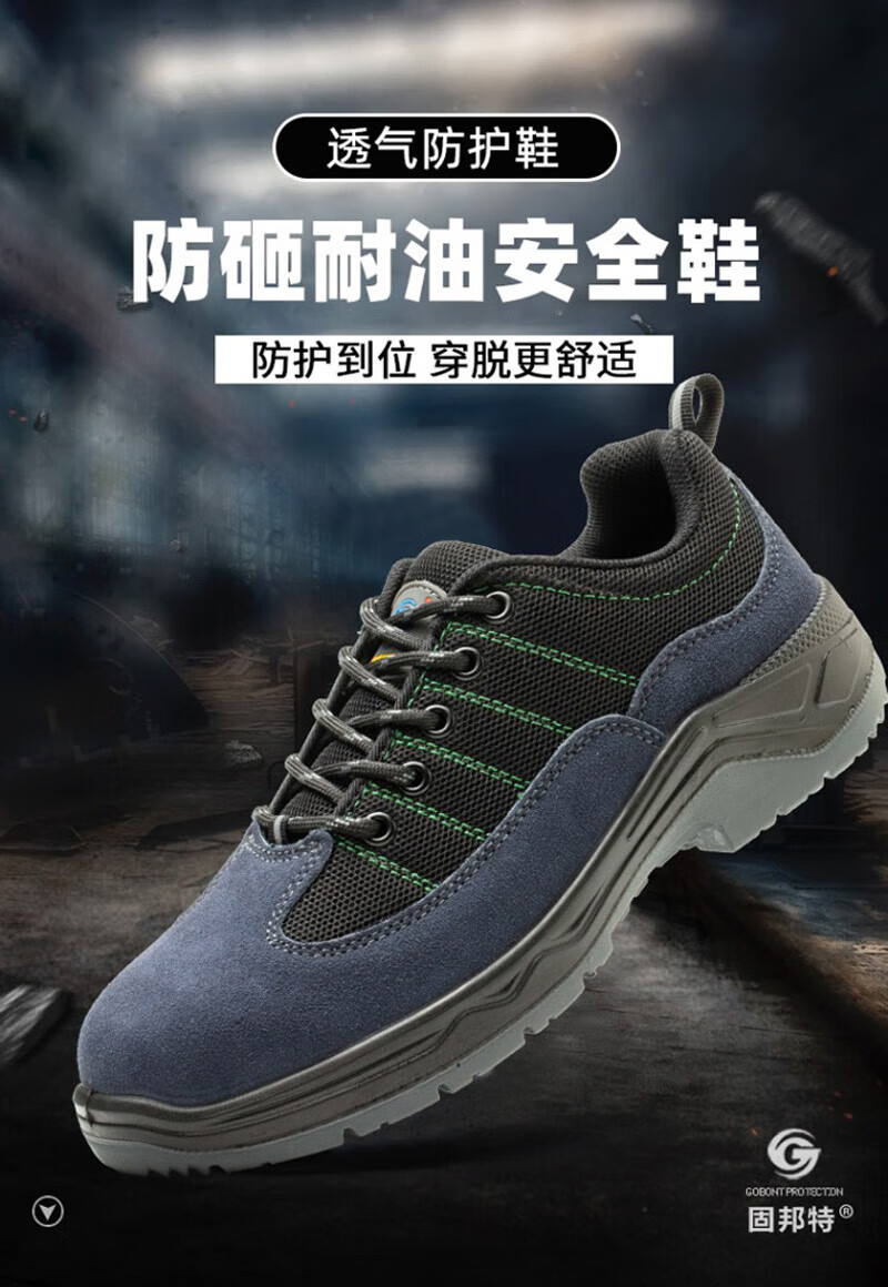 固邦特 安全鞋 钢包头防砸轻便防滑透气劳保鞋 工地车间工作鞋 6622 39码