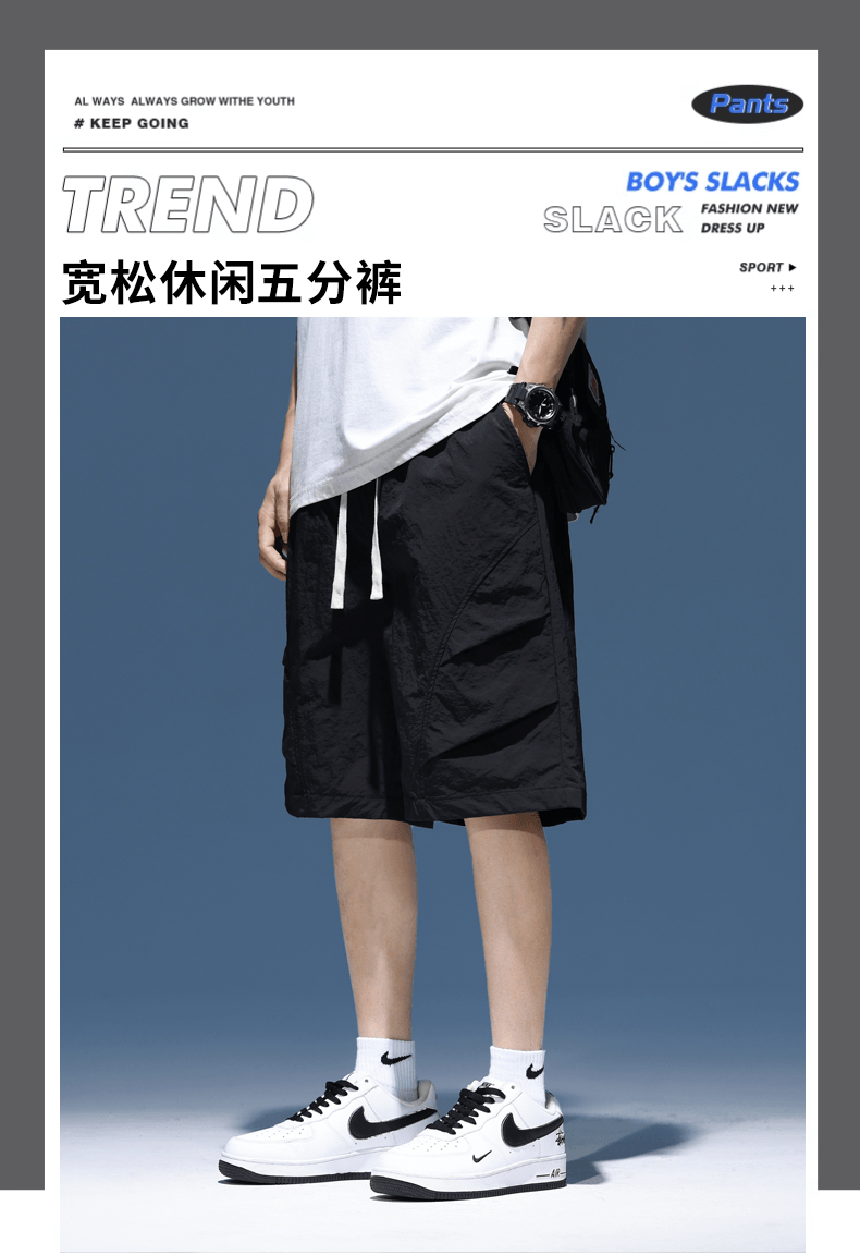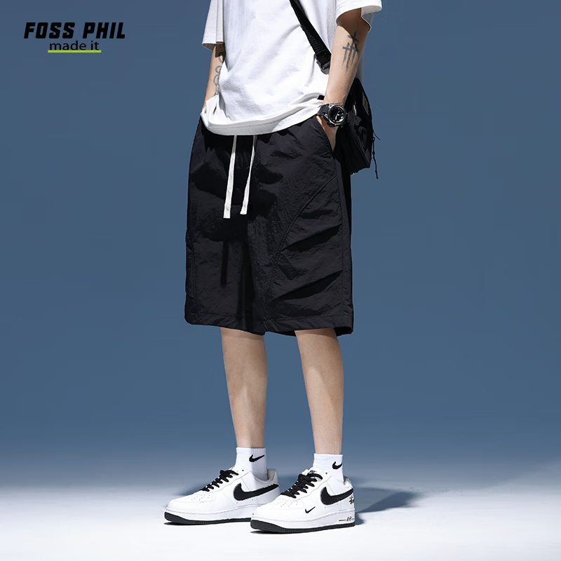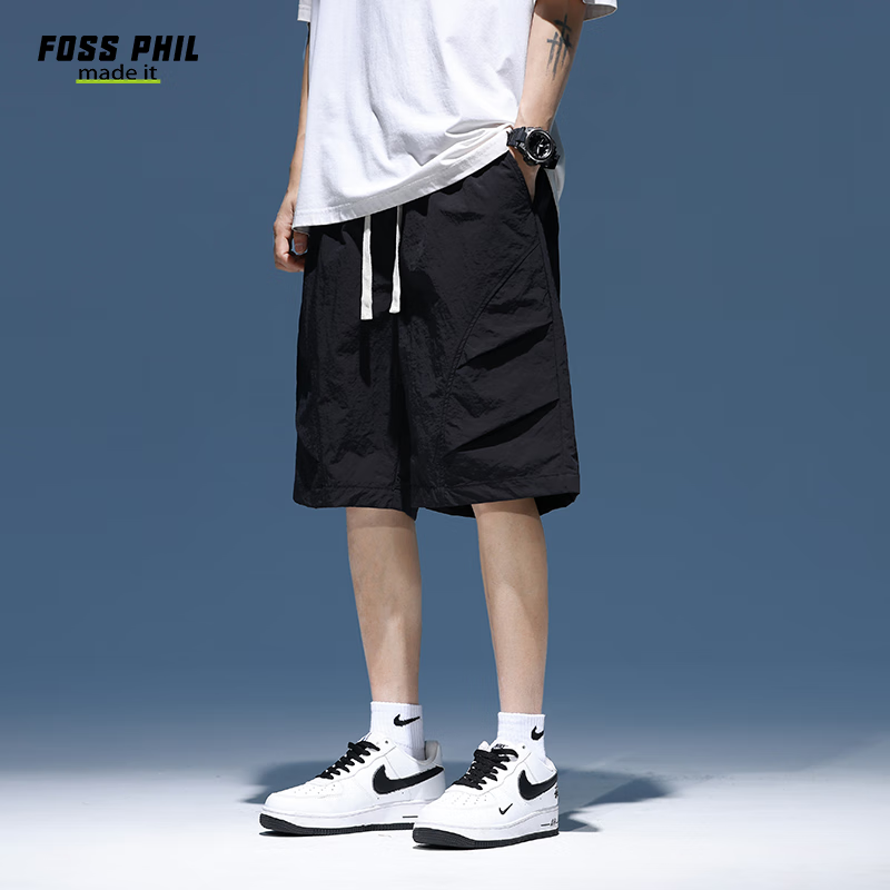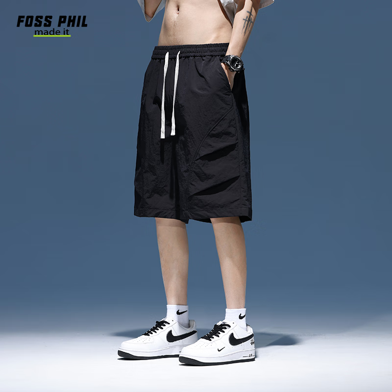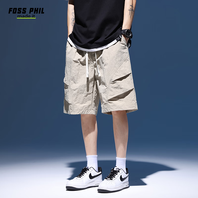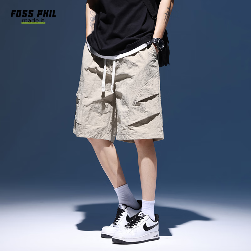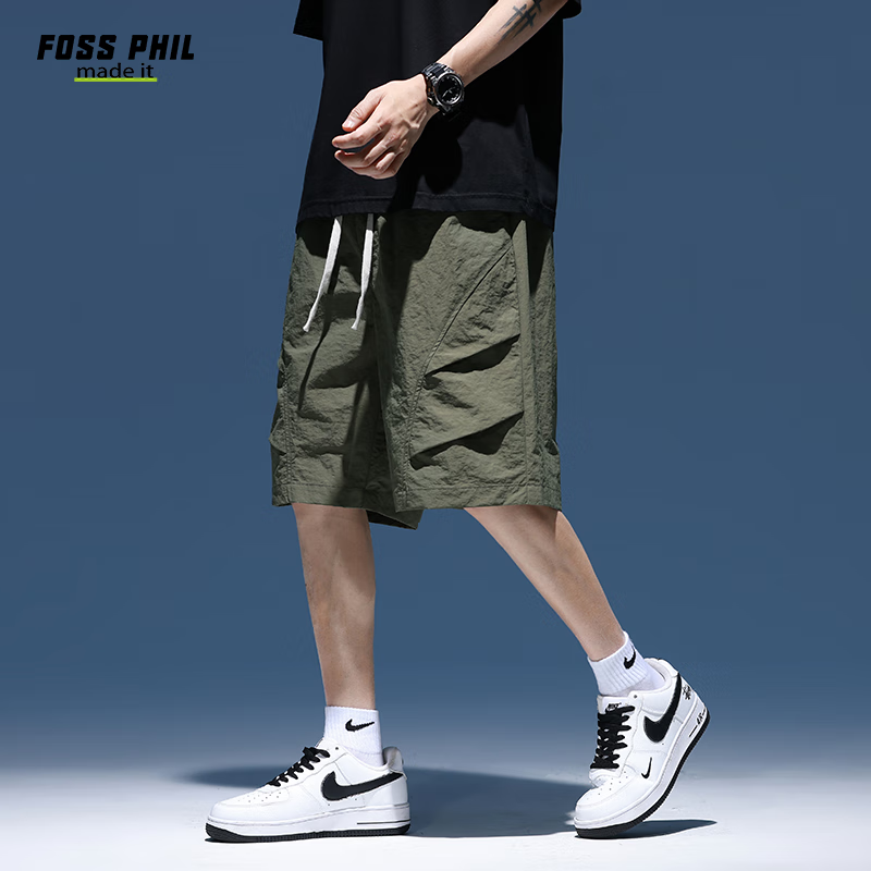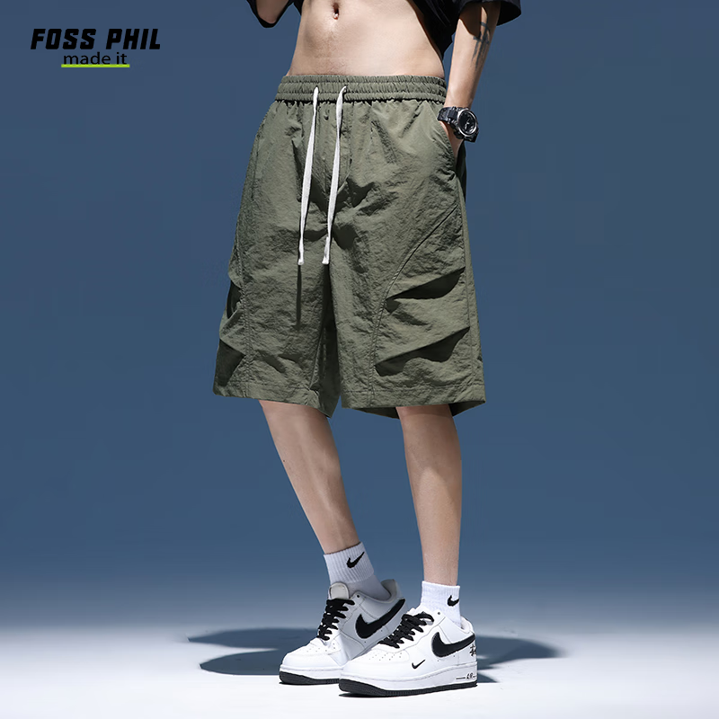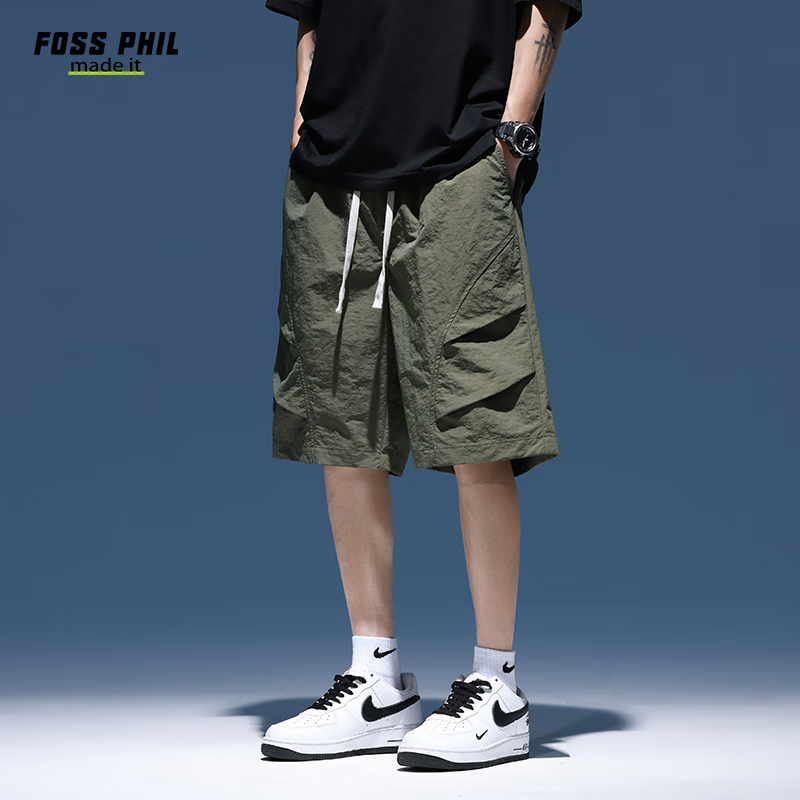 Foss Phil Shorts Herren Sommer Arbeitskleidung Trendige Marke Lässige Eisseide Mittelhose Lose Sport Fünf-Punkt-Hose 9906 Militärgrün 3XL