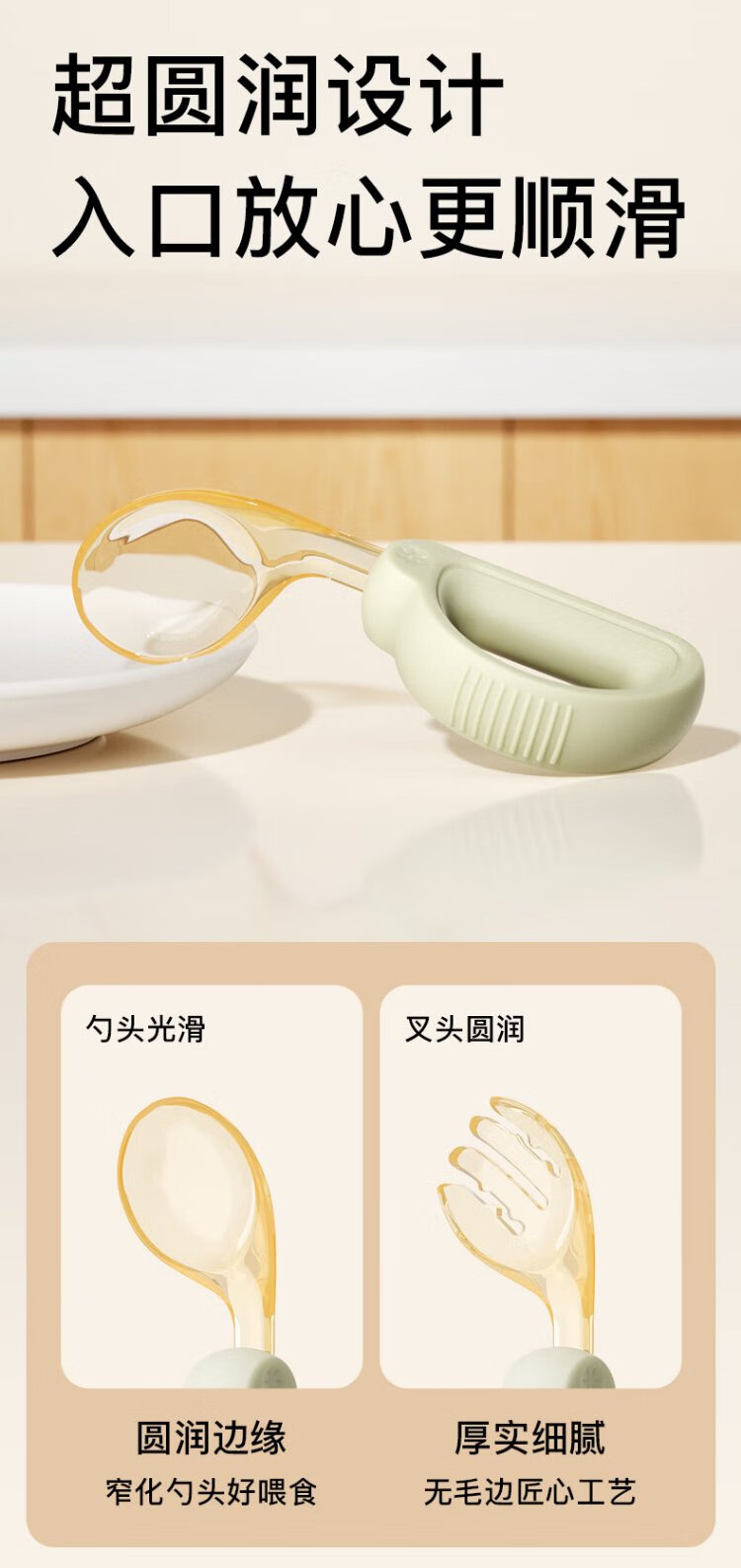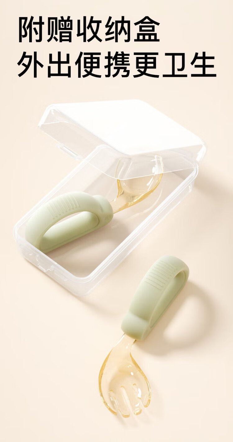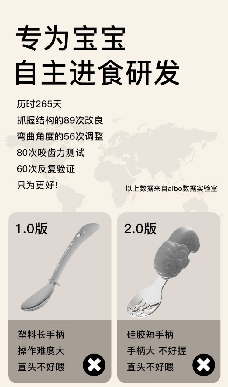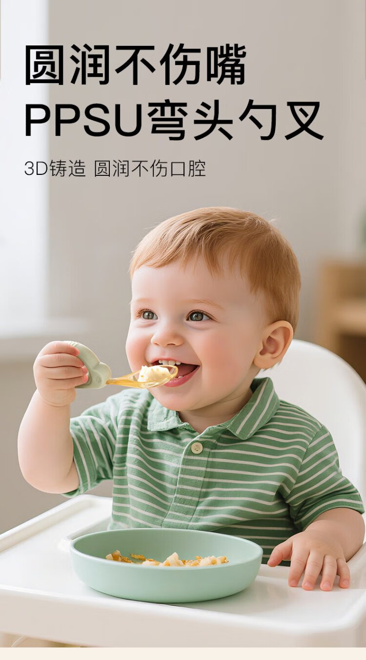 albo儿童勺子宝宝学吃饭餐具PPSU叉勺套装婴儿硅胶短柄训练辅食勺